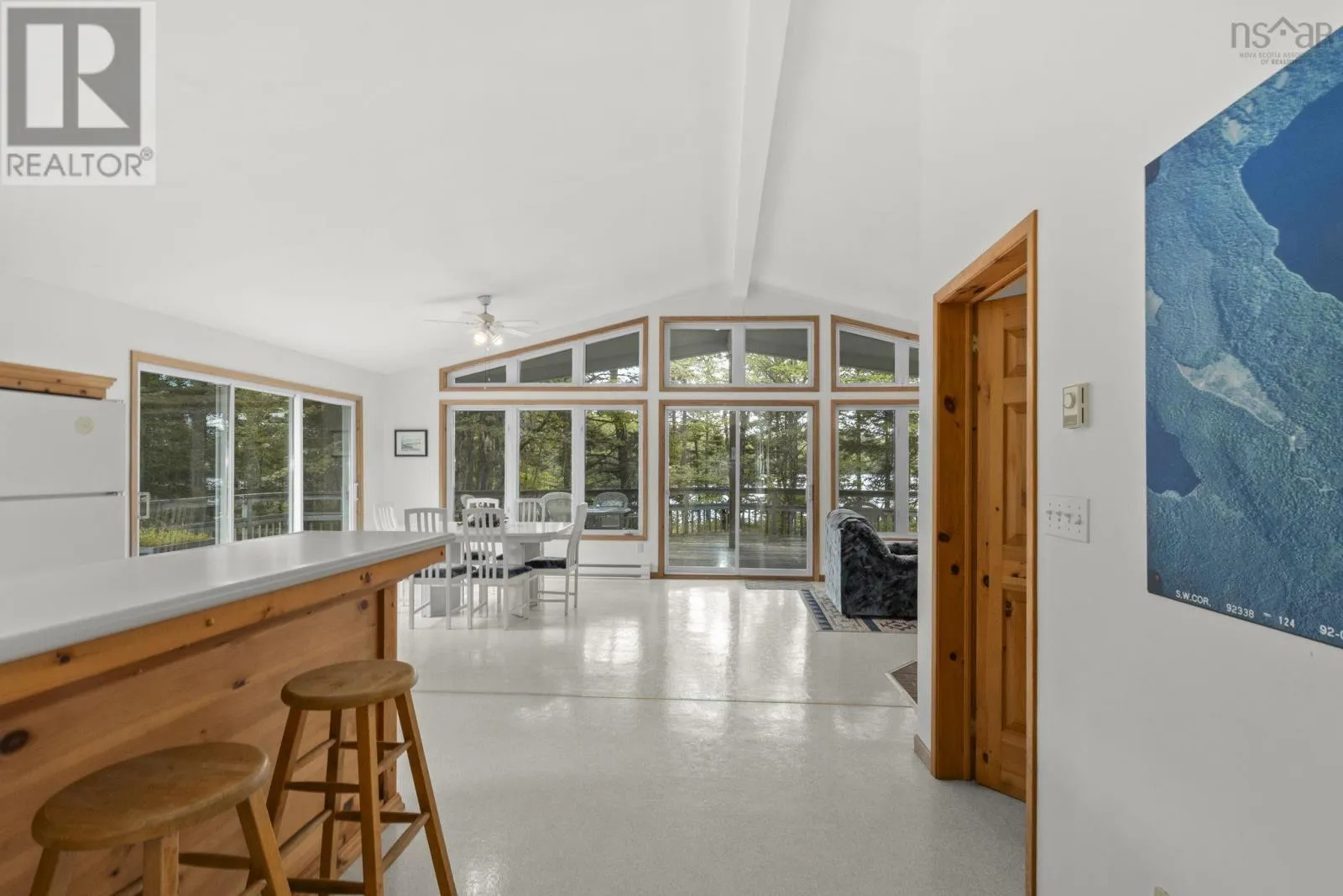 bath with shower stall, spacious foyer, and a convenient laundry room. Thoughtfully oriented to embrace the outdoors, the home includes a wraparound deck ideal for entertaining or quiet mornings by the water. Double patio doors off the dining area and a third patio door off the living room invite in natural light and lake views, while a cozy woodstove offers warmth and ambiance on cooler evenings. An attached carport and a detached double garage offers excellent storage and workspace options. Stroll along the wooden boardwalk to your private dock, where you can launch a kayak, swim, or simply enjoy the stillness of the lake. Whether you’re seeking a peaceful year-round residence or the ultimate seasonal retreat, this property delivers. Located just 20 minutes from Bridgewater’s shops and services, and a little over an hour from Halifax, it offers the perfect blend of seclusion and convenience. (id:62650)