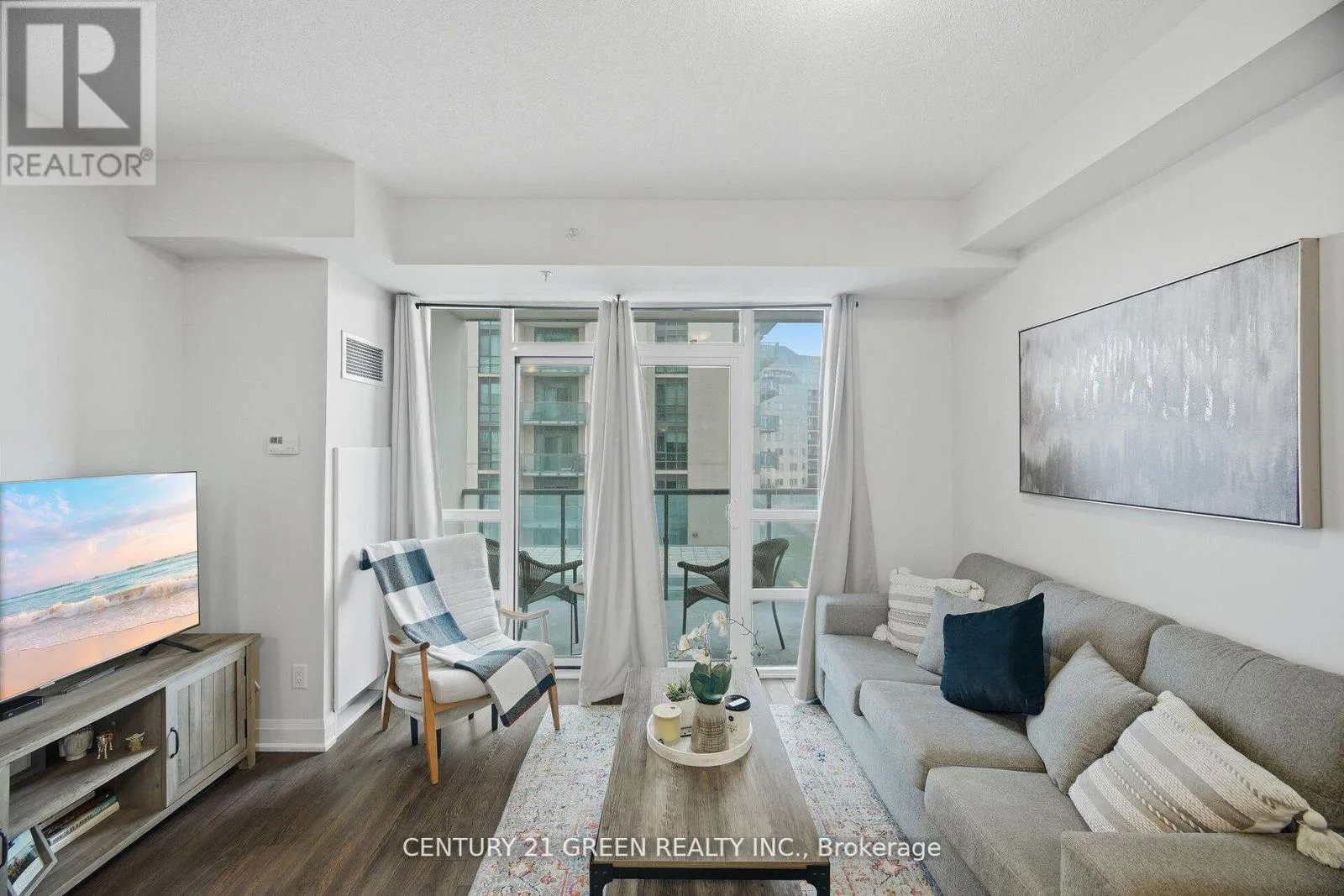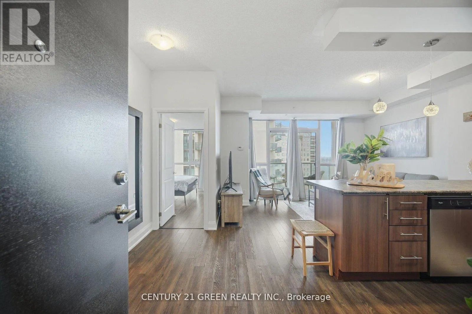 Beautiful, modern 1 bedroom condo featuring bright east facing views and a spacious open concept layout. Floor to ceiling windows fill the home with natural light, highlighting the sleek laminate flooring and 9 ft ceilings. The contemporary kitchen offers stainless steel appliances, perfect for everyday living or entertaining. Enjoy a large private balcony with views overlooking the Clairville Conservation Area.