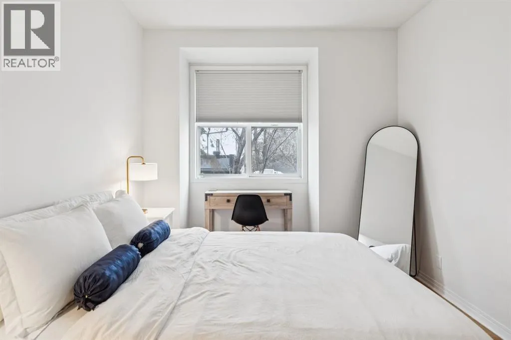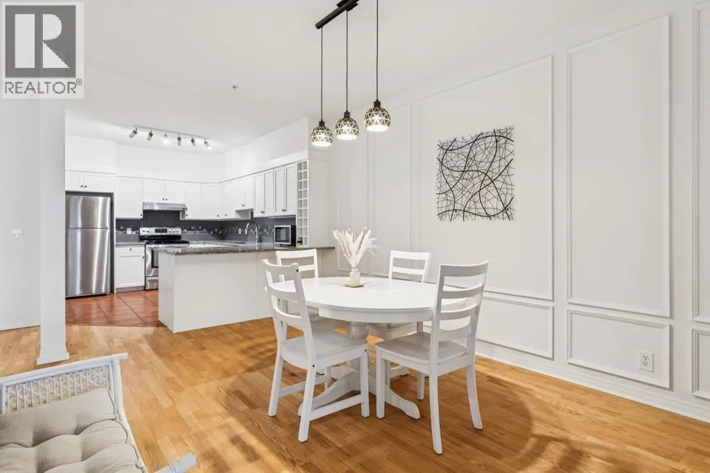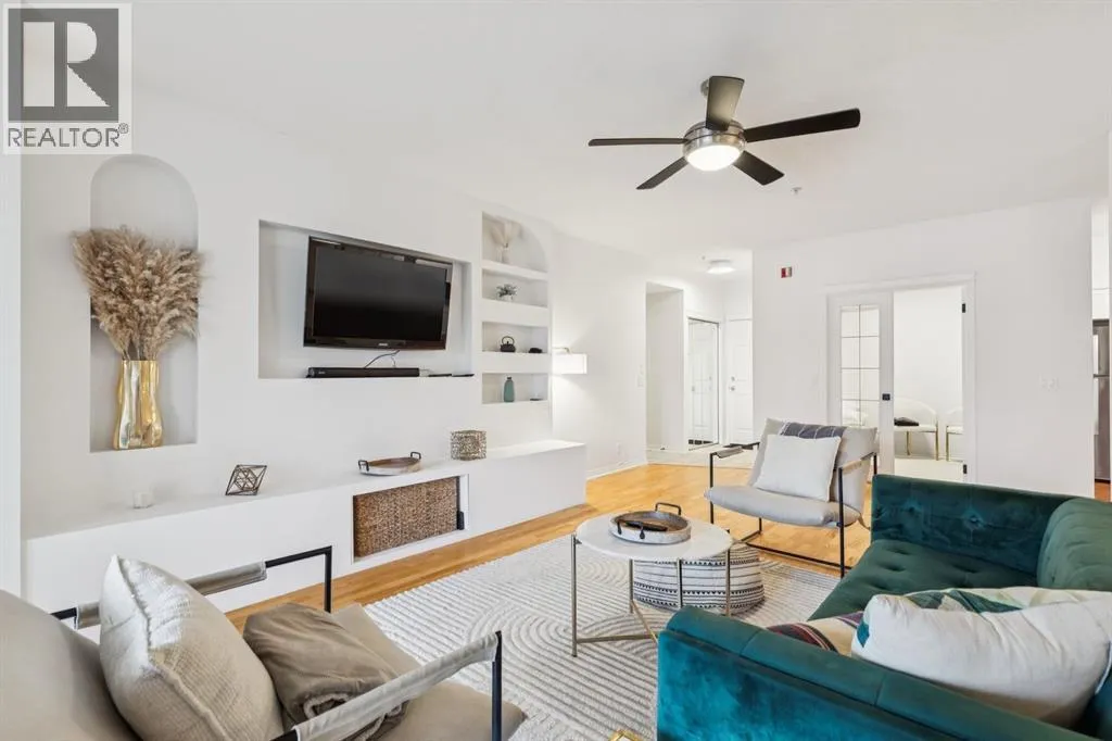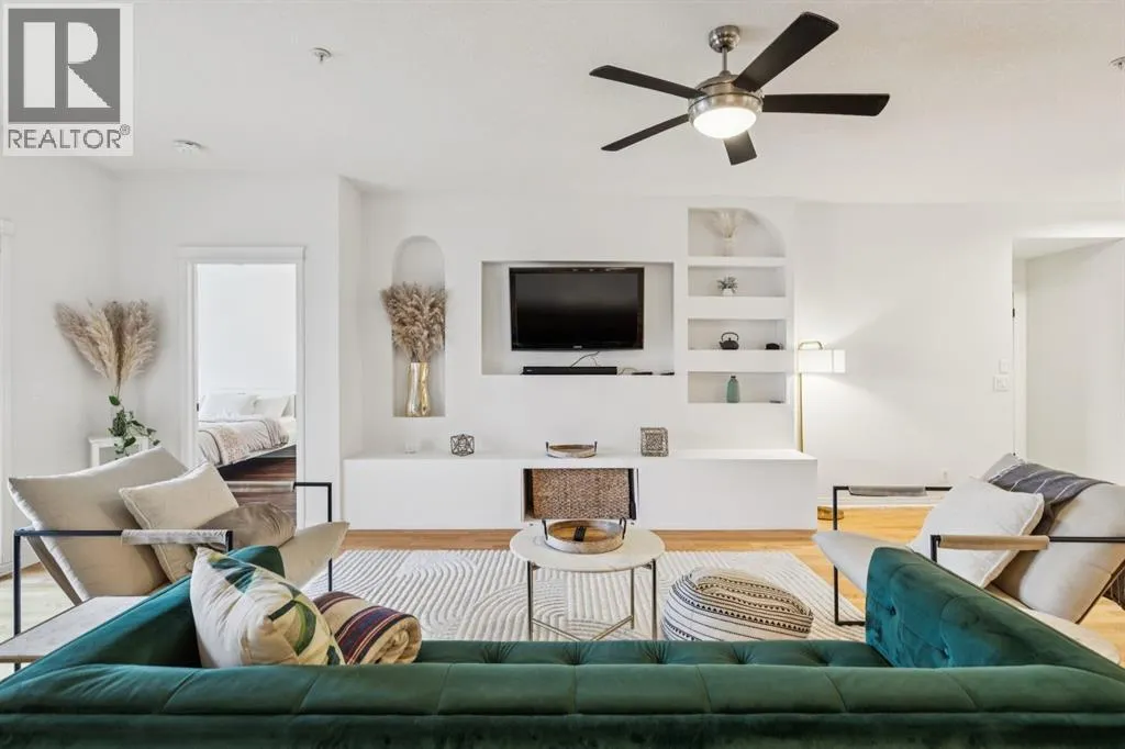 A thoughtfully curated interior that feels both elevated and inviting in West Hillhurst. Welcome to your new home at The Manors, where timeless design meets modern comfort. This beautifully updated 1,287 sq ft condo offers 2 bedrooms, 2 full bathrooms plus a den, and titled underground parking. The open concept layout seamlessly connects the kitchen, dining, and living spaces, creating