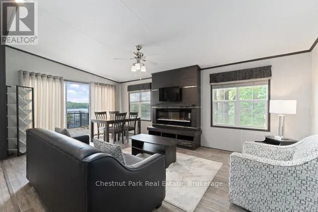 MOTIVATED SELLERS!!! Experience stress-free Muskoka lake life at this charming 3-bedroom, 2-bath seasonal cottage on beautiful Bonnie Lake. Nestled in a well-maintained resort, this retreat blends rustic Muskoka vibes with modern comfort. Enjoy breathtaking lake views from your private back deck, relax on the sandy beach, or stay active with sports courts, hiking trails, and vibrant community events for all