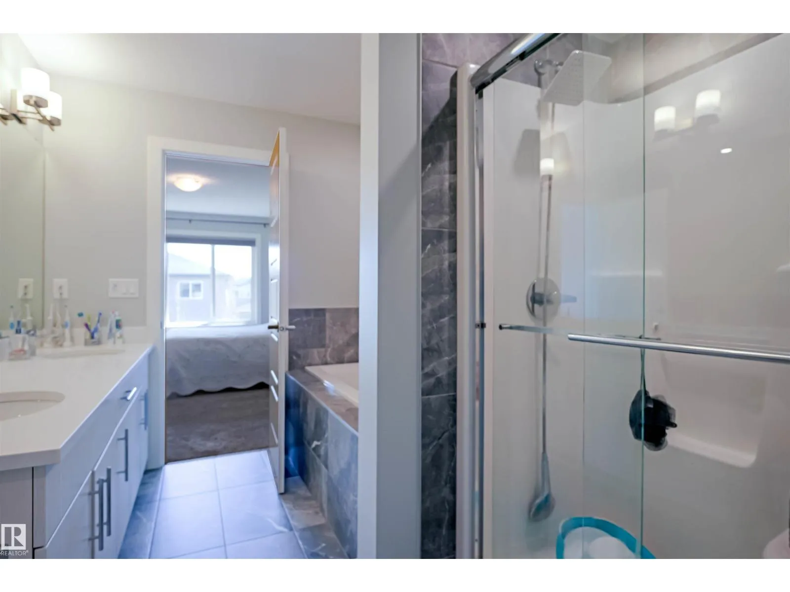 Immaculate Home in Kenton, Spruce Grove! This stylish 3 bed, 2.5 bath home offers QUARTZ countertops, a bright kitchen with STAINLESS steel appliances and pantry, and a stunning open-to-below living room with fireplace. Enjoy 9-ft ceilings, a bonus room, and a luxurious ensuite with soaker tub, stand-up shower, and DOUBLE sinks. Includes a SEPARATE entrance to the partially finished basement