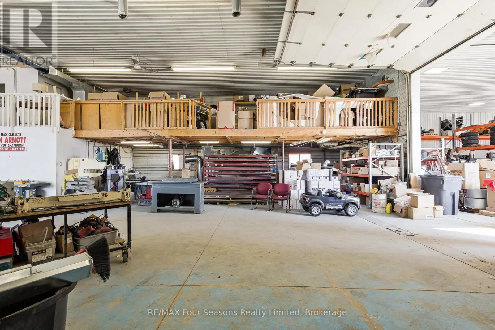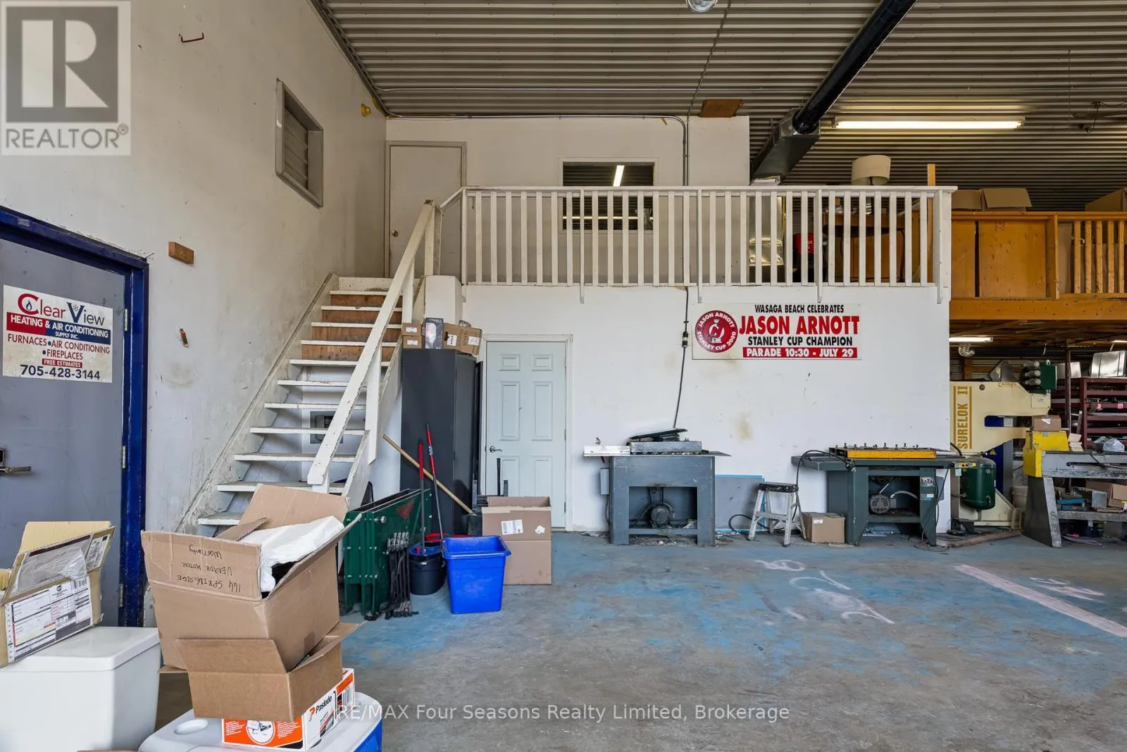10,000 sq. ft. industrial building in Clearview Township, ideally located just east of Stayner and south of Wasaga Beach. Set on 1.89 acres and zoned MR Industrial, this property supports a wide range of industrial and commercial uses. The building includes approximately 1,000 sq. ft. of main floor office space, plus an additional loft area providing extra office or workspace