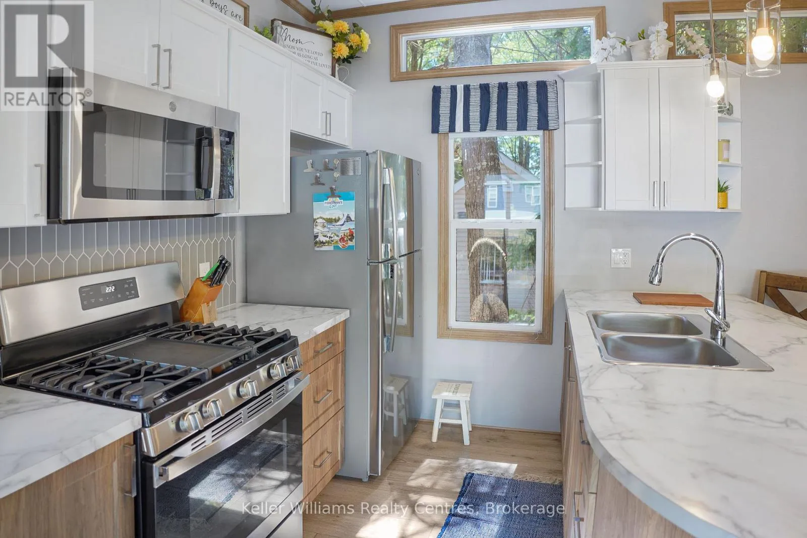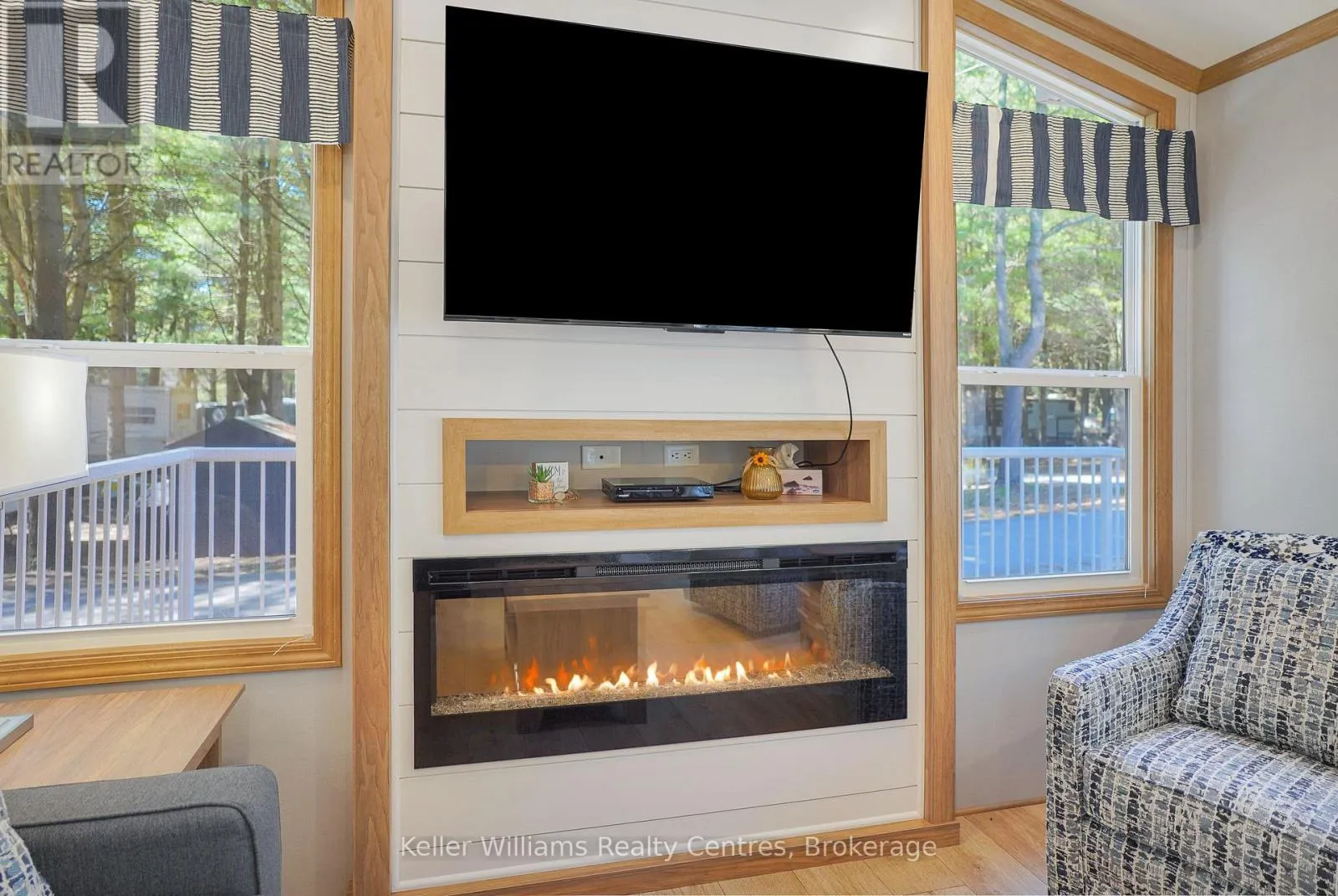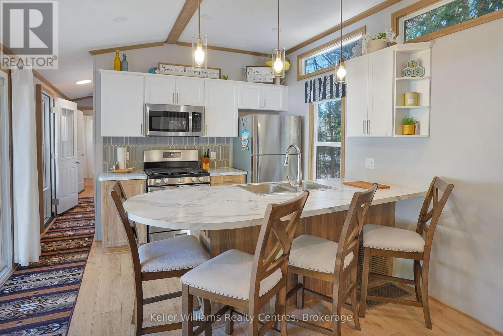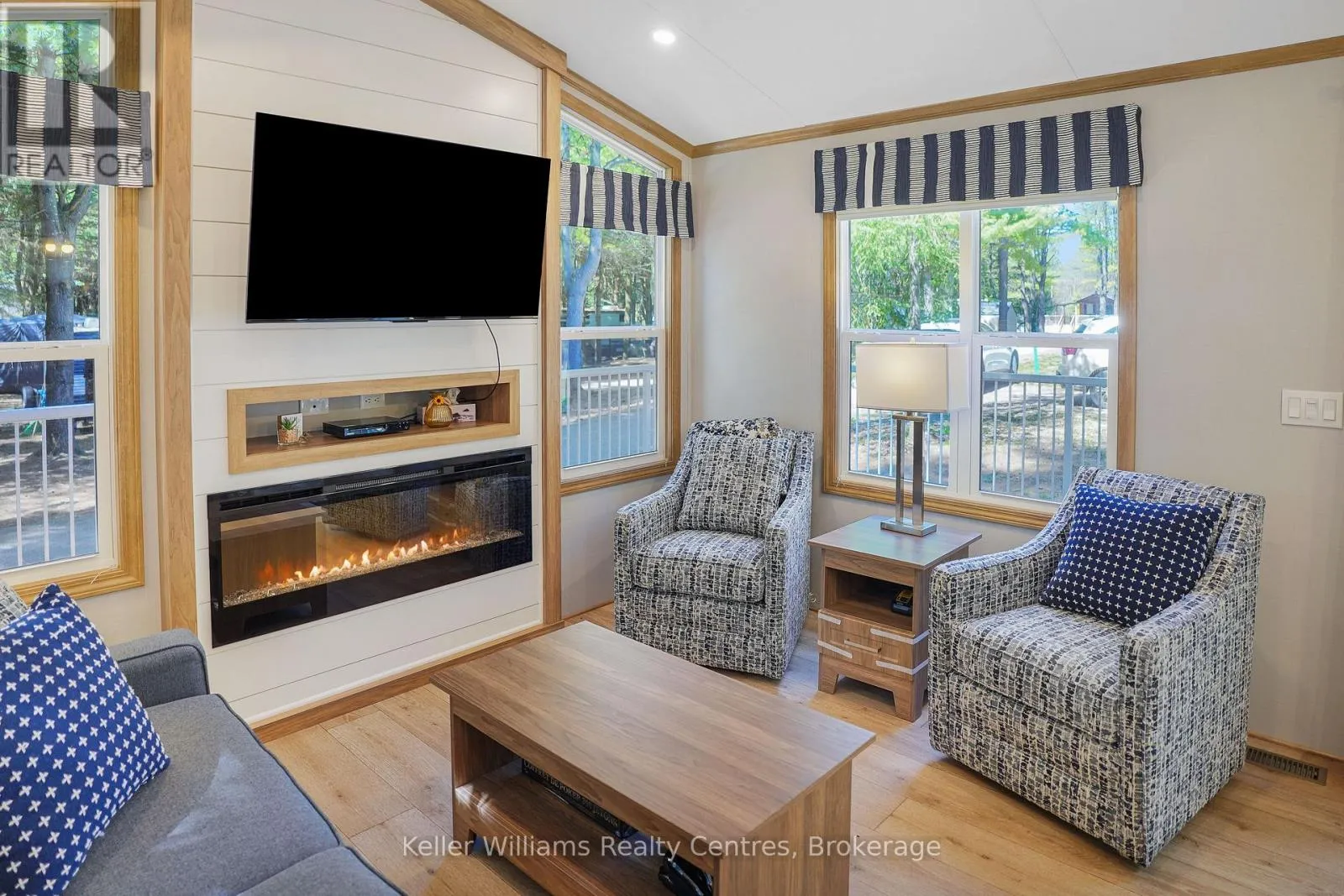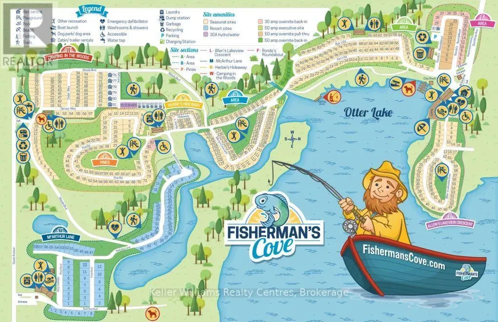 Welcome to effortless seasonal living at Fisherman’s Cove with this stunning 2023 Northlander Escape. Tucked into a private, treed setting, this beautifully designed 2-bedroom, 1-bathroom park model offers the perfect blend of modern comfort and cottage charm.Step inside to an inviting open-concept layout featuring vaulted ceilings, oversized windows, and warm natural finishes that create a bright, airy feel throughout. The
