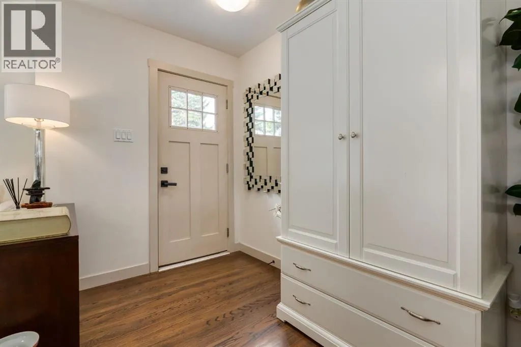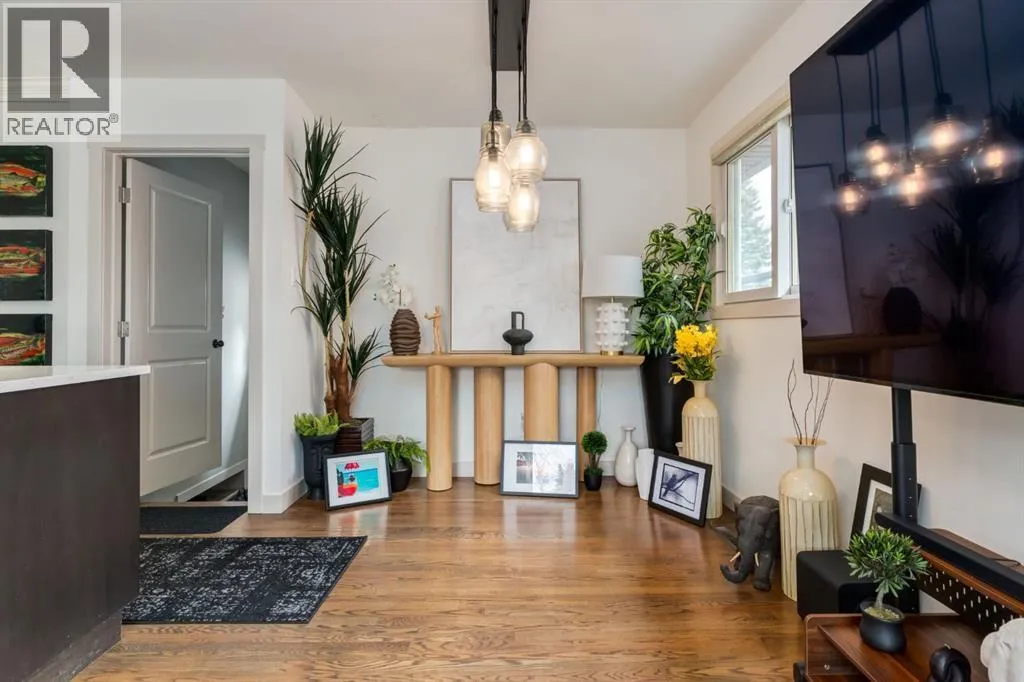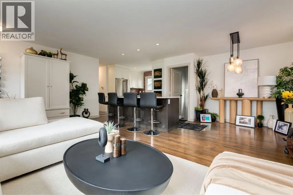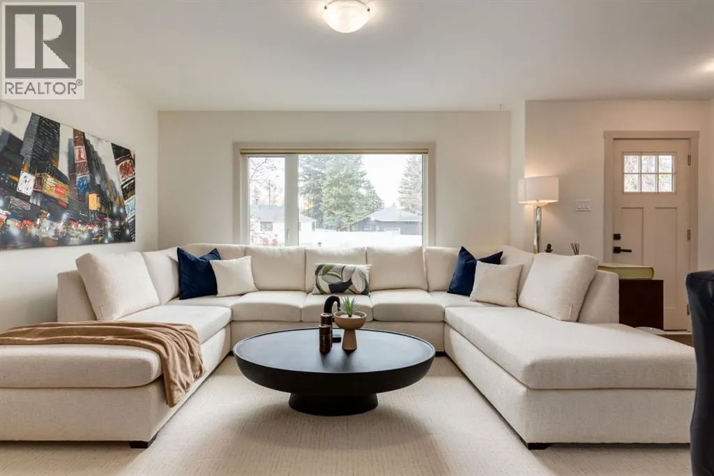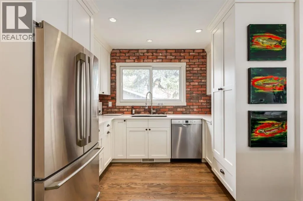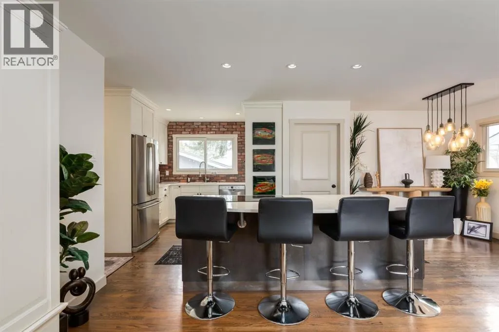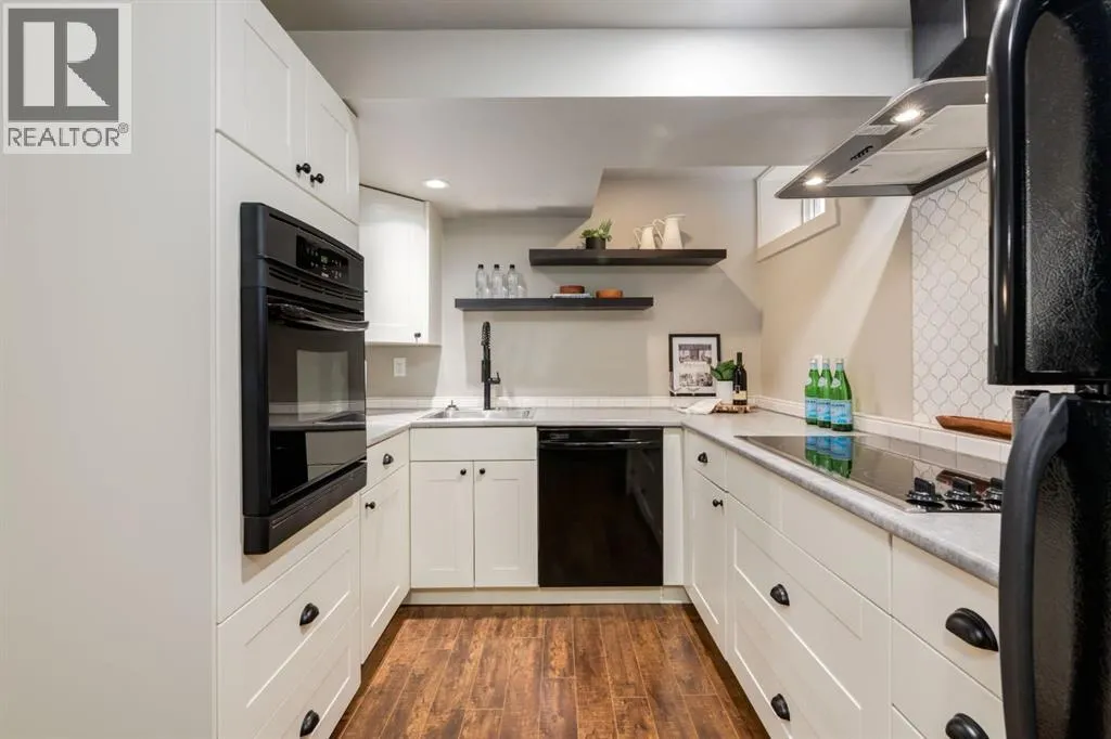 paver stone walkway, a new front deck with composite decking and detailed wooden posts with wire railings, wood shake siding, and an elegant front door. As you enter the home, you are greeted with an open concept main floor with exquisite, rich hardwood floors and large windows flooding the space with natural light. The kitchen has been stunningly updated with timeless full-height, white shaker, custom cabinetry, striking quartz countertops, stainless steel appliances, a window overlooking the yard, an expansive island with bar seating and tons of storage. The main floor showcases a spacious living room with room to unwind and relax with family and friends. Adjacent the kitchen you will find your dining area with beautiful designer lighting. The roomy primary bedroom contains enough room for king-sized furniture. The main floor is completed with two additional large bedrooms, and an updated 4-piece bathroom with stylish hexagonal floor tiling. Downstairs contains its own separate two-bedroom illegal suite (currently in the process of receiving approval from the city for legalization) with a quality of workmanship that matches the rest of the home. The open concept living space provides a great layout with room for watching TV, cooking, and eating in your dining room. The kitchen has been beautifully renovated with white shaker cabinetry, floating shelves, and a striking backsplash and hood fan. The basement boasts newer windows (2014), two spacious bedrooms and a large 3-piece bathroom. The private backyard oasis has been immaculately landscaped with a newer wood fence, paver stone patio, matur e landscaping, garden beds with lattice, and access to your oversized double garage. Located on a peaceful street and walkable to MRU, Glamorgan School (K-9), St. Andrews School (K-9), and A.E. Cross, the incredible community association and outdoor rink, and easy access to shopping and amenities of Westhills and 37th Street, this turnkey home has all the major updates to avoid unexpected expenses with newer windows, beautiful window coverings, a newer hot water tank, siding, decking, and more. Don’t miss out on the opportunity to own this beautiful home. (id:62650)