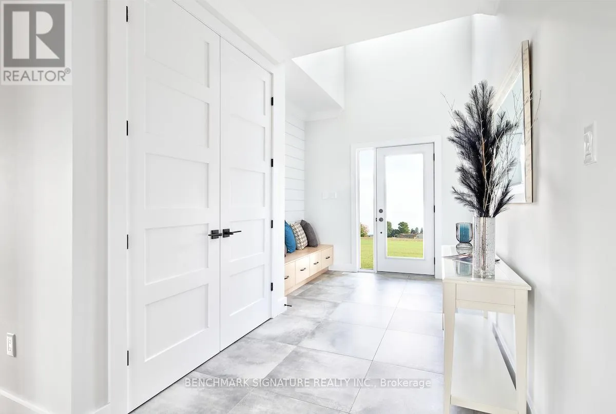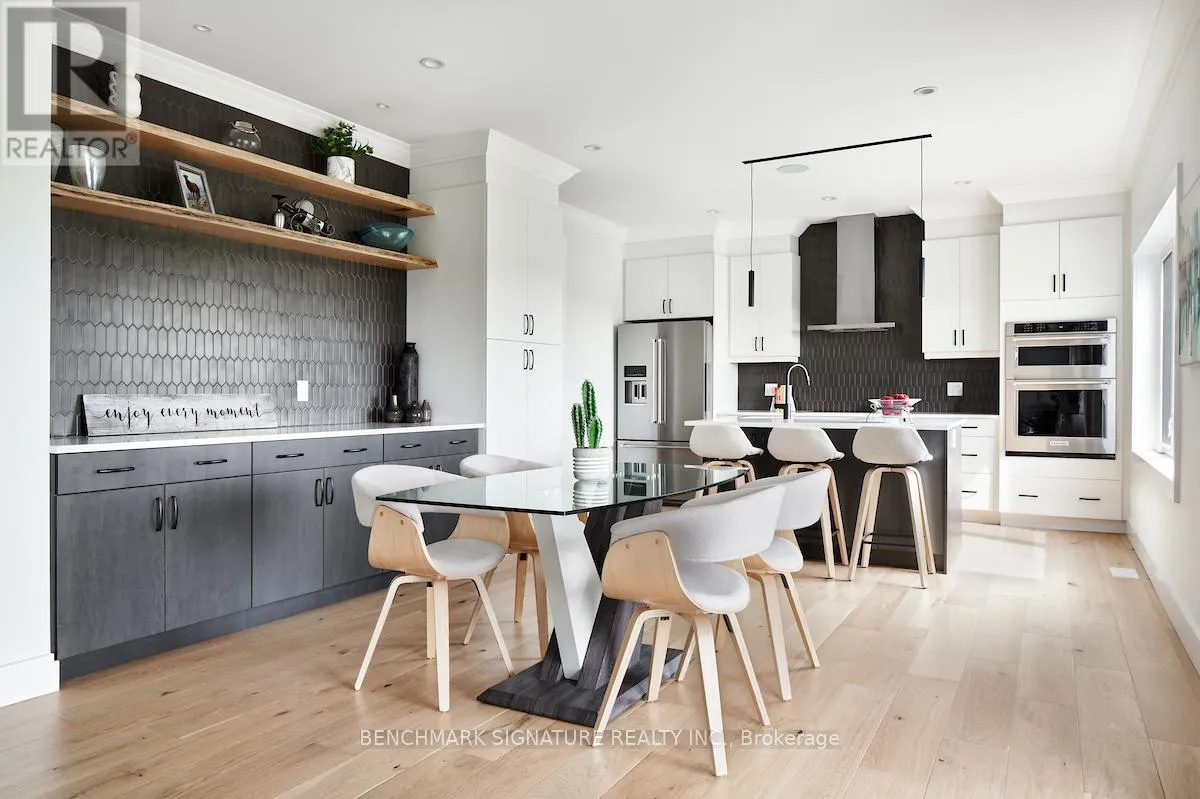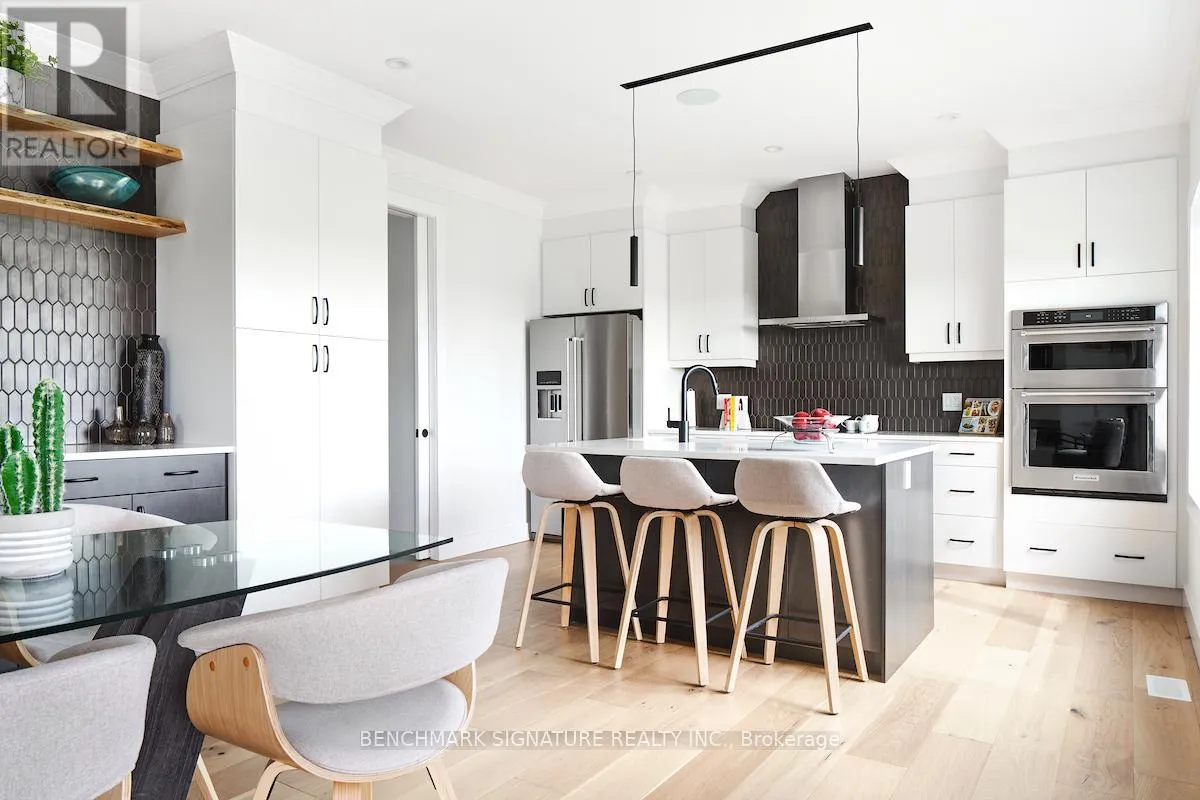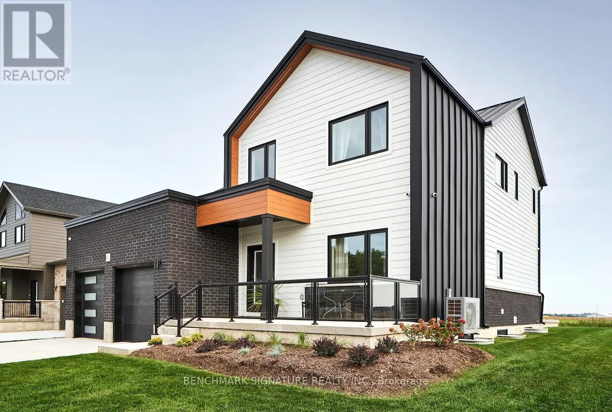 Fully upgraded builder model home featuring a complete Net Zero system with solar panels and Hydro One net metering. Located at 23 Totten St on a 65-foot wide corner lot with a rear farm view. The exterior features a Modern Elevation with a steel roof, upgraded LP Smartside engineered wood siding, a brushed concrete driveway, and a large