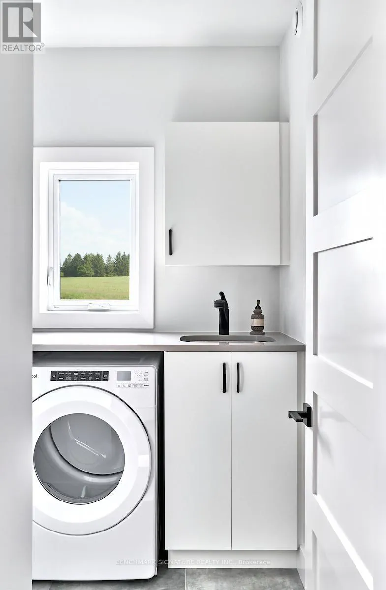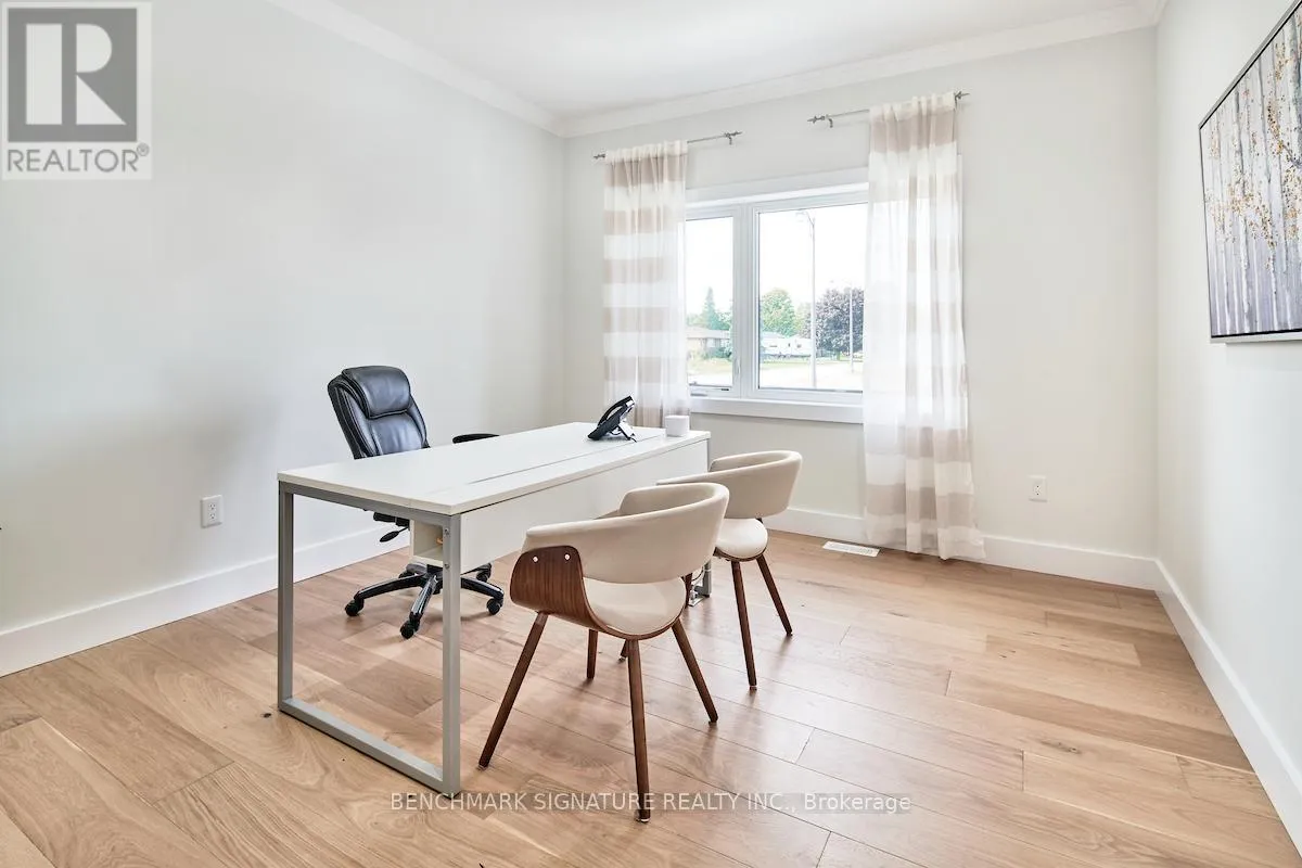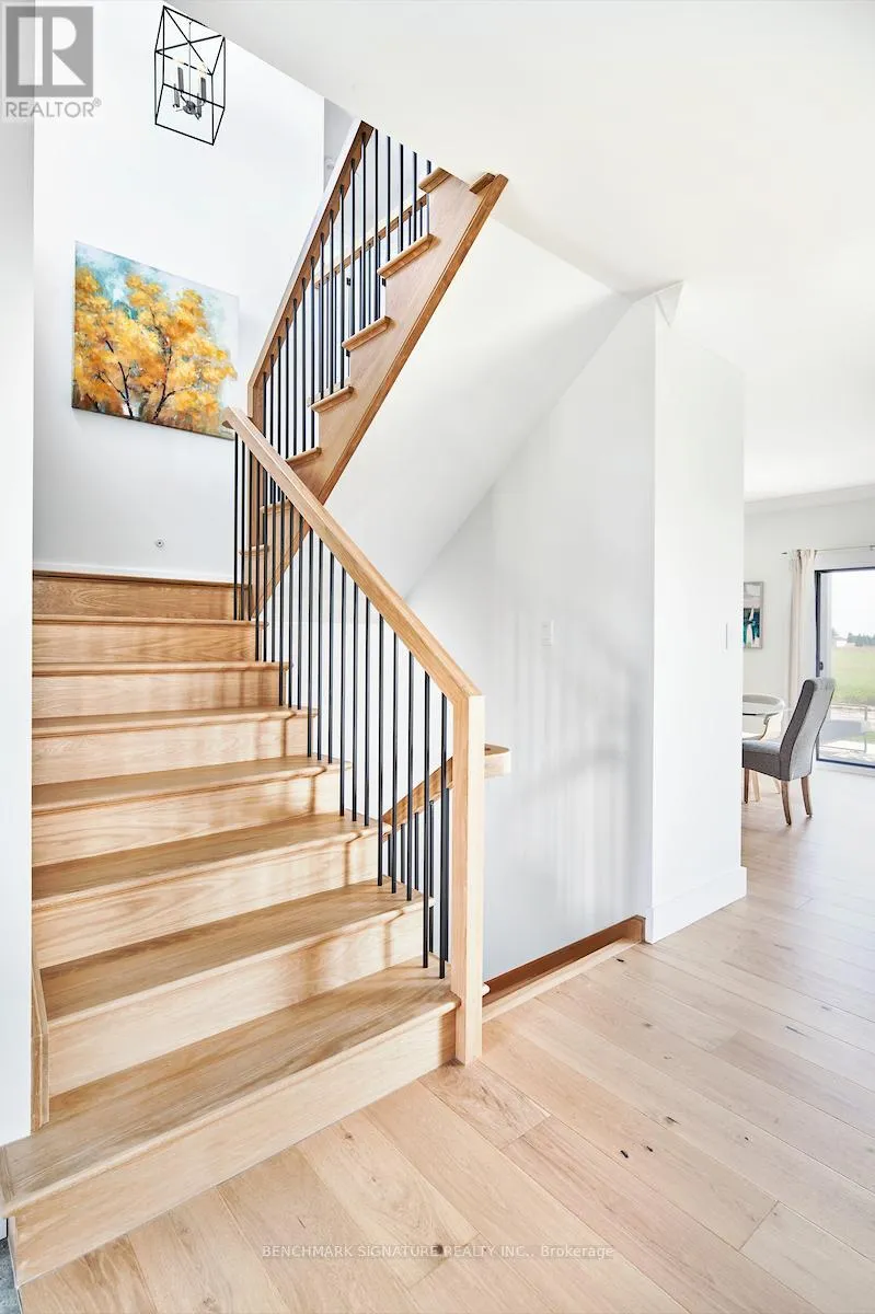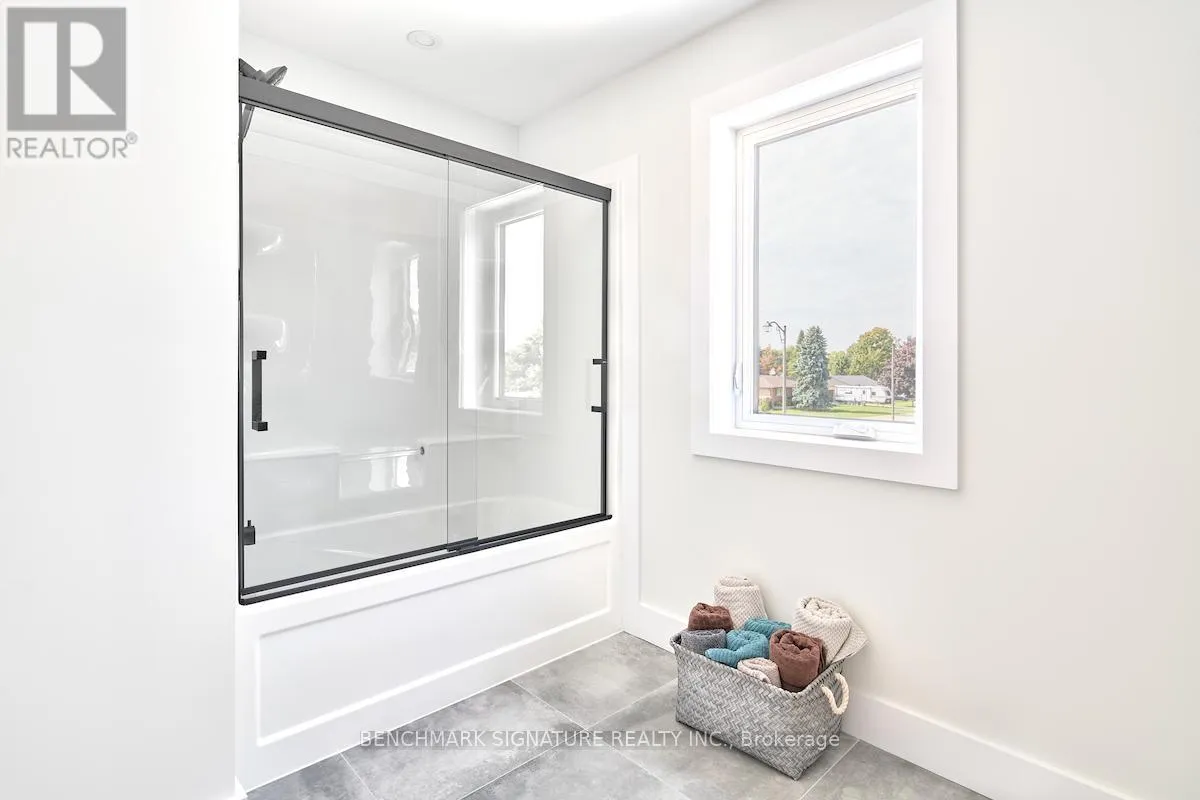 Fully upgraded builder model home featuring a complete Net Zero system with solar panels and Hydro One net metering. Located at 23 Totten St on a 65-foot wide corner lot with a rear farm view. The exterior features a Modern Elevation with a steel roof, upgraded LP Smartside engineered wood siding, a brushed concrete driveway, and a large