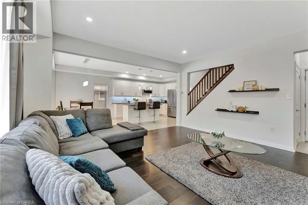 Welcome to 16 Cumberland Street! This beautifully maintained 4 bedroom, 2.5 bath home was built in 2020 and is perfectly situated on a quiet street in a family-friendly neighbourhood, just minutes from Highway 403, ideal for those commuting to the GTA. Inside, the bright and spacious main floor features soaring 9-foot ceilings, pot lighting, and a modern open concept layout
