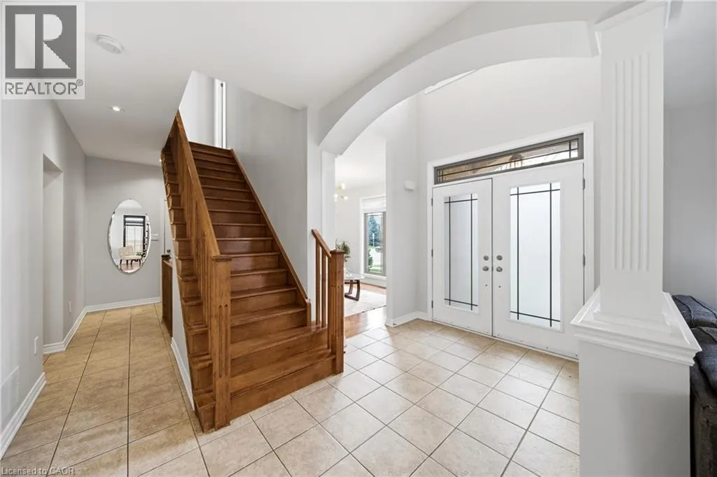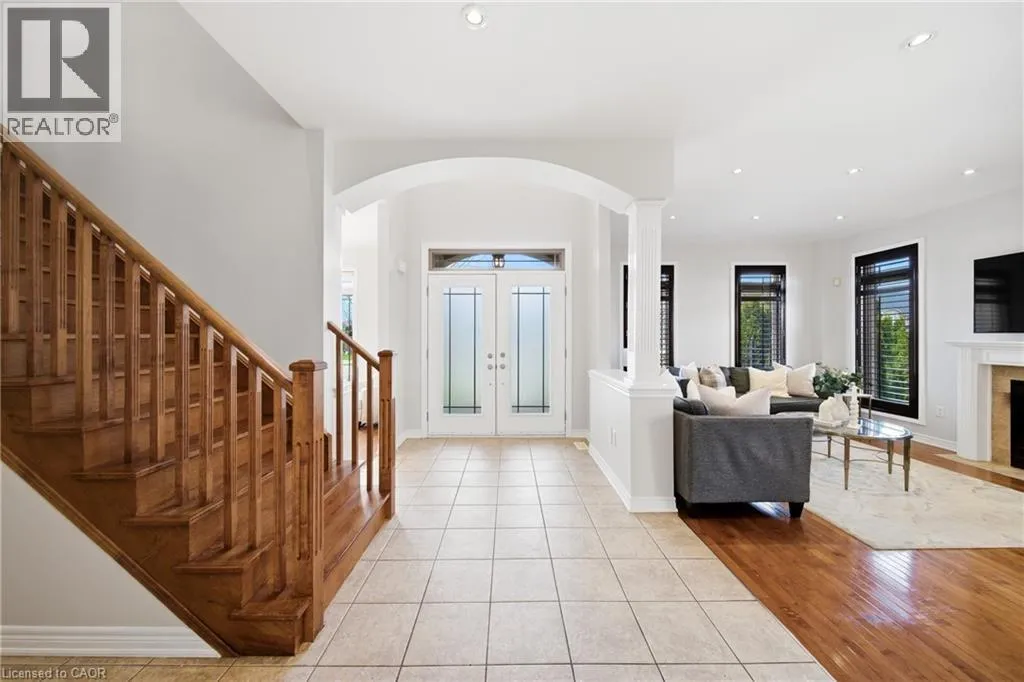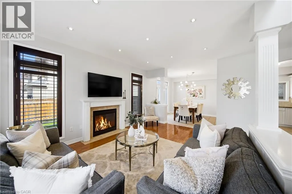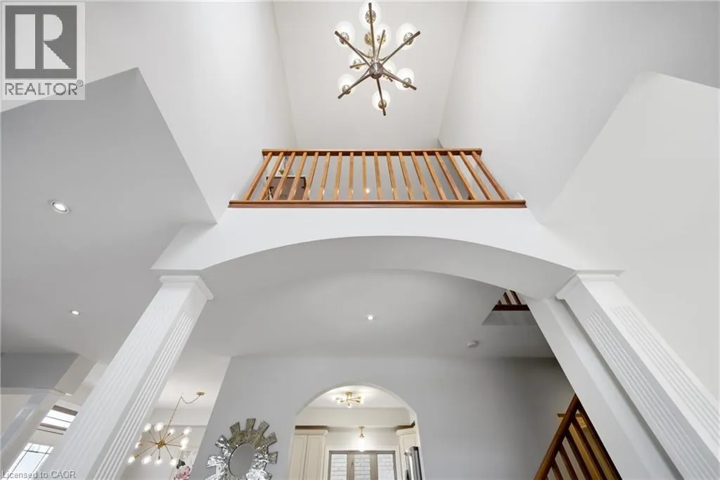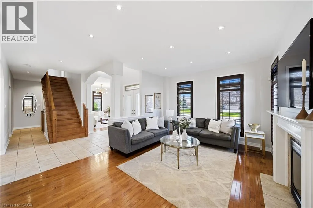 Welcome to this spacious and beautifully maintained 4+1 bedroom, 3.5 bathroom Maple Crest home in the heart of Ancaster’s sought-after Meadowlands—perfect for growing families. Impressive curb appeal greets you with a standout front entrance, balcony, manicured landscaping, pebbled concrete walkway, and welcoming presence. Step inside to a grand two-storey foyer with 9-foot ceilings, setting the tone for the open-concept layout.
