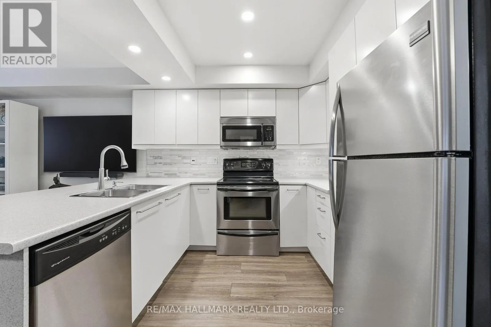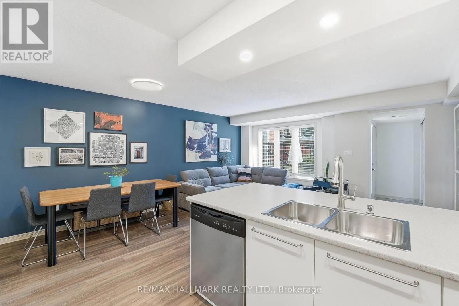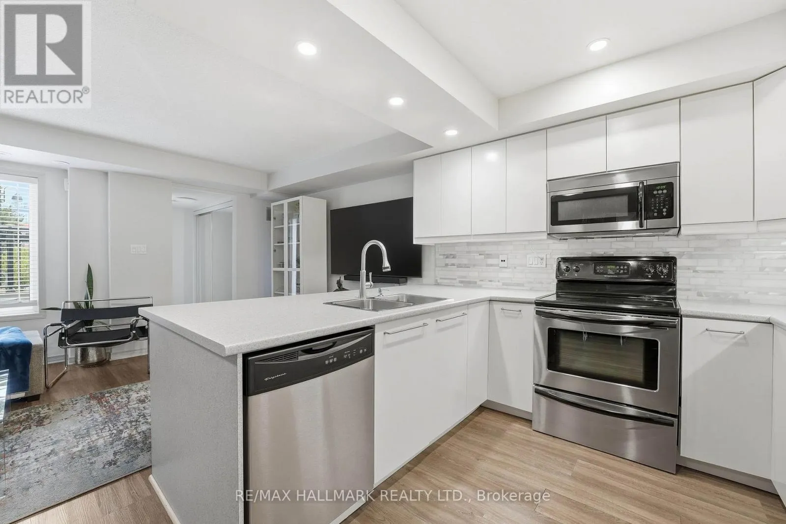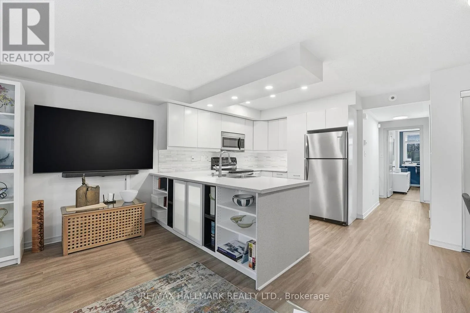Fantastic, well-designed ground-floor condo townhouse with front terrace and owned underground parking. This bright and functional 2-bedroom, 2-bathroom home features a desirable open-concept layout with sunny south exposure, allowing natural light to flow throughout the day. Recent updates include a large, open concept renovated kitchen and laminate flooring throughout. Enjoy seamless indoor-outdoor living with a front terrace complete