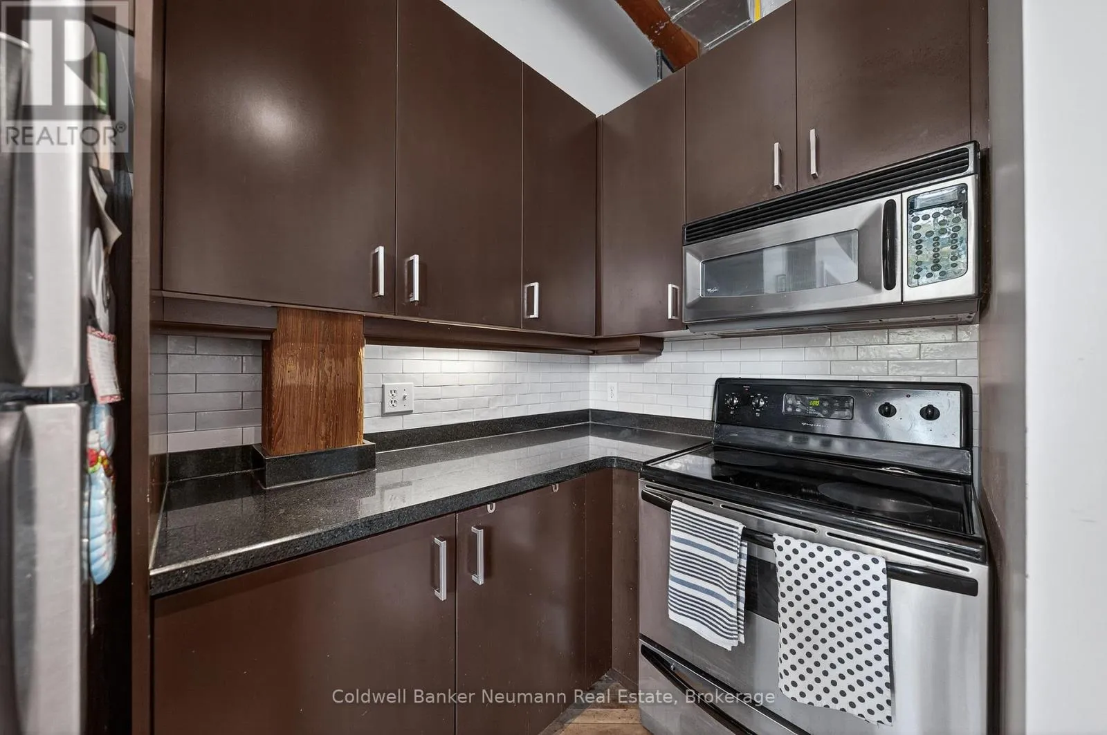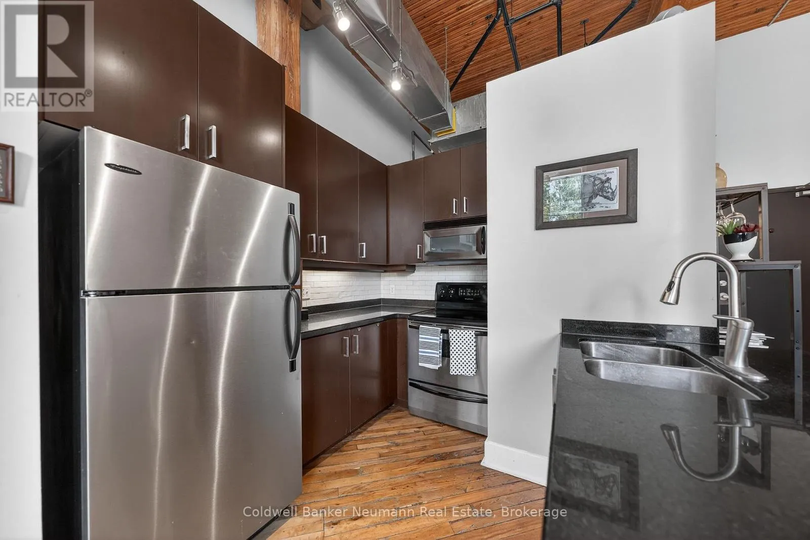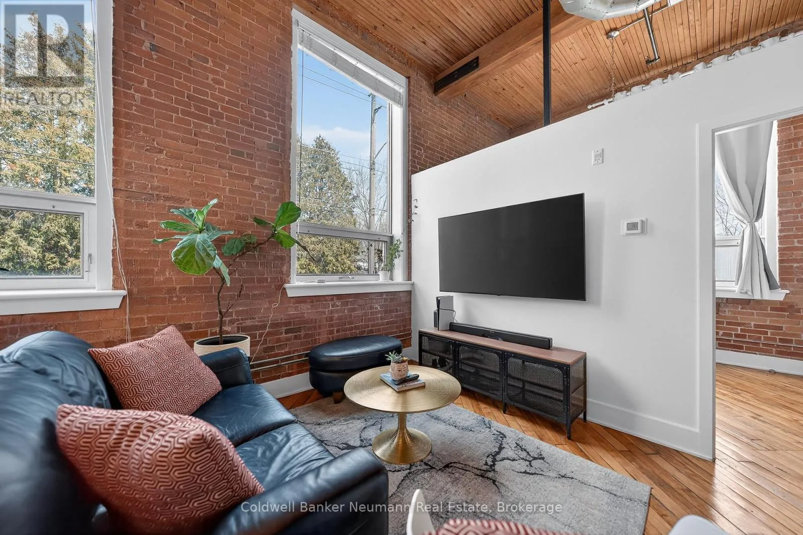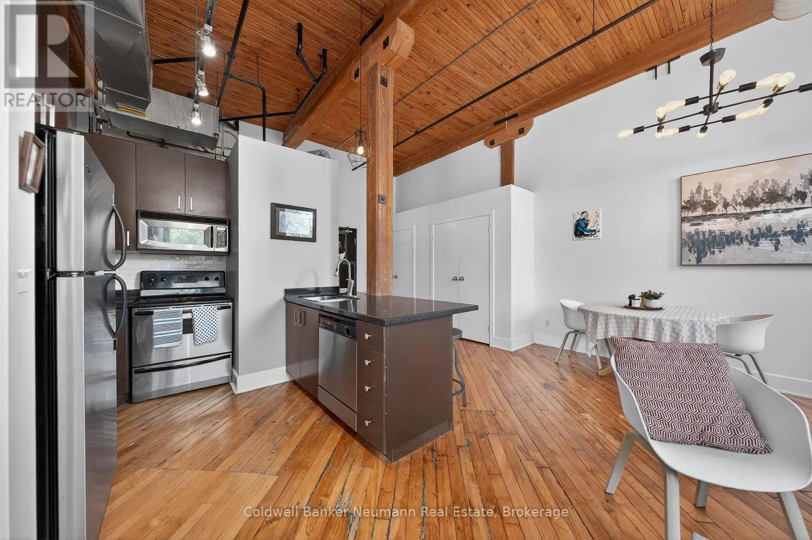 Authentic loft living in the heart of Guelph. Located in the highly desirable Mill Lofts, this corner unit is a one-bedroom, one-bathroom. it showcases the timeless appeal of true industrial design paired with thoughtful modern updates.Rich exposed brick walls set the tone throughout the space, adding warmth, texture, and undeniable character you simply won’t find in newer builds. The open-concept