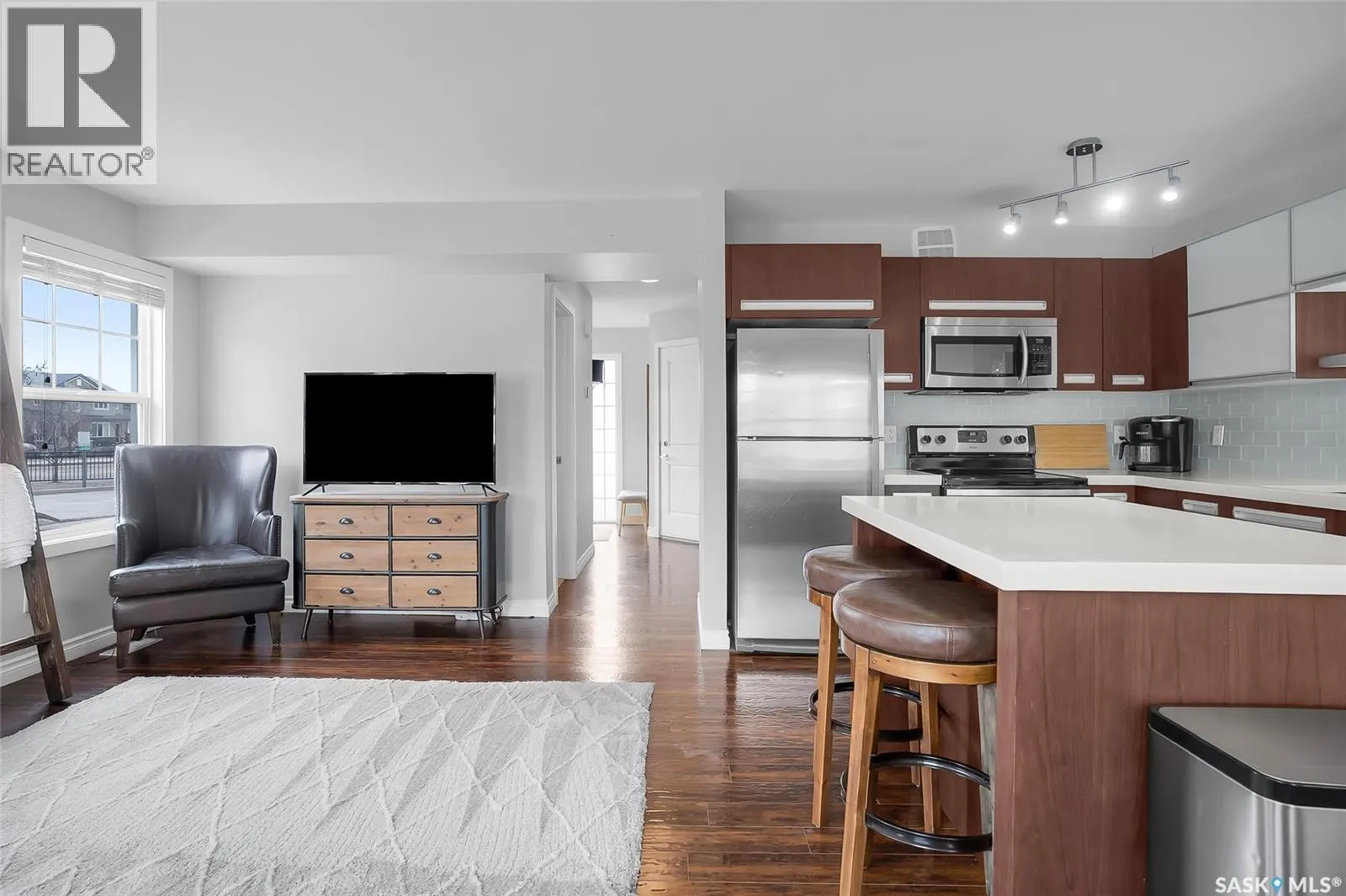 Welcome to this beautifully maintained corner, end-unit townhouse in Stonebridge, ideally positioned in a quiet, desirable spot within the complex. With south-facing exposure and extra windows throughout, this home is filled with natural light and feels bright and inviting from the moment you walk in. The main floor offers a functional open-concept layout with a modern kitchen featuring quartz countertops,