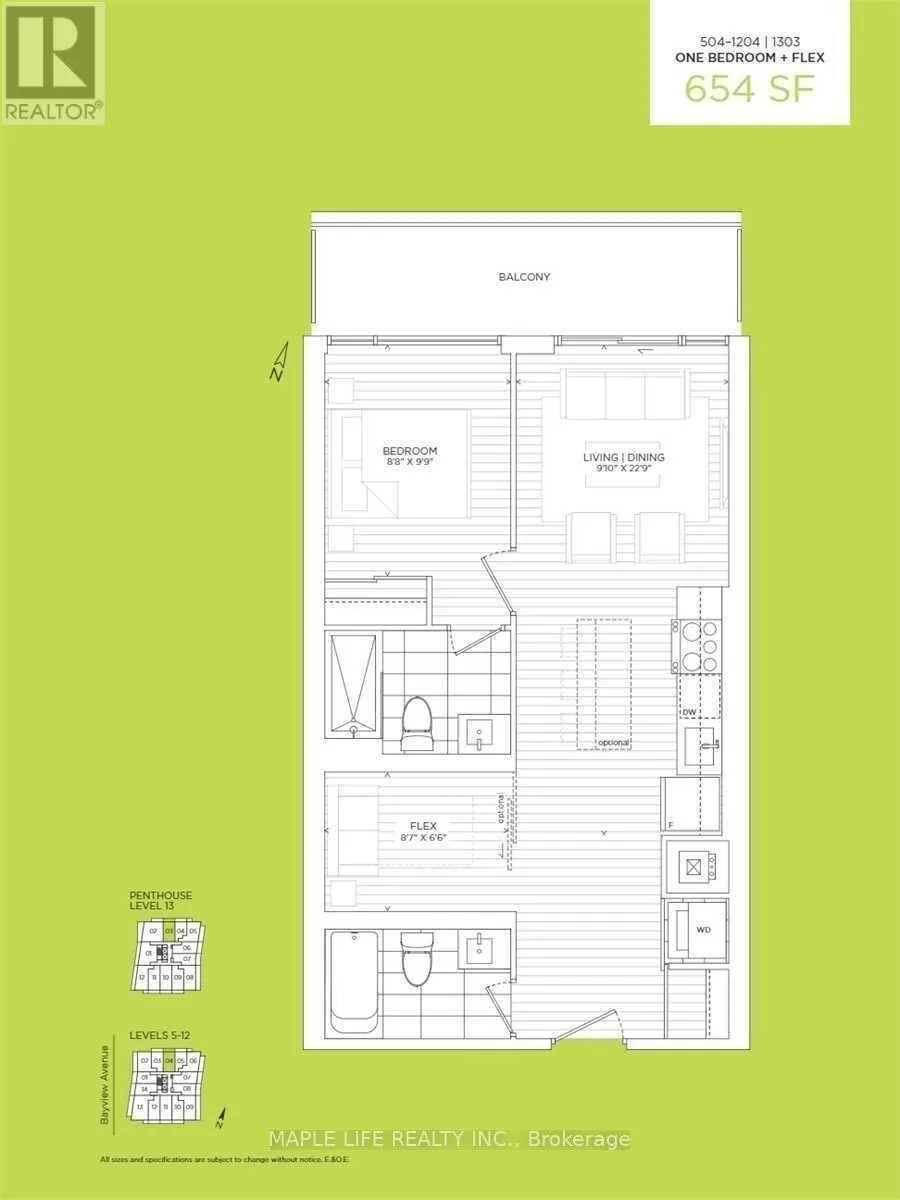 Welcome to “The Bennett on Bayview” Condo! Conveniently Located in the Heart of North York at Bayview and Cummer! This well-designed 1-bedroom + den suite offering 654 sq ft of functional living space, plus a large private balcony with open views and beautiful Sunsets. The Large Den Is Perfect For Home Office, Personal Yoga Studio Or Gym, Or Can Be