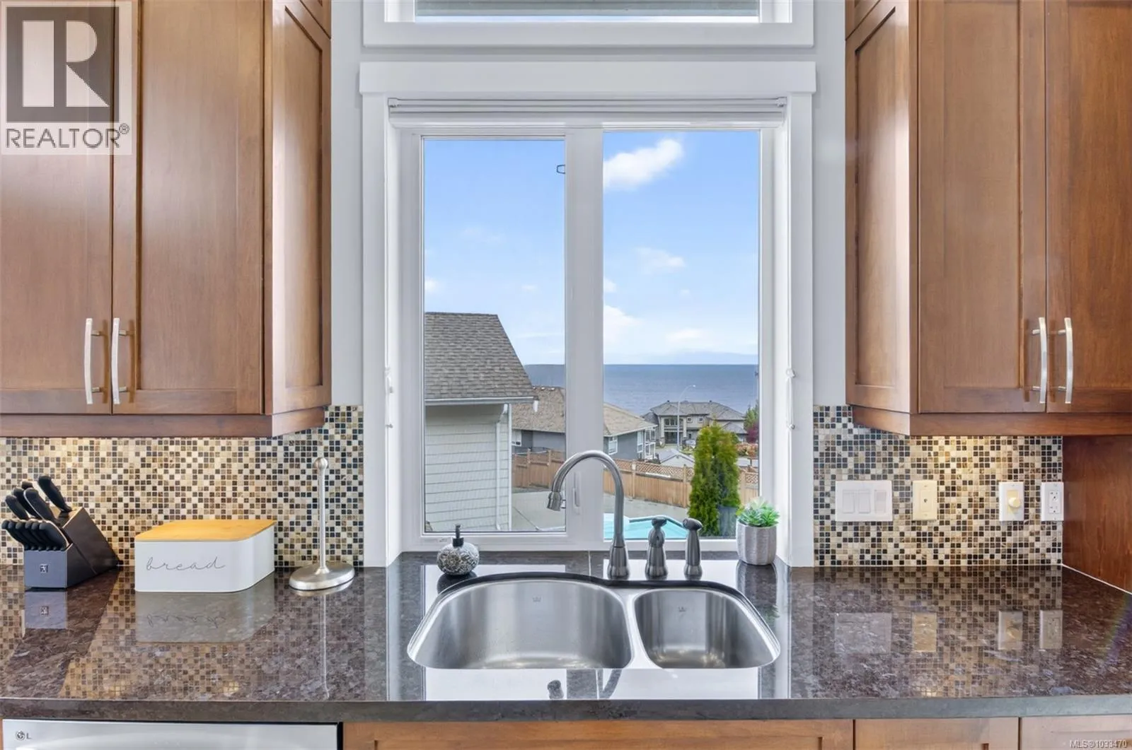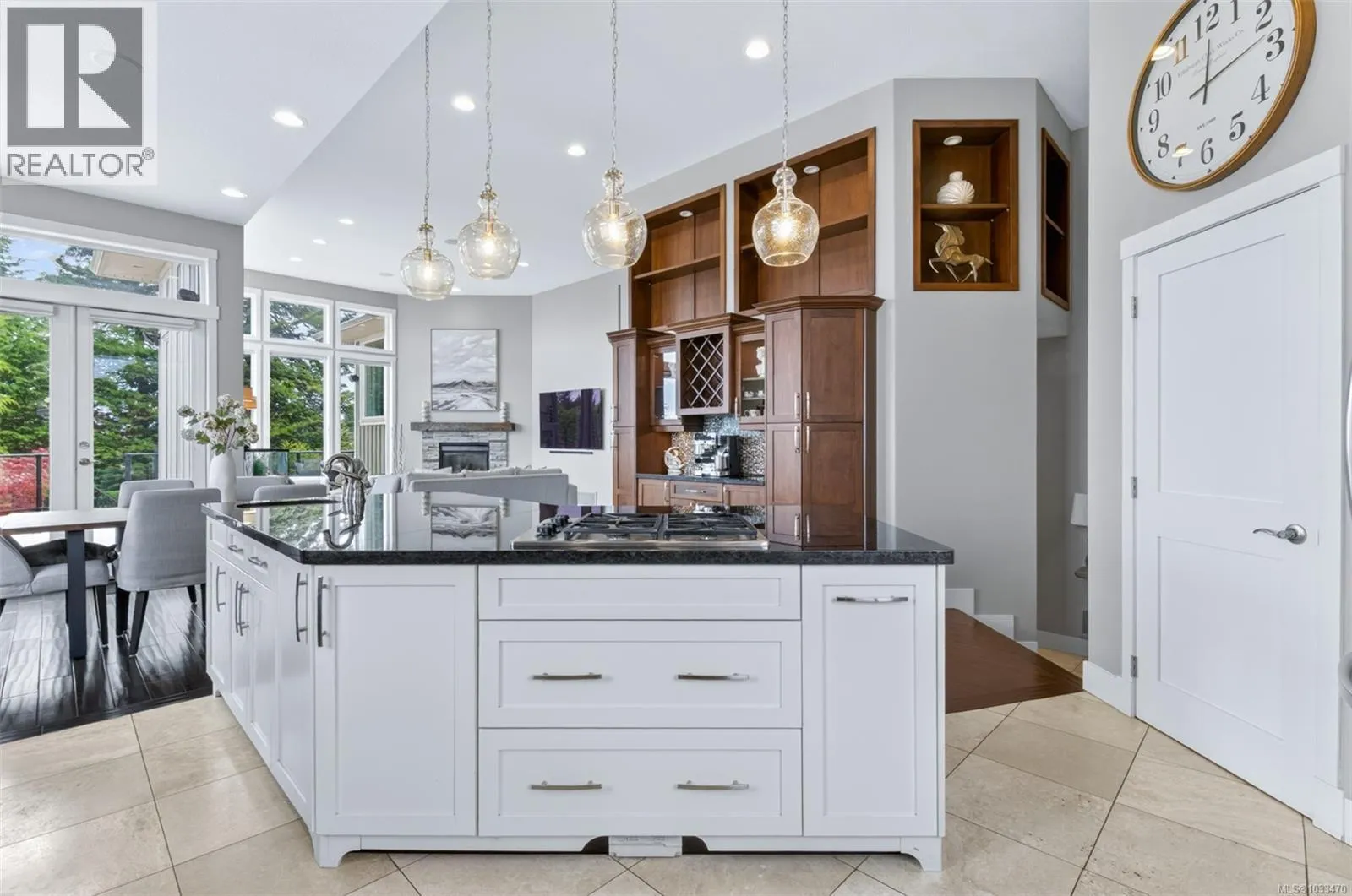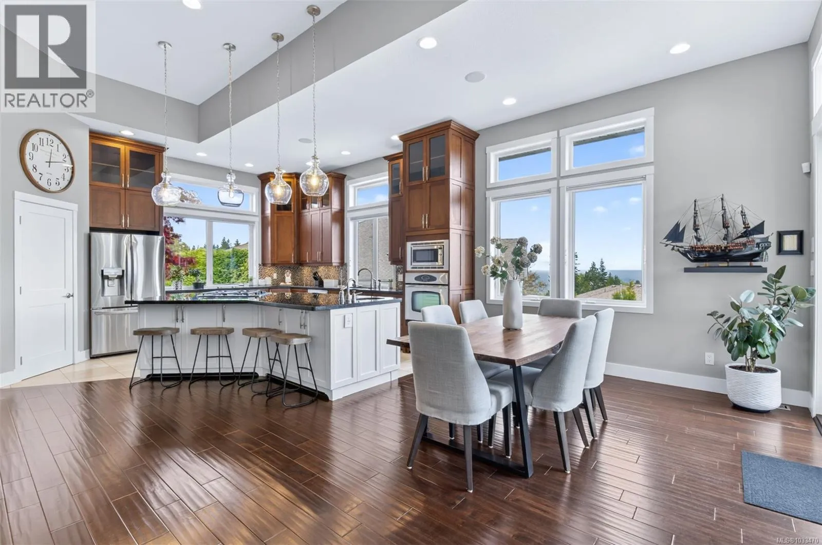 Welcome to 5676 Muggies Way, quietly tucked away, this custom home affords you privacy, inviting ocean views, and room enough for all your family and recreation. Grand solid wood doors open into the foyer, leading to a kitchen where you would be challenged to fill the cabinetry—and a pantry too! Step into an open plan with 12’ ceilings… kitchen, dining,