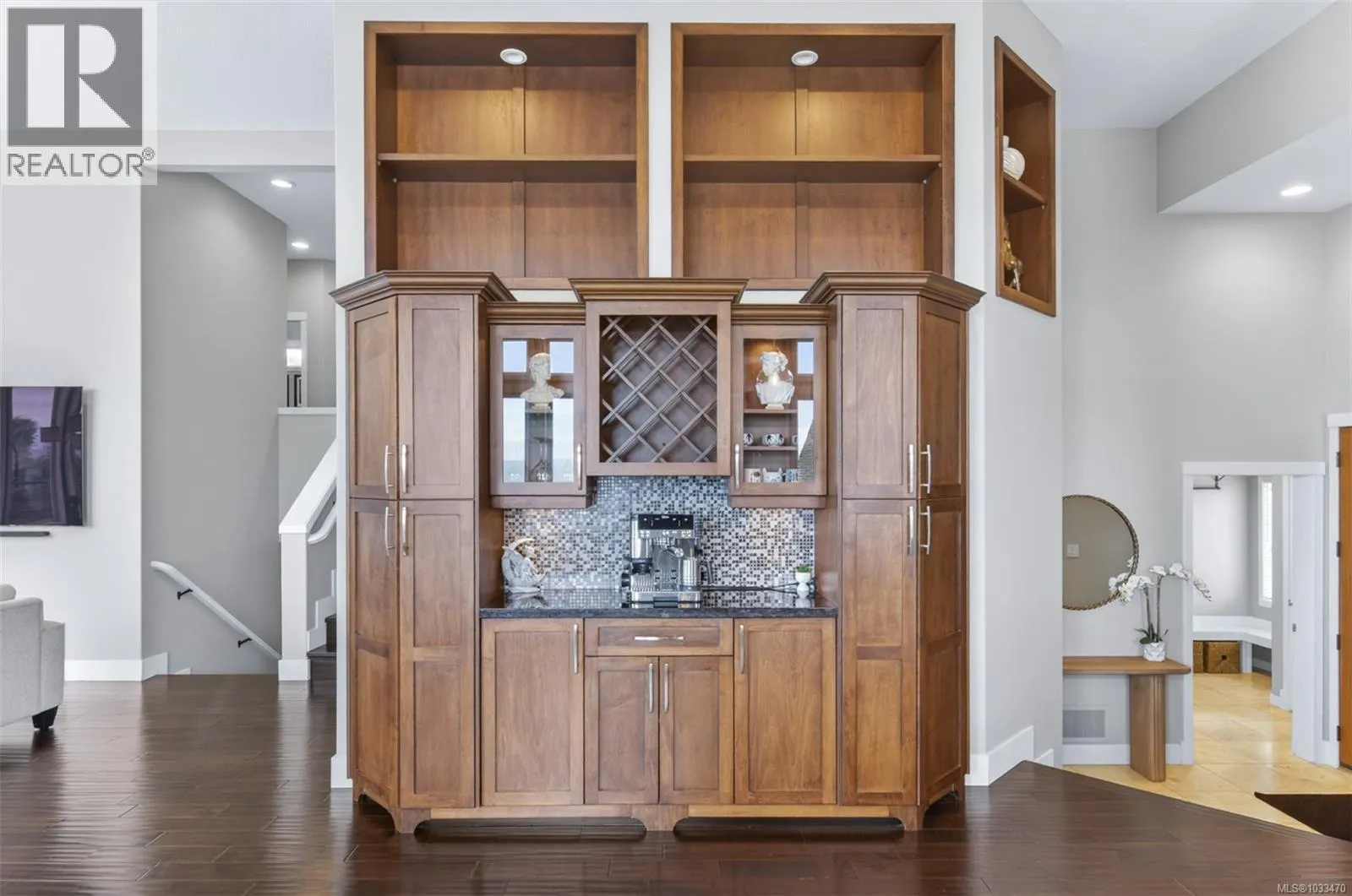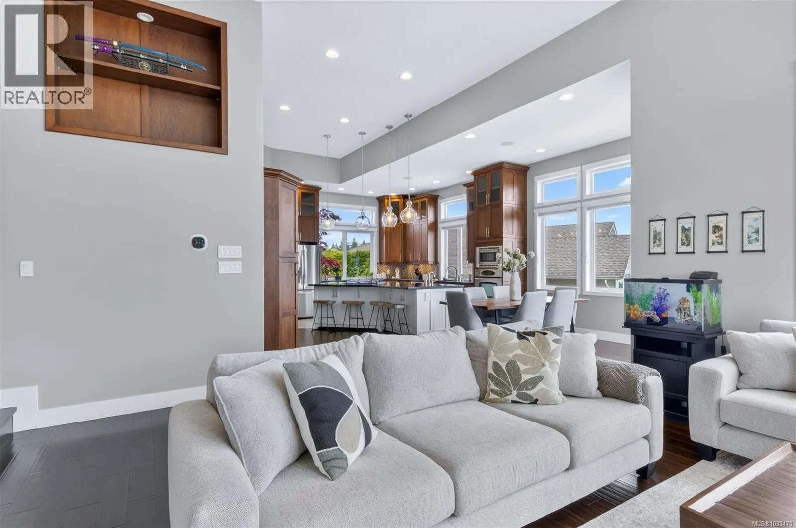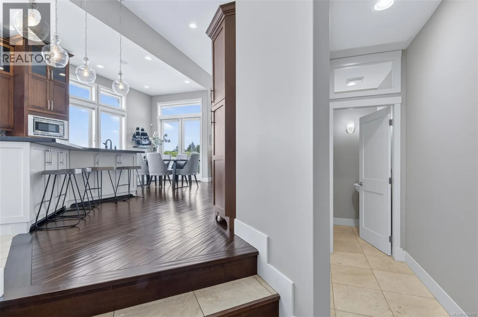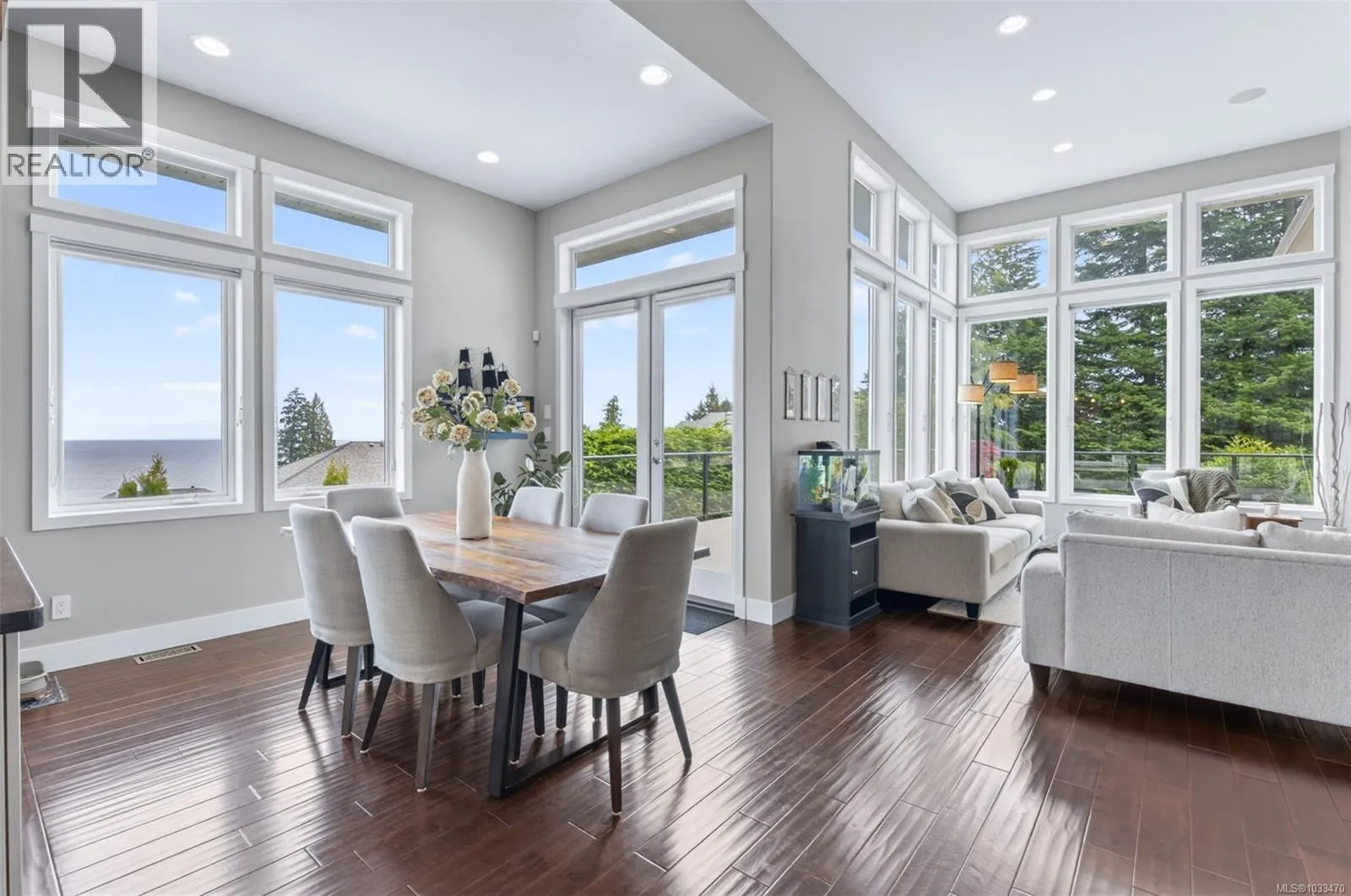 Welcome to 5676 Muggies Way, quietly tucked away, this custom home affords you privacy, inviting ocean views, and room enough for all your family and recreation. Grand solid wood doors open into the foyer, leading to a kitchen where you would be challenged to fill the cabinetry—and a pantry too! Step into an open plan with 12’ ceilings… kitchen, dining,