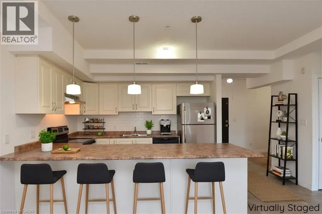 Welcome to 170 Rockhaven Lane unit #210! Well maintained and rarely offered 1- Bedroom + den condo in a safe, quiet, and exceptionally well-maintained building in the heart of Waterdown. This boutique complex is one of the few low-rise condo buildings in the area, known for its cleanliness, strong upkeep, and community feel. The unit features a large kitchen with