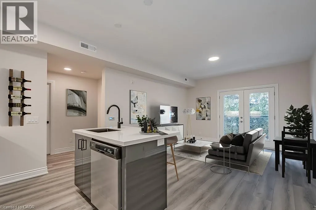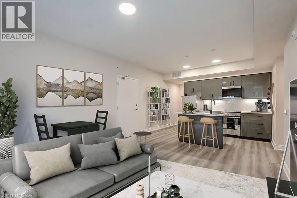 Bright and modern 830 sq. ft. open-concept condo featuring 2 bedrooms and 1 bathroom in the heart of Stoney Creek. This well-appointed unit offers stylish finishes throughout, including vinyl flooring, stainless steel appliances, quartz countertops, and convenient in-suite laundry. Enjoy the ease of one included parking space, along with access to a picnic area and visitor parking. Ideally located just