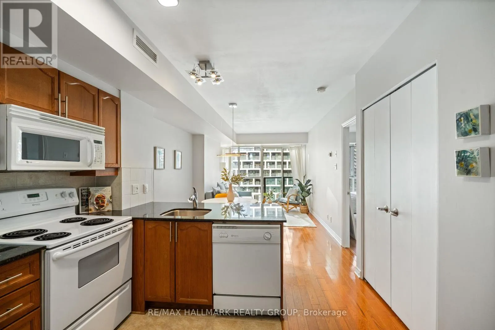 Welcome to this stylish and spacious one bed unit perched high in Ottawa’s Downtown at the Pinnacle. Offering inspiring city, river and Gatineau views with a thoughtful and liveable layout. This large one bedroom unit (665 sq ft) offers granite counters, hardwood floors, private balcony and inunit laundry. Space for both Dining and Living area and a bedroom with