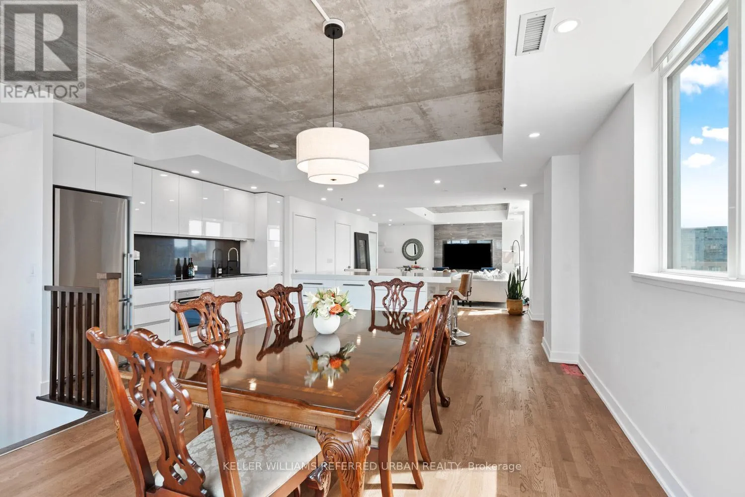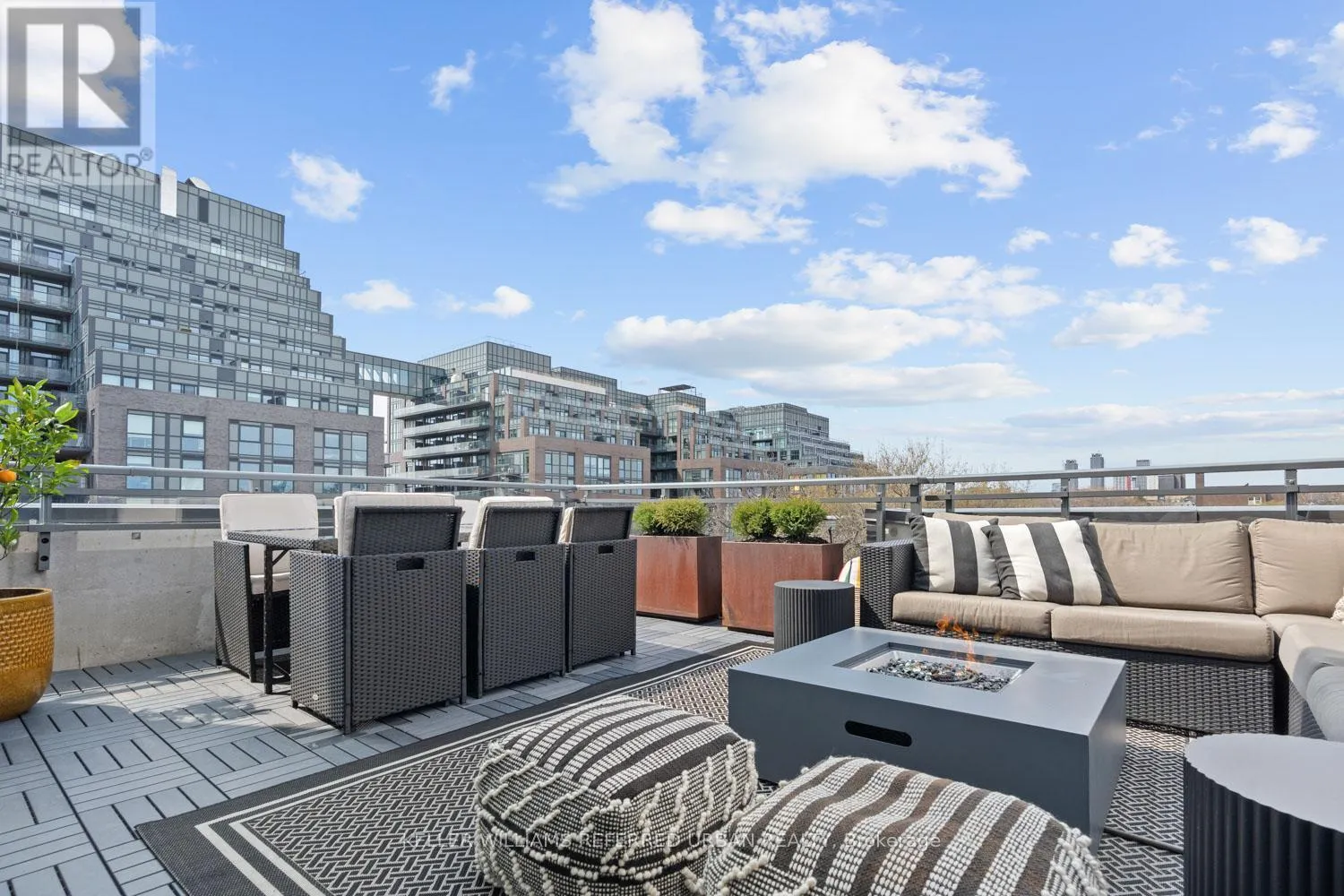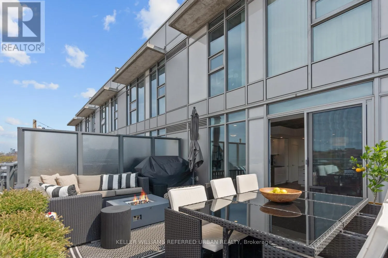 This beautifully redesigned two-storey condo loft offers a refined blend of style and functionality, highlighted by custom upgrades throughout and a truly show-stopping terrace, complete with a gas fireplace and BBQ hookup, perfect for hosting unforgettable summer gatherings. Designed to feel like a standalone home, the space is filled with natural light from surrounding windows and features an upper level