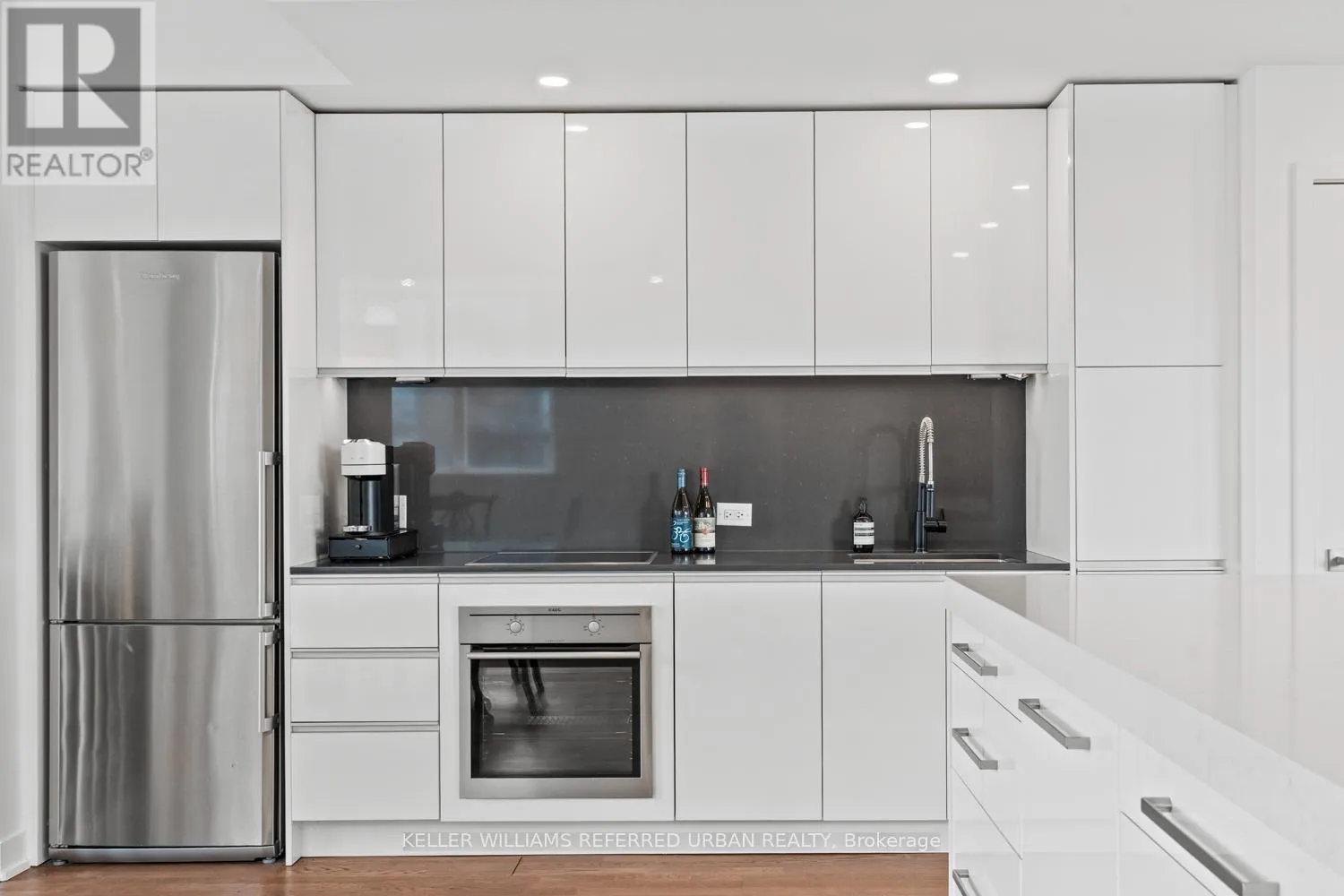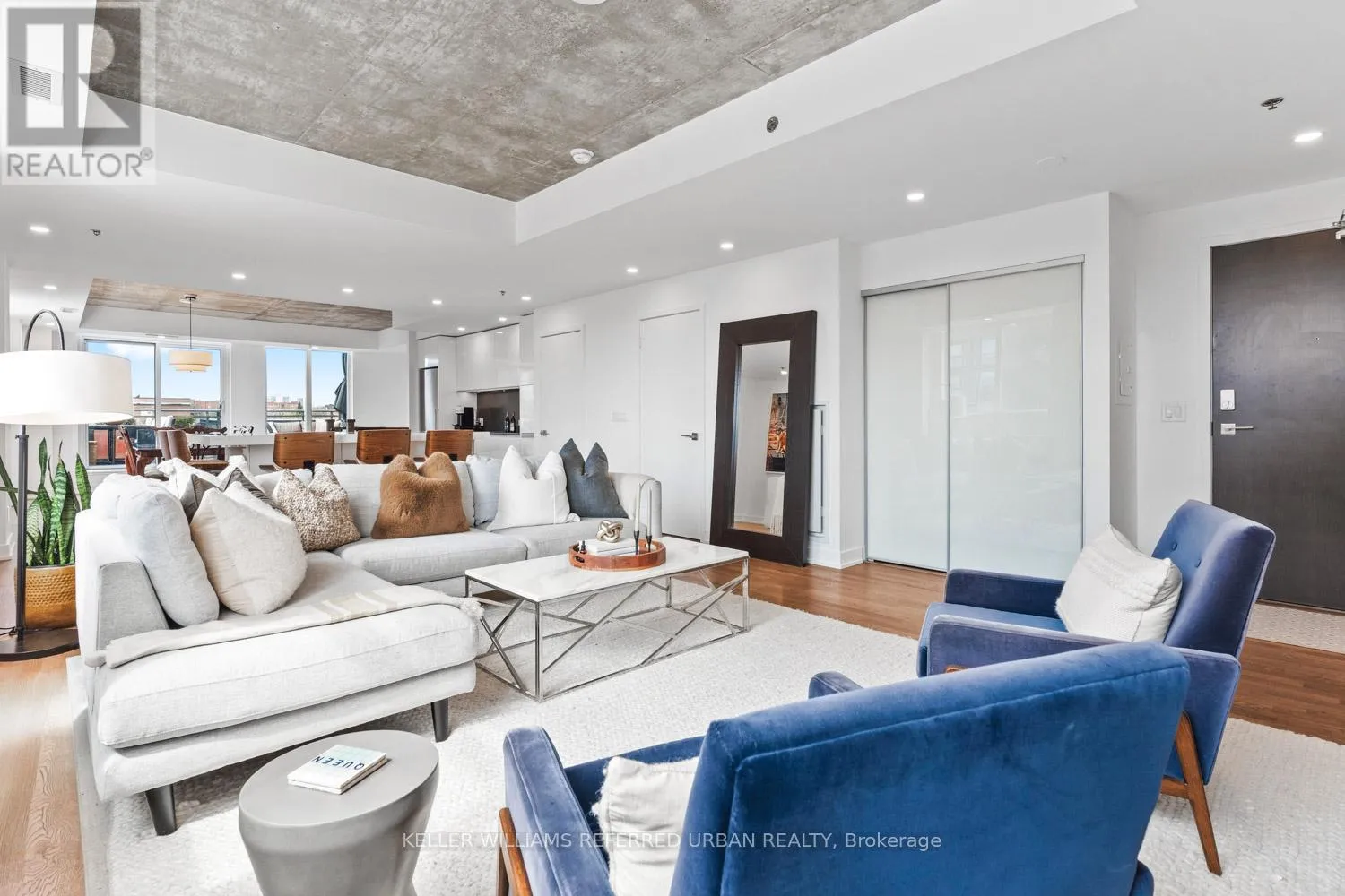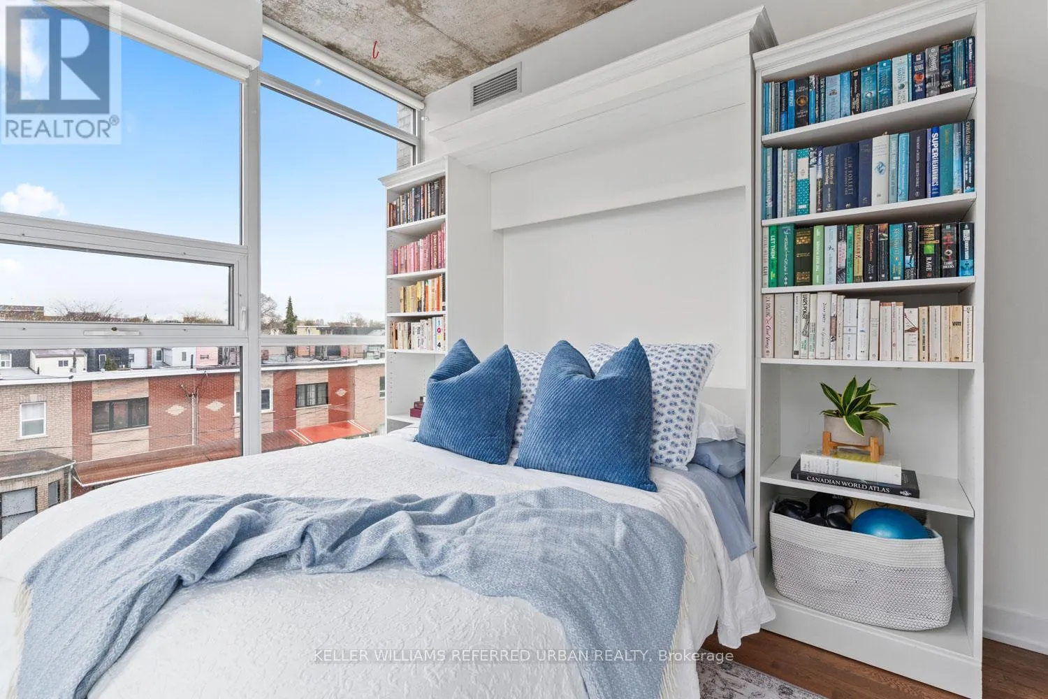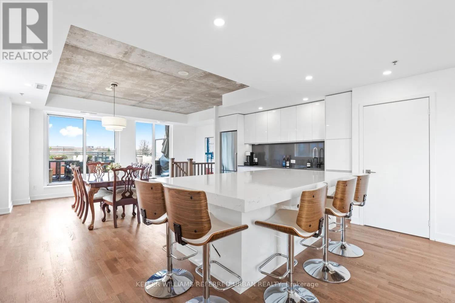 This beautifully redesigned two-storey condo loft offers a refined blend of style and functionality, highlighted by custom upgrades throughout and a truly show-stopping terrace, complete with a gas fireplace and BBQ hookup, perfect for hosting unforgettable summer gatherings. Designed to feel like a standalone home, the space is filled with natural light from surrounding windows and features an upper level