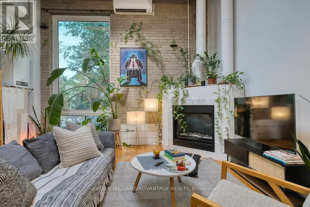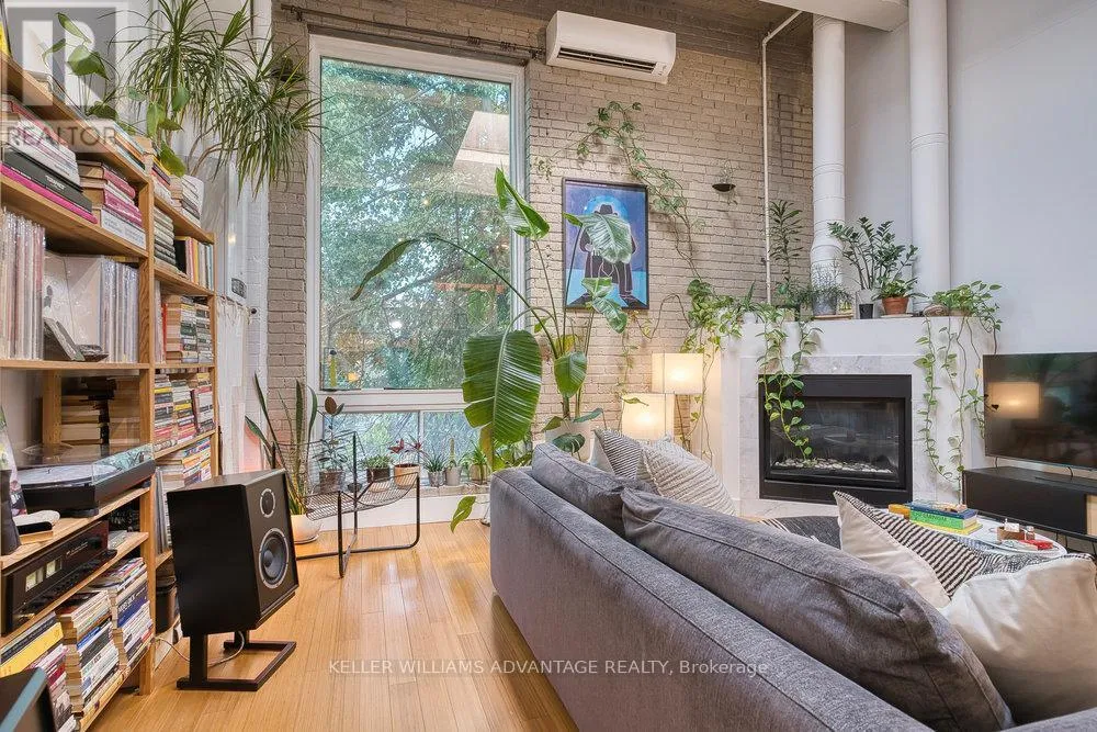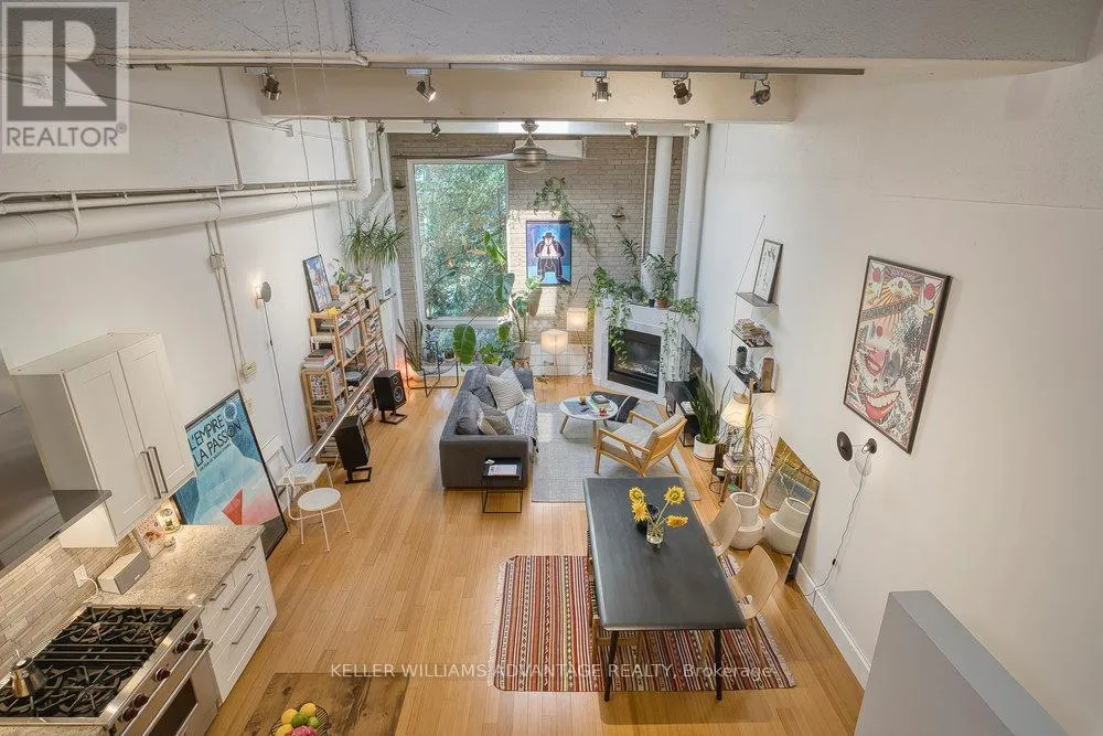 Magnificent, big and bright, two-level loft available in brick and beam factory-loft conversion. Conveniently located in the heart of Toronto on a tree-lined street of Victorian brick homes in Cabbagetown South. Open-concept sky-lit living and dining areas with gas fireplace, hardwood flooring, large window, and soaring 15 foot high ceilings. Spacious kitchen with stainless steel appliances, top of the line