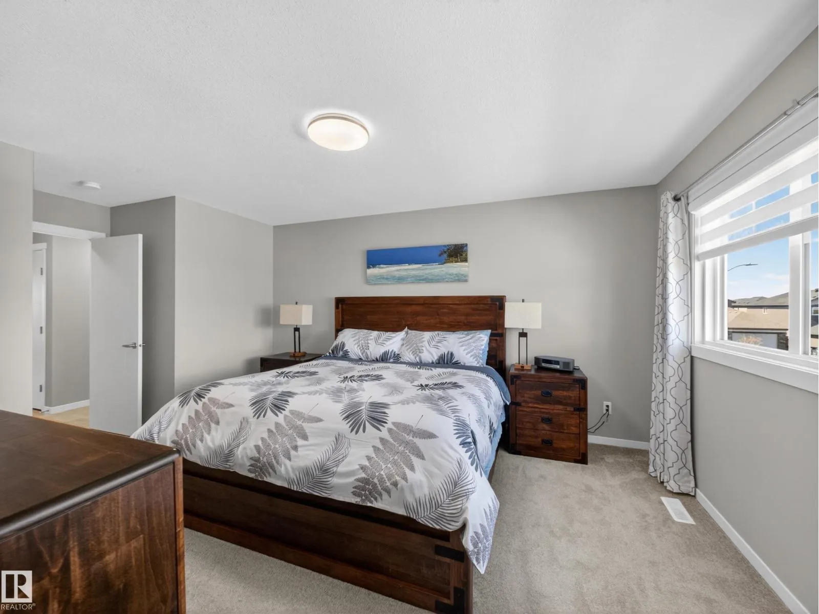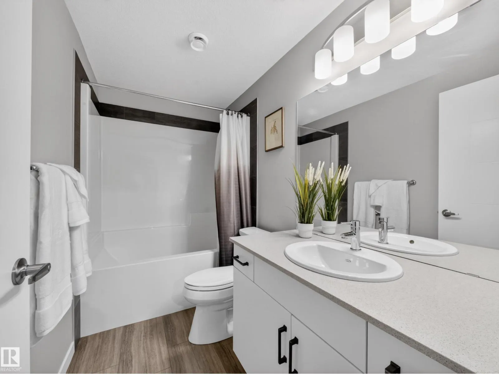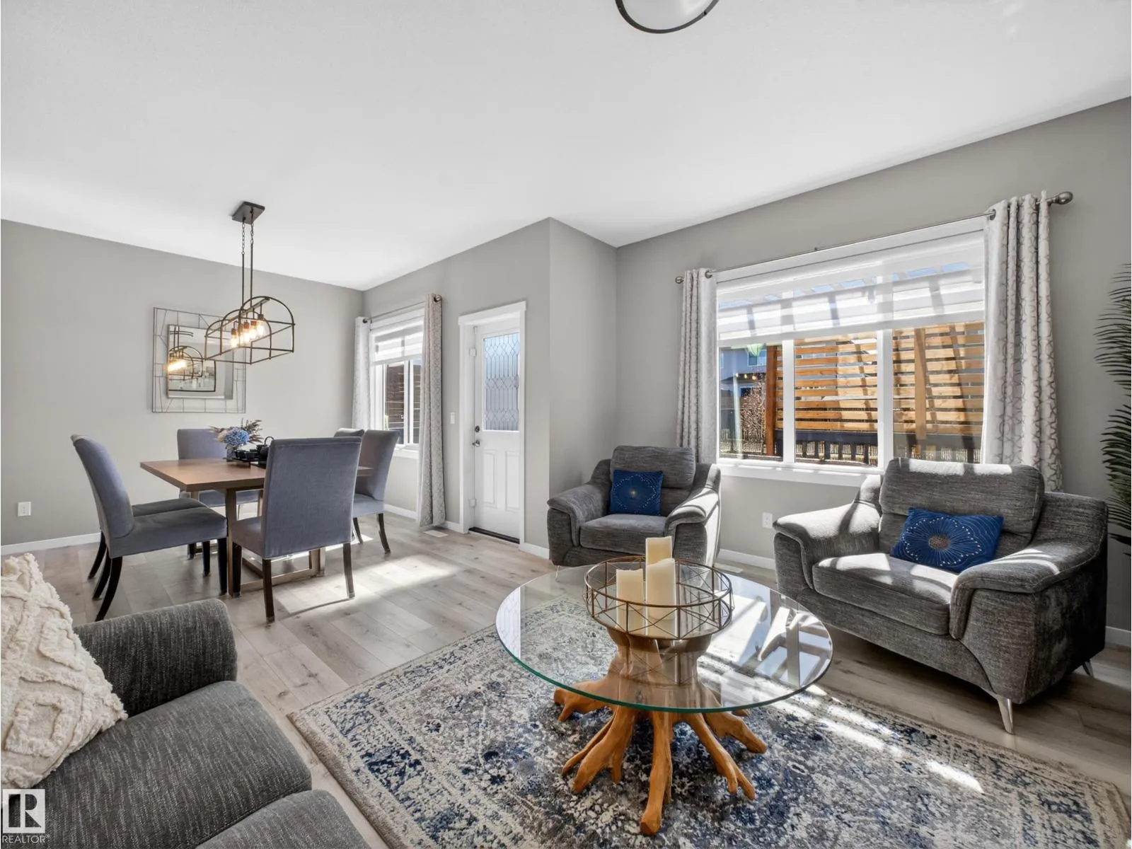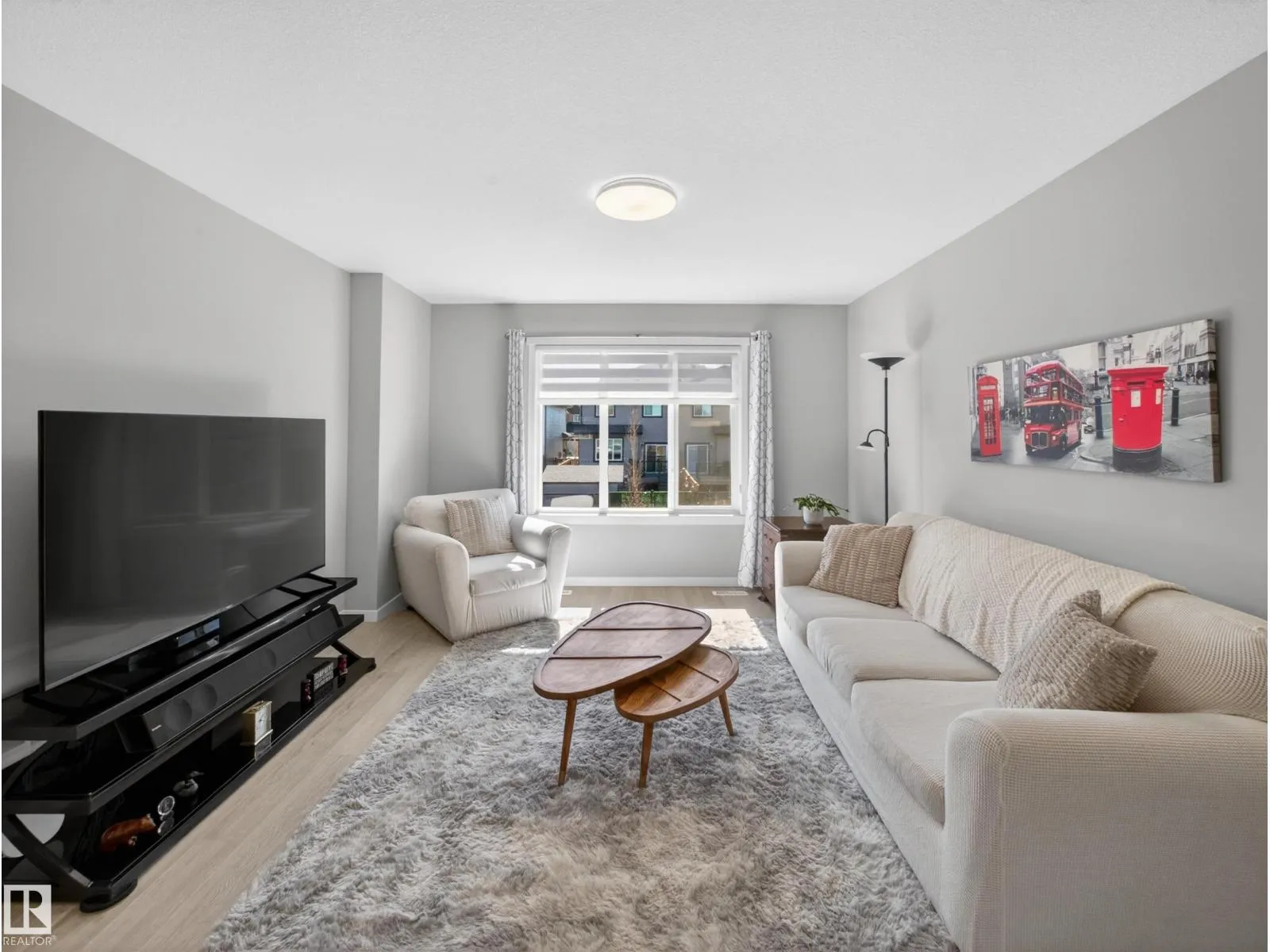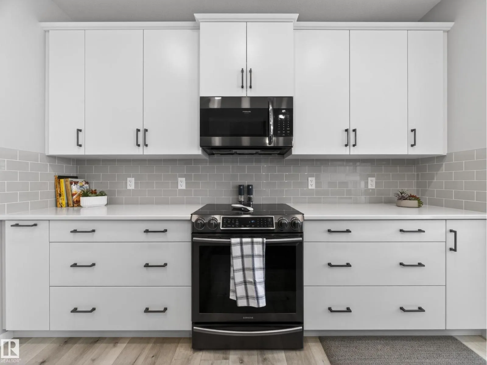 Welcome to this stunning, move-in ready home with stylish, modern finishings throughout! The main floor features beautiful LVP flooring and a designer kitchen with classic white cabinetry, a contrasting grey island, quartz countertops, sleek hardware, and stainless steel appliances. The open-concept living room is anchored by a trendy gas fireplace and a large picture window overlooking the backyard. Step outside