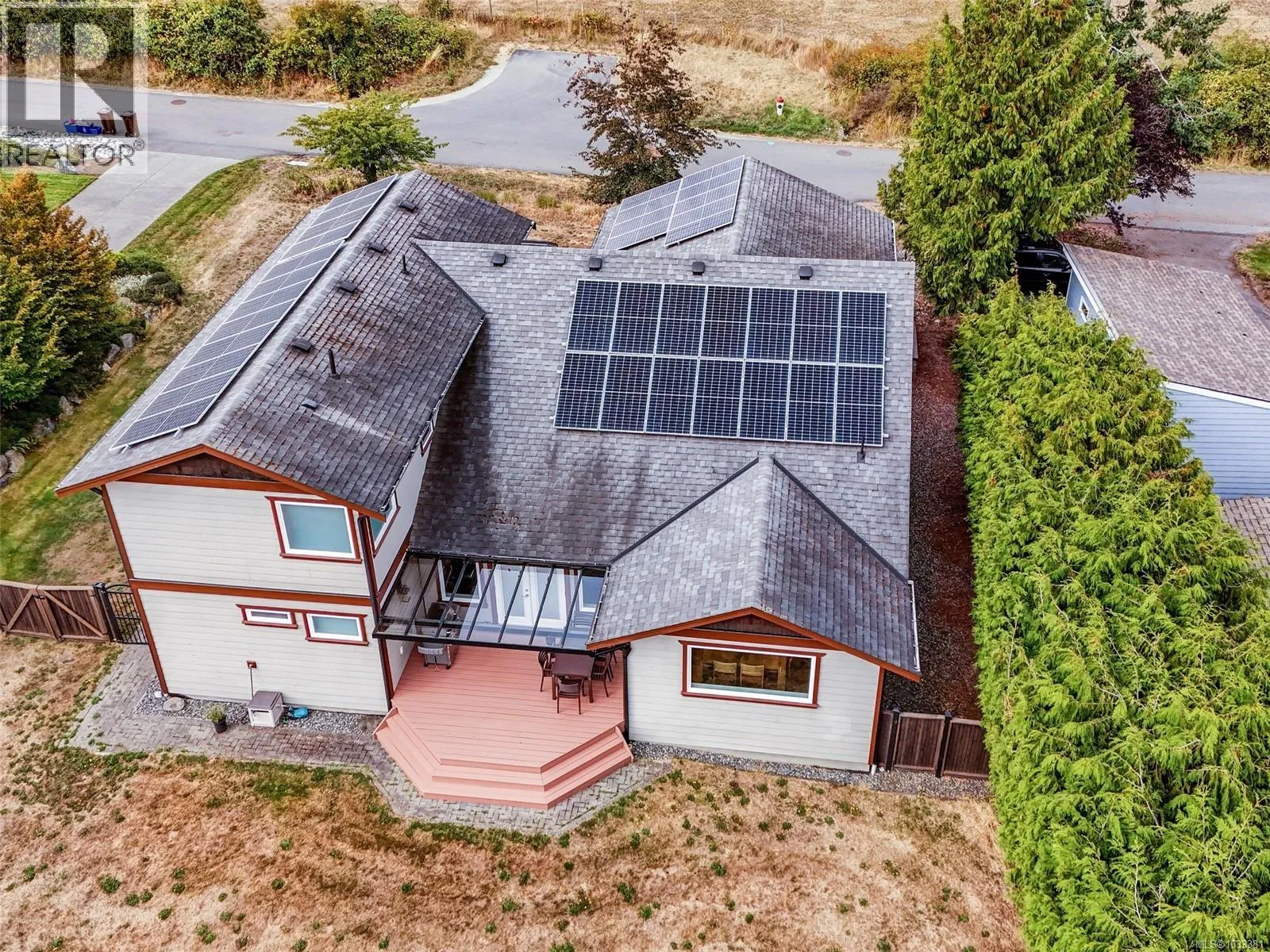 **OPEN HOUSE Saturday May 2, 1-2:30pm ** SPACIOUS, SOLAR POWERED LUXURY FAMILY HOME THAT FEELS LIKE IT’S IN THE COUNTRY and is just minutes to amenities! 35 Solar panels provide over 80% percent of power for the nearly new house. A bright, high-ceiling, open floor plan with 2 identical primary bedrooms – one on main floor and one on upper