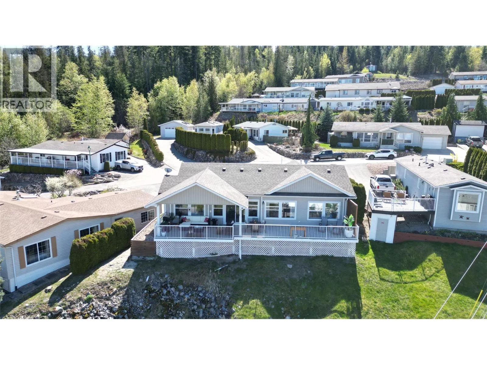 Breathtaking lake and mountain views from this meticulously maintained 2 bedroom, 2 bathroom modular home located in Sorrento’s Deer Ridge Estates, a 55+ and quiet community. This home offers an excellent floorplan with bedrooms on opposite ends of the home and and open concept living room and kitchen. Enjoy your morning coffee on the large 50′ wide partially-covered deck with