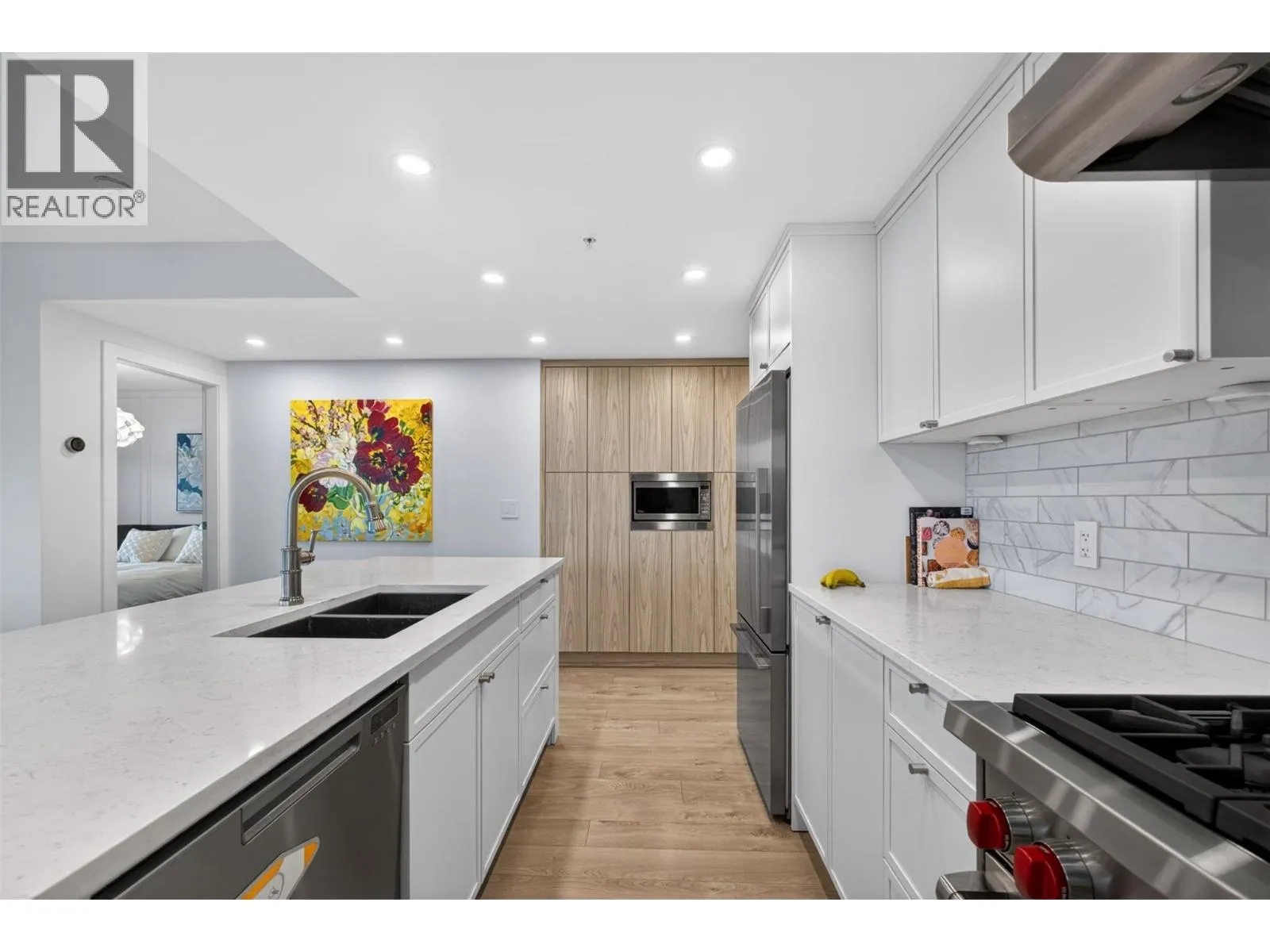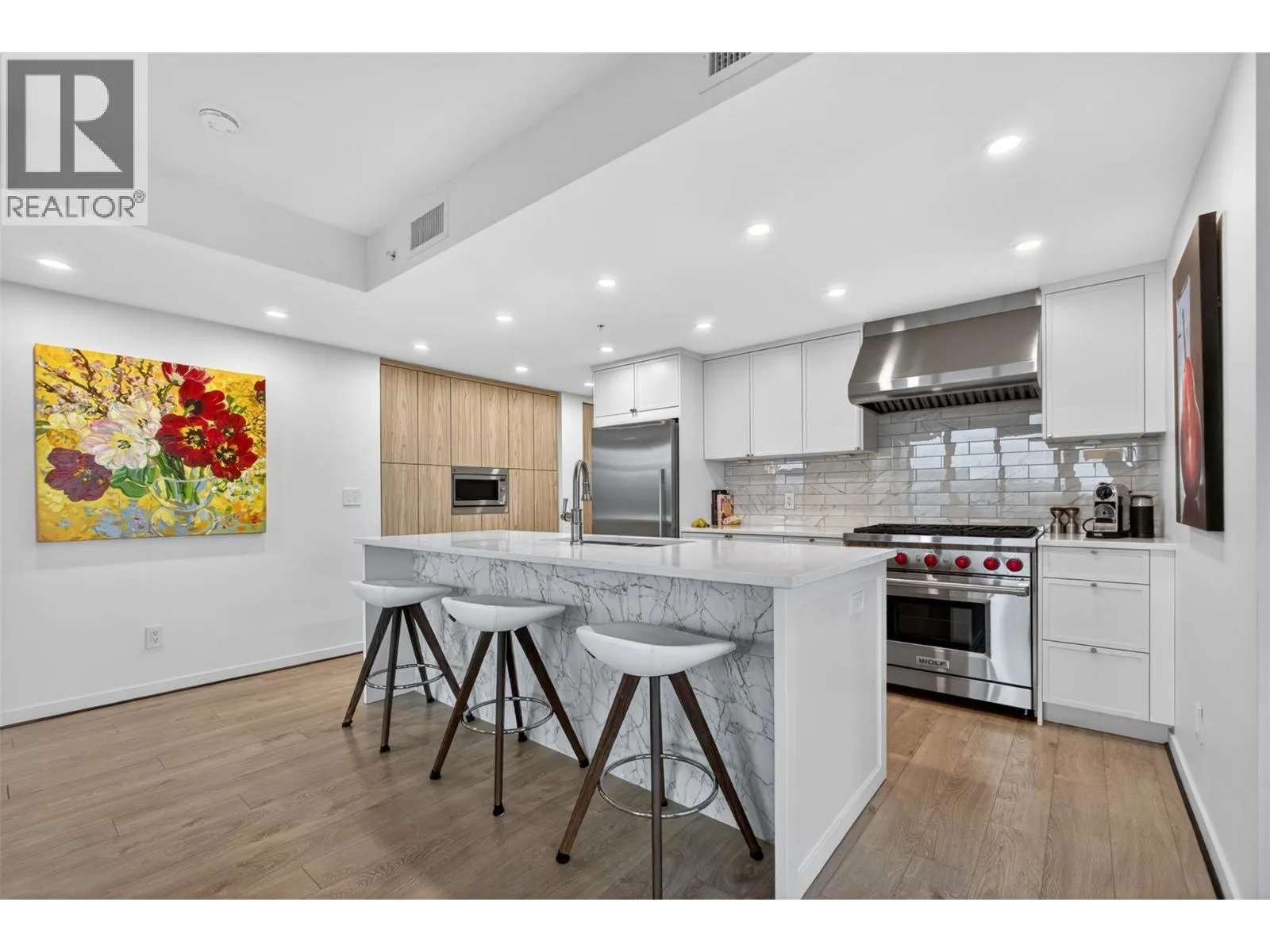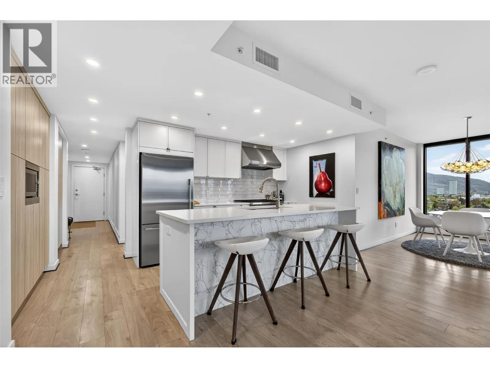 The most finished unit in the building, #1101 at Sopa Square is a rare opportunity to own a professionally upgraded residence- with TWO PARKING STALLS- in one of Kelowna’s most vibrant locations. With 3 bedrooms, 2 bathrooms, and 1,411 square feet, this home is perfectly suited for downsizers or professionals seeking refined, low-maintenance living. Inside, no detail has been overlooked.