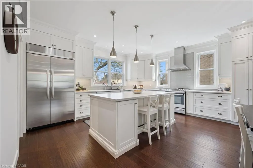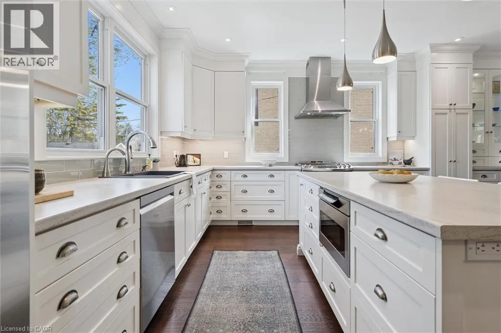 A one-of-a-kind opportunity in the heart of West Galt’s coveted Dickson Hill neighbourhood! Custom-built in 2015, this home offers nearly 4,000 sqft of thoughtfully designed living space. The bright open-concept main floor features 9 ft ceilings & hardwood floors. A wood-burning fireplace anchors the spacious living room that opens onto the dining area & kitchen. You’ll love the flow &