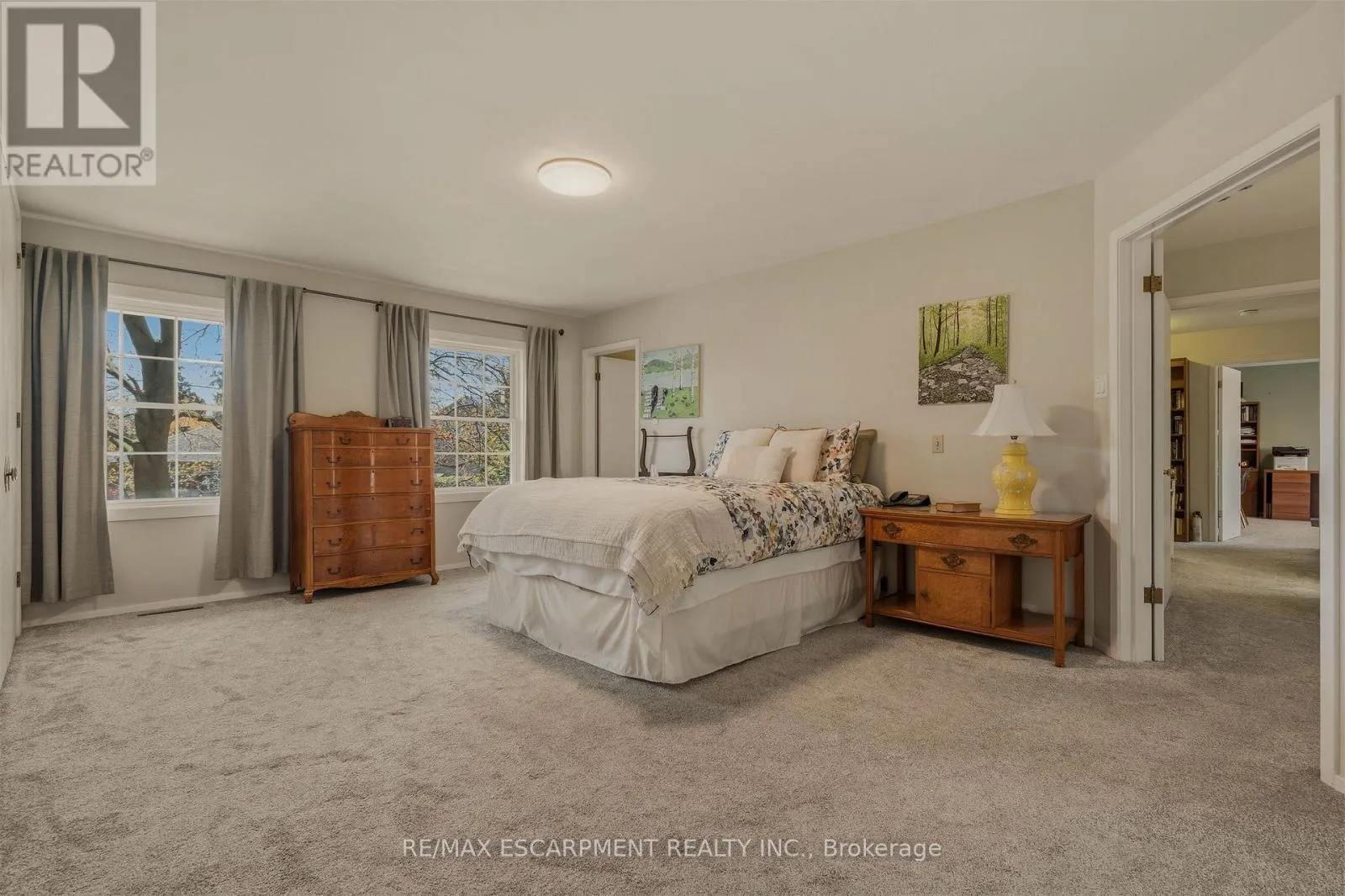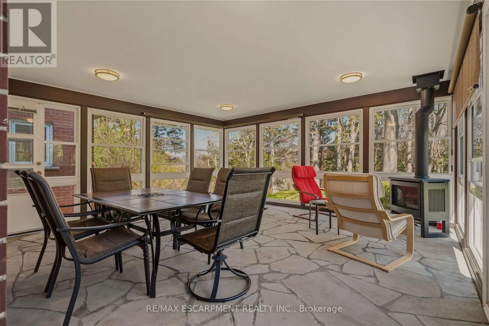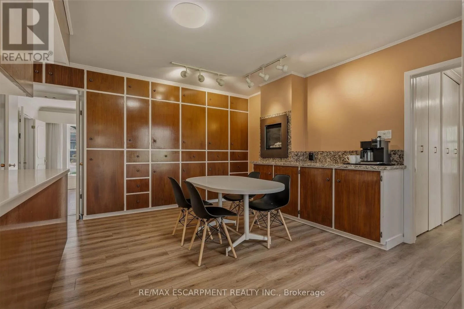 dinette, and walk-out to the sunroom. The sunroom, boasting gorgeous stone floor and fireplace, steps out to the backyard and also connects to the inviting family room-perfect as a den, library, or cozy retreat-alongside main floor laundry, a powder room, and inside entry to the double garage. Upstairs, a distinctive floorplan offers four generous bedrooms and two full bathrooms, highlighted by a remarkable primary suite complete with sitting room or nursery, 5 piece ensuite, an entire wall of custom closets with hidden TV space, and private access to an adjoining bedroom currently used as an office. The fully renovated lower level offers incredible flexibility as an in-law suite, teen haven or multi-generational living, featuring a stylish rec room with bar area, powder room, fifth bedroom with kitchenette and private ensuite, plus a media/gym space with walk-out to the backyard patio and hot tub. Outside, the endless rear yard feels like a private escape, where you can spend your time birdwatching or enjoying evenings around the firepit in Muskoka chairs overlooking the ravine. Ideally located near top schools, University Plaza, McMaster University, and convenient highway access, this is a rare opportunity to own a home unlike any other. (id:62650)