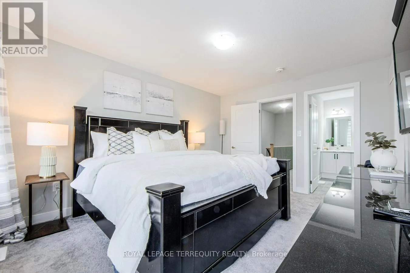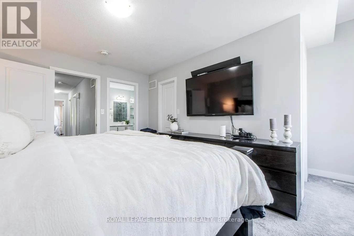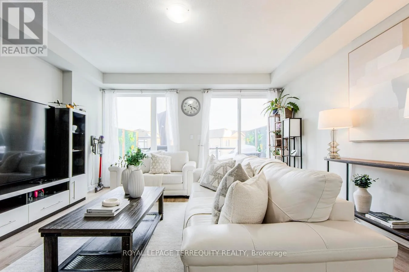 With 2,014 square feet of beautifully finished living space, this modern Freehold Townhome is move-in ready. The open-concept design boasts soaring 9′ smooth ceilings, pot lights, and upgraded wide-plank vinyl flooring. A stunning custom kitchen features a quartz center island with an extended breakfast bar, upgraded cabinetry, and high-end stainless steel appliances. A convenient pass-through servery seamlessly connects the kitchen