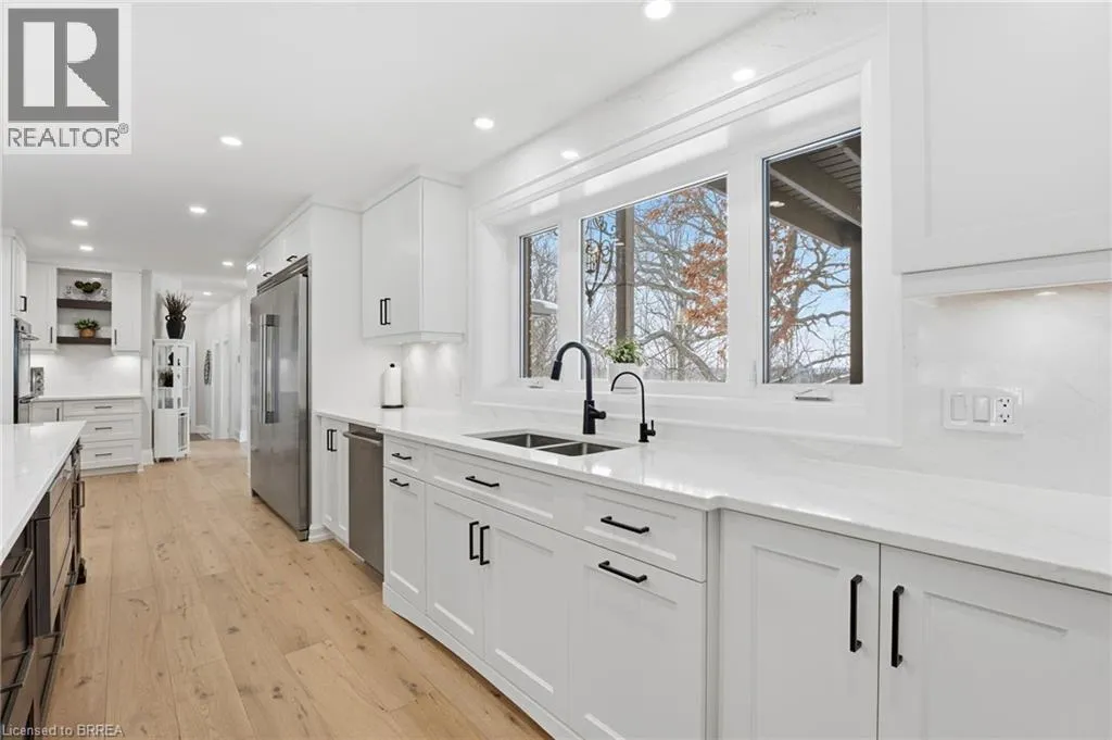 Welcome to 360 Robinson Road — a fully renovated executive home offering over 4,000 sq ft of living space on a 2.6-acre lot, backing onto the protected conservation lands of Apps Mill. This property blends quiet rural living with modern elegance and incredible outdoor amenities, just minutes from Brantford and Hwy 403. Step onto the striking timber front porch and