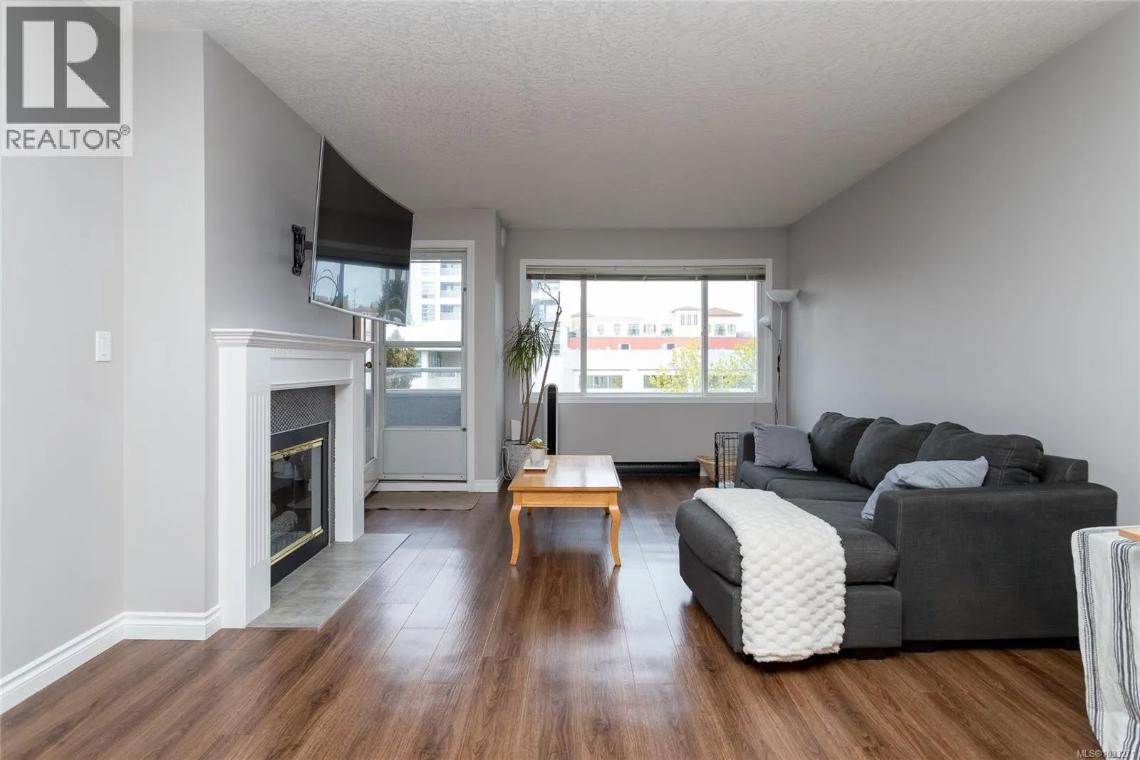 This bright top-floor home offers over 1,000 sq. ft. of stylish and functional living space, featuring upgraded laminate flooring and fresh paint throughout. Two skylights bring in natural light, and a generous balcony extends your living outdoors. The layout offers form and function, an open-concept living/dining with gas fireplace, spacious primary bedroom with a private ensuite, and second bedroom plus