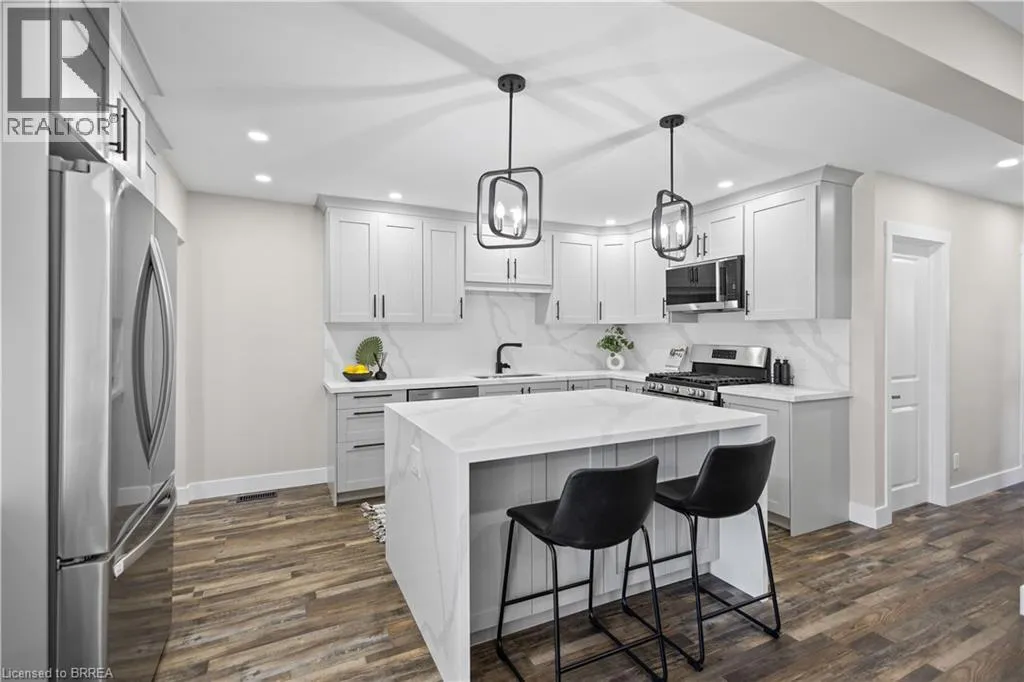Beautifully renovated from top to bottom, this carpet-free 5-bedroom, 2-bathroom bungalow is located in a desirable family-friendly neighbourhood. The stunning kitchen features a quartz island and stainless steel appliances, perfect for everyday living and entertaining. The fully finished basement offers additional living space, complete with a finished laundry room and a wet bar, with in-law potential supported by roughed-in plumbing