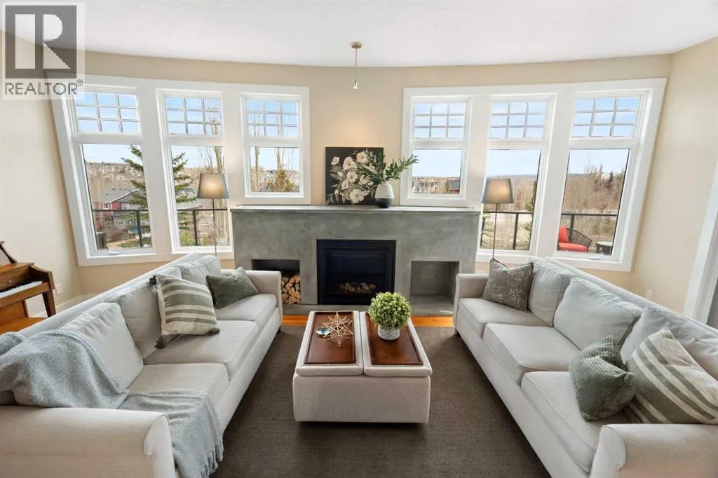main floor features an elegant formal dining space and sun filled office. The spacious kitchen is the heart of the home, featuring abundant maple cabinetry, stainless steel appliances, a central island, and a dedicated homework station. The adjoining family room is warm and inviting, anchored by a striking concrete mantled fireplace and expansive windows that showcase the beautifully landscaped backyard and sweeping city views.Upstairs, you’ll find three generous bedrooms, a full bath, and convenient upper-level laundry. The primary retreat offers a walk-in closet, built-in storage and a large ensuite. Central air conditioning ensures comfort throughout.The fully finished walk-out lower level is designed for entertaining, complete with a spacious games room, full bar, guest bedroom and full bath. A natural gas fireplace adds warmth and ambiance.Outdoor living is exceptional, with an expansive lower patio and a wraparound composite upper deck featuring glass railing and multiple natural gas hookups—perfect for a BBQ’s, fire tables, and patio heaters. The professionally landscaped yard includes low-maintenance perennial beds and backs onto a natural extension of 12 Mile Coulee, offering a serene wildlife corridor where deer and moose are frequent visitors.This home has been extensively upgraded for peace of mind, including a hail-resistant Euroshield roof with a substantial balance of a 50-year non-prorated warranty, replacement of both furnaces and hot water tanks, and a new garage door opener. Gemstone exterior lighting adds year-round curb appeal.Located less than a 5-minute walk to multiple parks an d a city-maintained outdoor winter rink, and close to schools and all amenities, this home blends nature, luxury, and convenience. As part of a well-funded and managed bare land condominium, residents benefit from immaculately maintained green spaces and snow removal after every snowfall.This is an extraordinary opportunity to own a beautifully maintained, thoughtfully upgraded home in one of Calgary’s most sought-after communities. (id:62650)