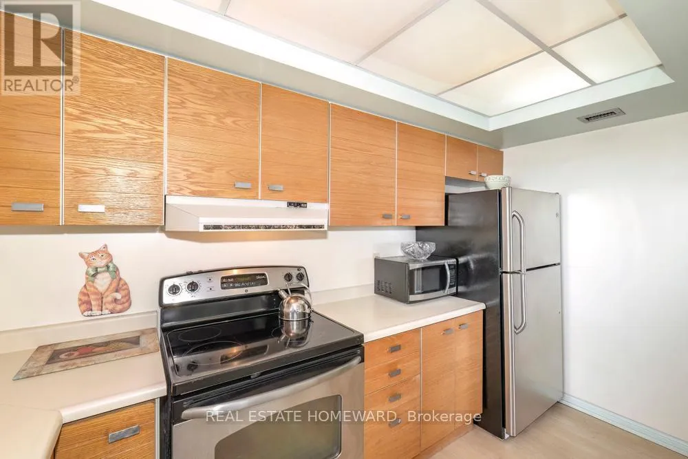 This corner suite with wrap-around balcony Is Perfectly Ready For You To Move Right In! The bathroom was recently renovated (with lots of light and storage), the appliances are stainless steel, the floors have been upgraded throughout, the balcony has very comforting outdoor flooring, the kitchen has lots of cupboard and counter space, the breakfast room is a totally
