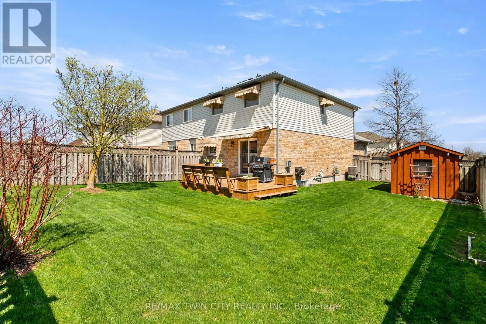 schools, parks, walking trails and shopping. It’s a desirable setting that makes sense for families and commuters alike. 4: CORNER LOT: What immediately helps this home stand out is the lot itself. Being on a corner gives you more openness around the property, more breathing room from neighbours, and a surprisingly large fenced backyard. 3: MAIN FLOOR: The carpet-free main floor flows from the foyer to the backyard walkout, with ceramic tile and engineered walnut hardwood flooring, and a gas fireplace anchoring the space. The eat-in kitchen is set up for everyday use, with plenty of prep space, room for a dinette, and an easy connection to the rest of the main floor. And for a lot of buyers, this is the part that matters most: many of the bigger-ticket items have already been handled – including the roof (2019), furnace (2017), AC (2017), windows (2016 – lifetime warranty), bathroom (2025), and even the water softener (2026). 2: THE BACKYARD: Out back is where the corner lot really starts to pay off. There’s a fully fenced yard with extra side yard space that makes this feel more open and usable than most homes. The deck was rebuilt in 2024 and includes built-in seating and a retractable awning. Add in mature greenery and a charming oversized shed, and the whole space feels settled, private, and ready for summer. 1: BEDROOMS & BATHROOM: Upstairs, you’ll find three bedrooms and a four-piece bathroom with privilege access from the primary. Corner lot space, a practical layout, and a backyard that gives you more than you’d expect – that’s what makes this home worth a closer look. (id:62650)
