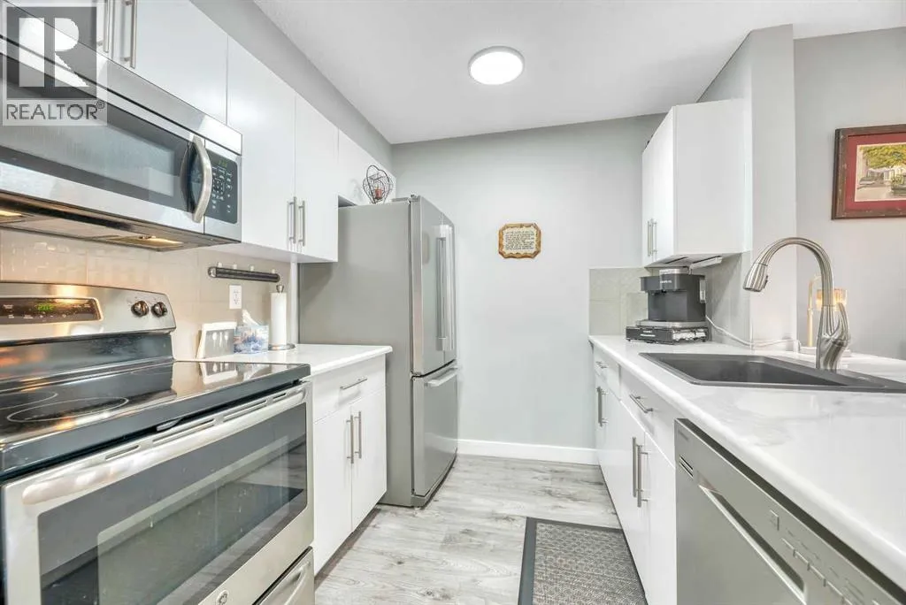 Ground floor unit backing onto Greenspace! Easy access to this well and updated maintained bedroom condo. Open floor plan. Gleaming white kitchen with stainless steel appliances and breakfast bar open to bright and open living room with access to ground floor patio. 2 spacious sized bedrooms. The primary has a walkthrough closet and 3 piece ensuite. Additional