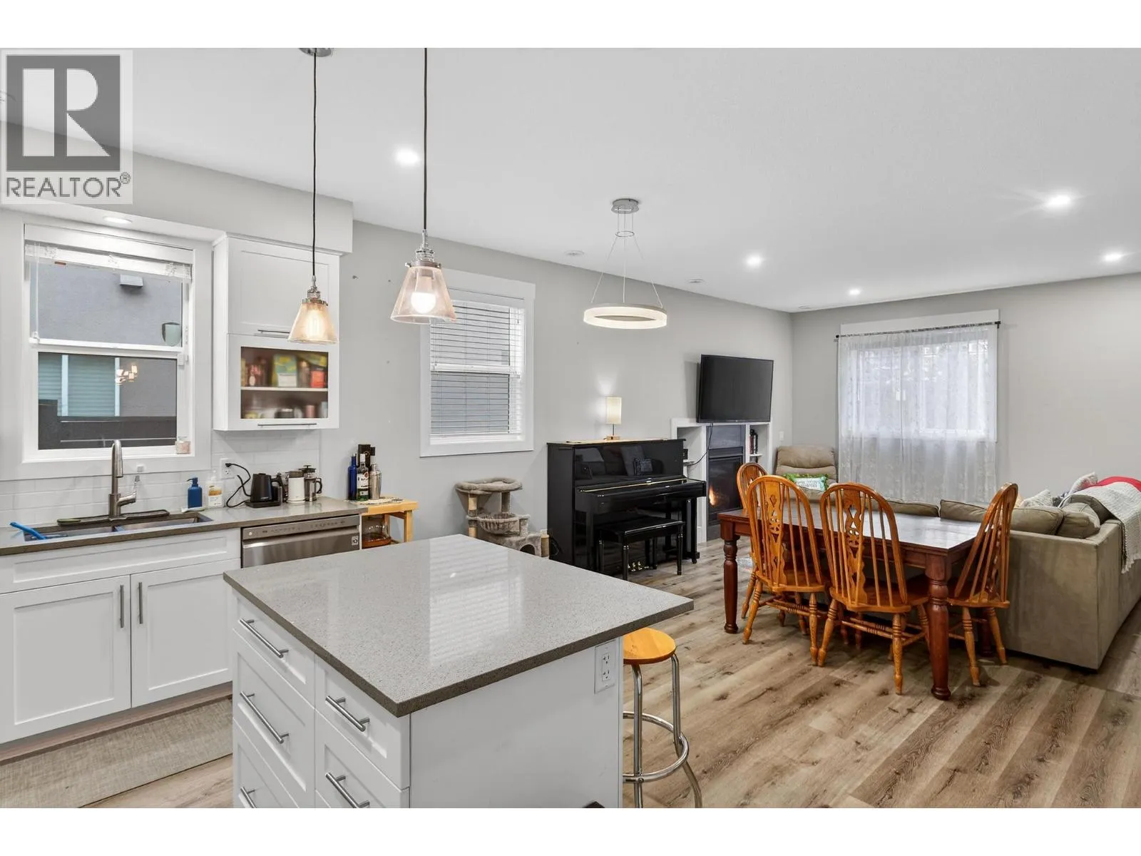 Discover refined urban living in this front unit in the heart of Kelowna South, one of Kelowna’s most desirable neighbourhoods. Built by Maraine Construction, this thoughtfully designed home offers quality craftsmanship, NO STRATA FEES, and an unbeatable central location steps to bike paths and daily amenities. The bright, modern kitchen features quartz countertops, stainless steel appliances, and ample cabinetry, all