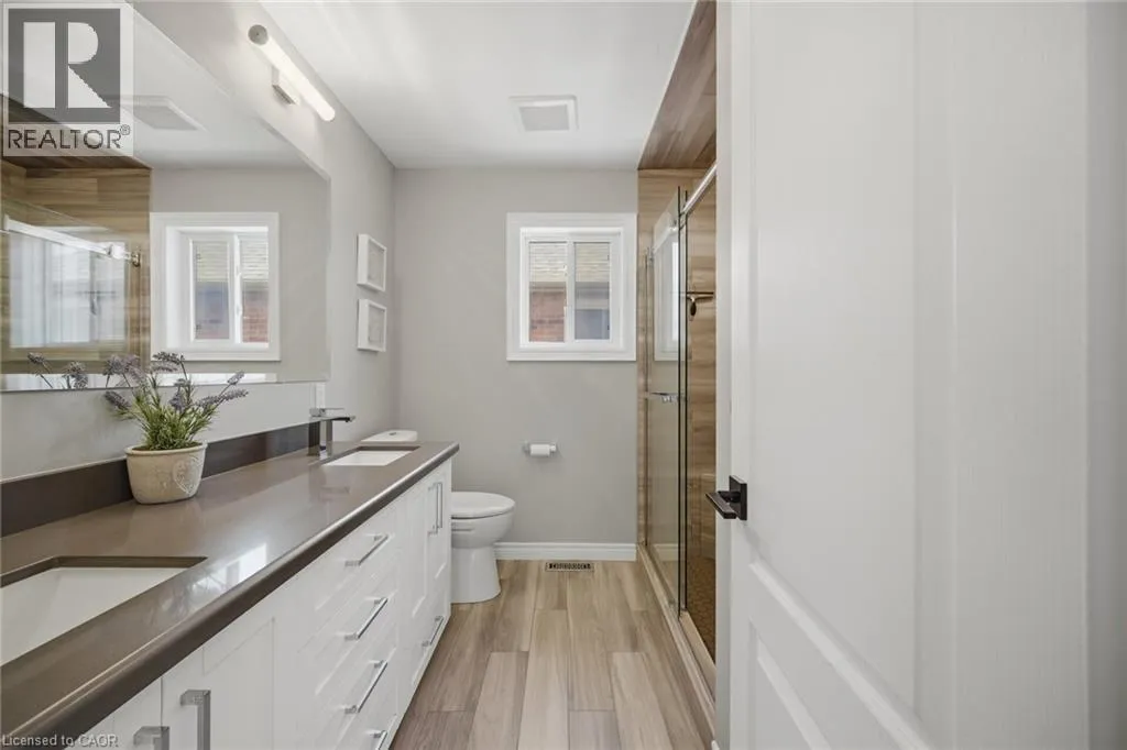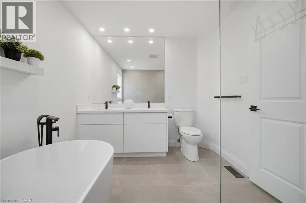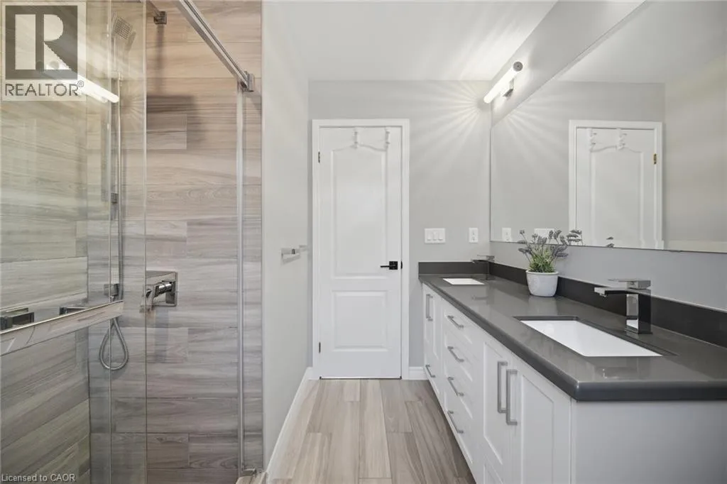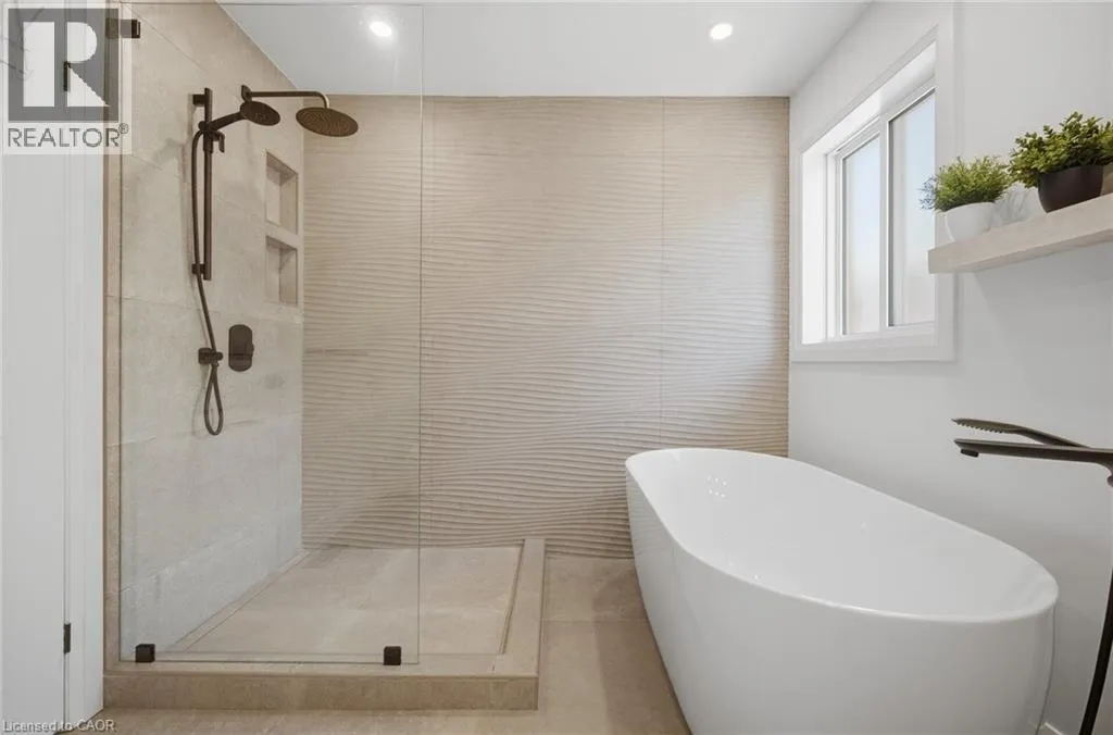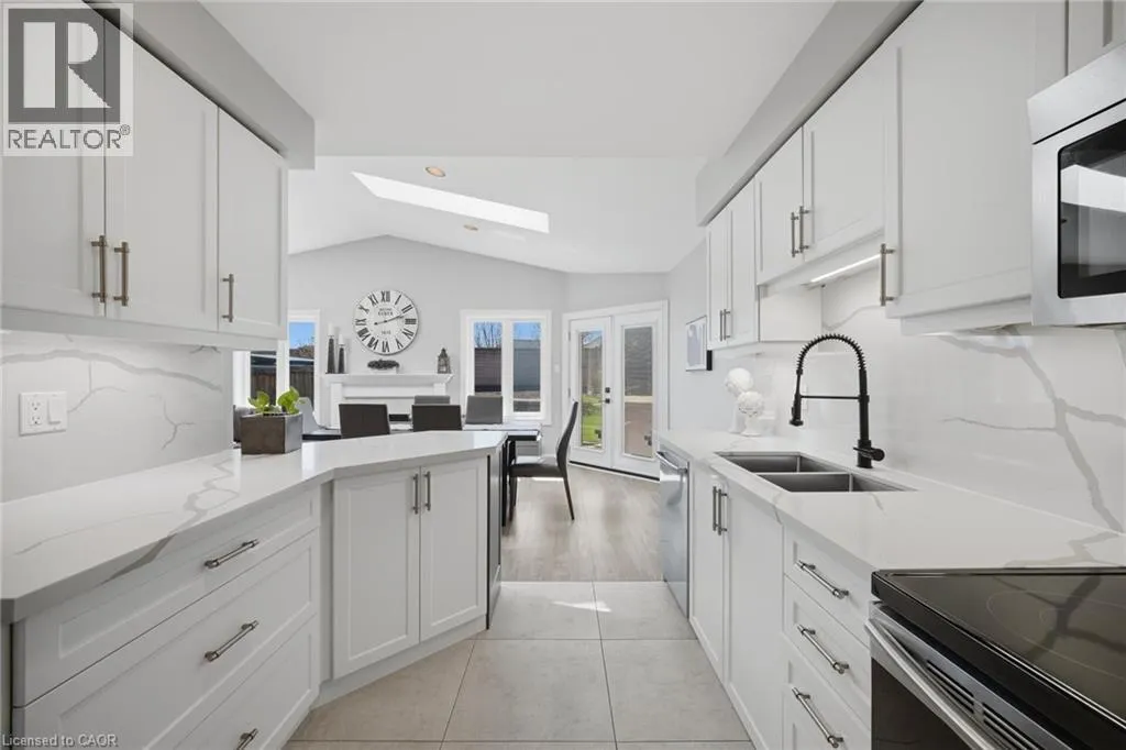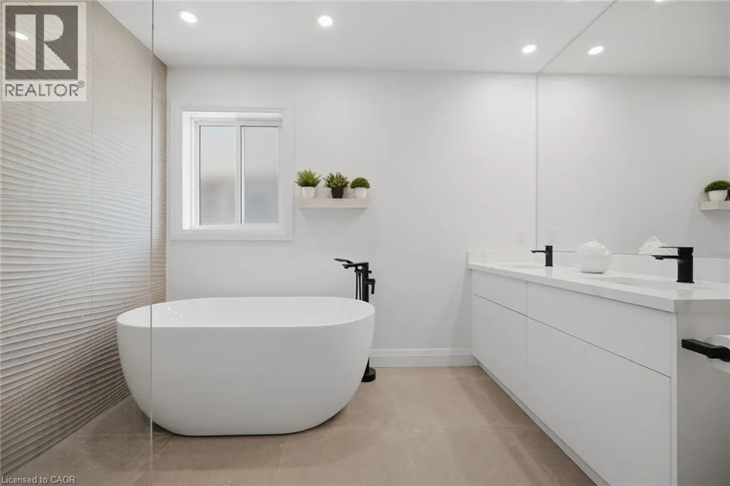 and dog park just minutes away! INSIDE THIS HOME, the home has been thoughtfully updated with modern finishes throughout. The stunning chef’s kitchen is a true showpiece, featuring K Stone quartz countertops with a striking book-matched backsplash, stylish shaker cabinetry, under-mount lighting, and stainless steel appliances. It overlooks the inviting family room with a gas fireplace, feature wall, and walkout to a beautifully landscaped backyard complete with a hot tub-perfect for relaxing or entertaining.Upstairs, the spacious primary suite offers a cozy gas fireplace and a luxurious ensuite with double sinks, o/s glass w/i shower, freestanding tub, and a modern feature wall. Upper main bathroom with a custom-built shower, b/i niche, and double sinks. A renovated staircase with modern square posts, handrails, and iron spindles adds to the home’s refined feel, while smooth ceilings throughout enhance the contemporary look.Fully finished basement expands your living space with optional office or bedroom, a 3-piece bathroom, gas fireplace great room-ideal for entertaining, a home office, or workout area all combined. Professionally landscaped front and back yards feature armour stone accents, front step underlighting, and a flagstone walkway for exceptional curb appeal. Other updates include Furnace, A/C, Ecobee thermostat,Fence, Front door and some windows also 2021. Truly a Turnkey home combining style, comfort, and lifestyle-inside and out that will not disappoint! This is THE ONE>>>WELCOME HOME! (id:62650)