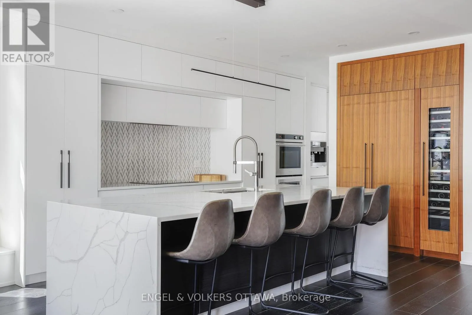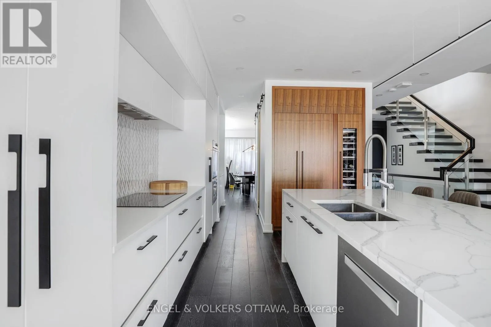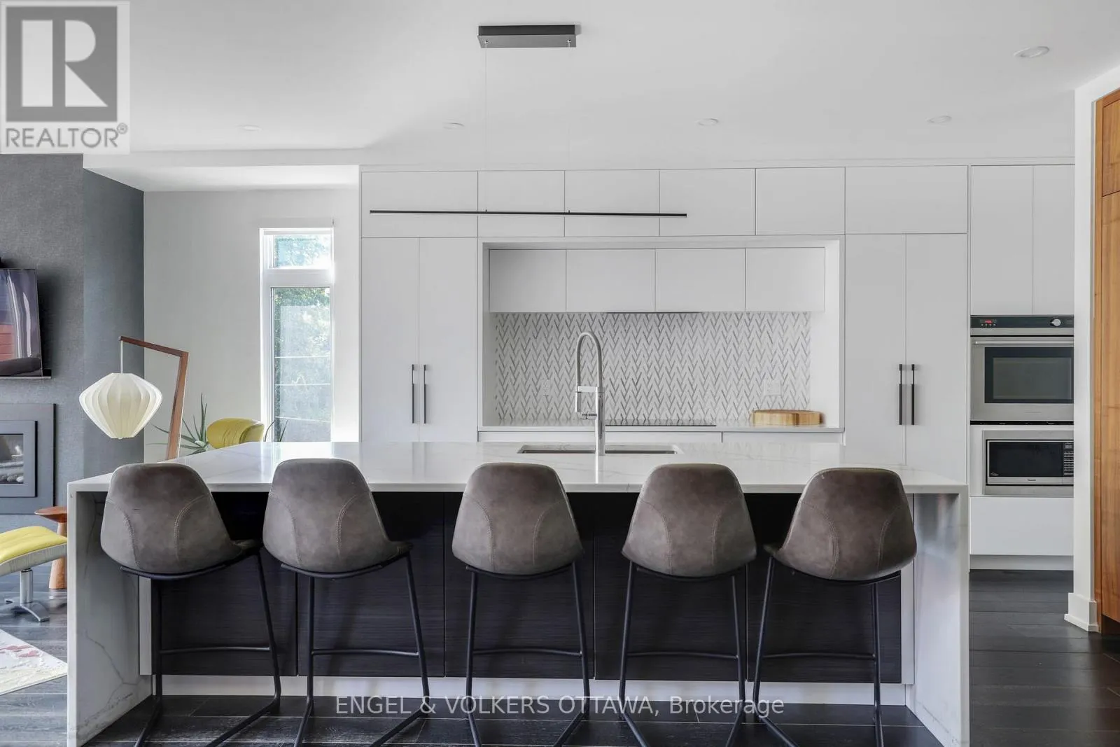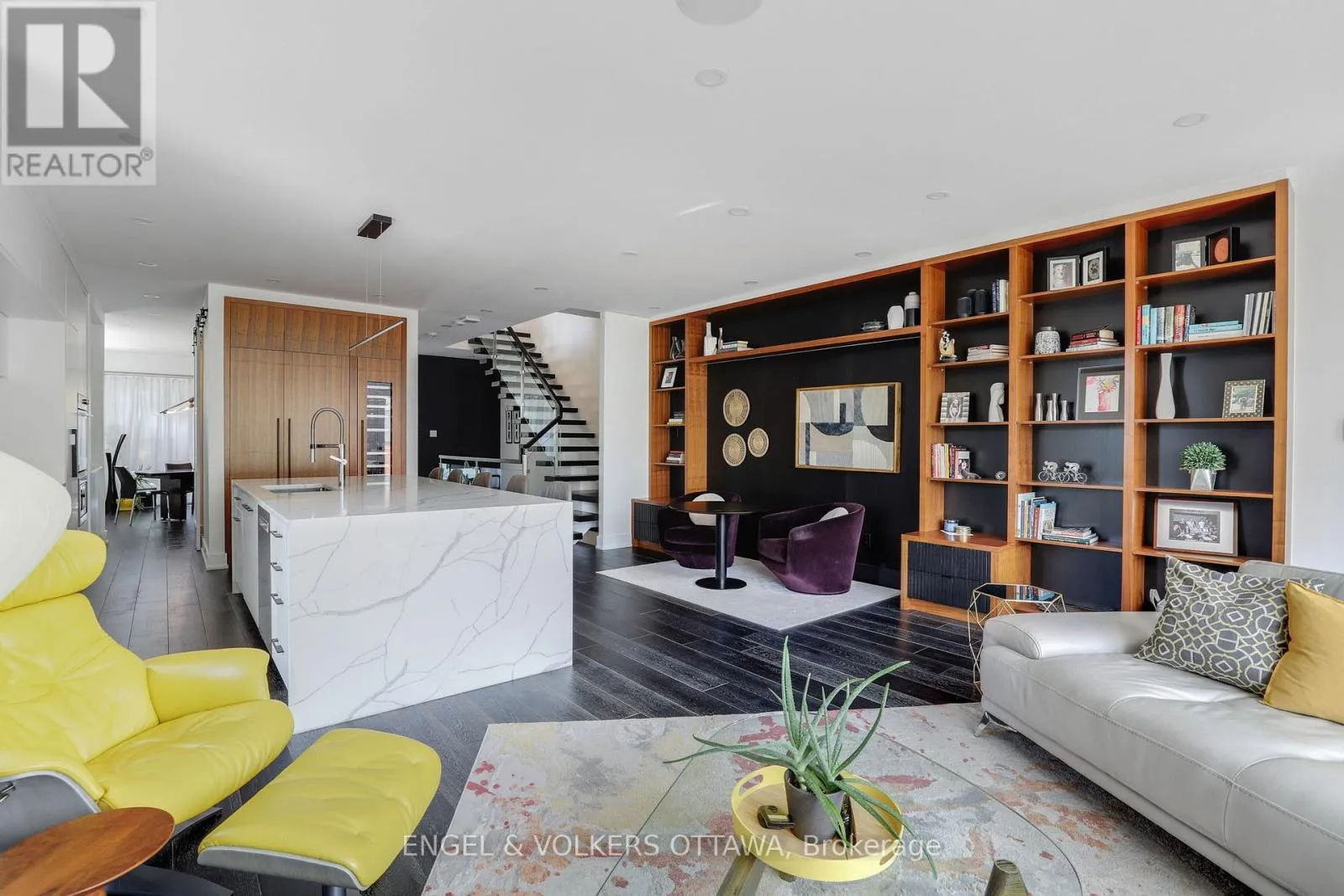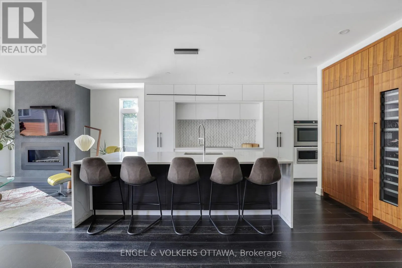 Set in one of Westboro’s most desirable pockets, this custom-designed residence by 2H Design offers over 3,000 sqft. of elevated living paired with stunning Ottawa River sunsets. Quietly positioned yet moments from everything, the home delivers a seamless balance of modern architecture, thoughtful layout, and exceptional outdoor spaces.The entry makes an immediate impression with a bold feature wall and a