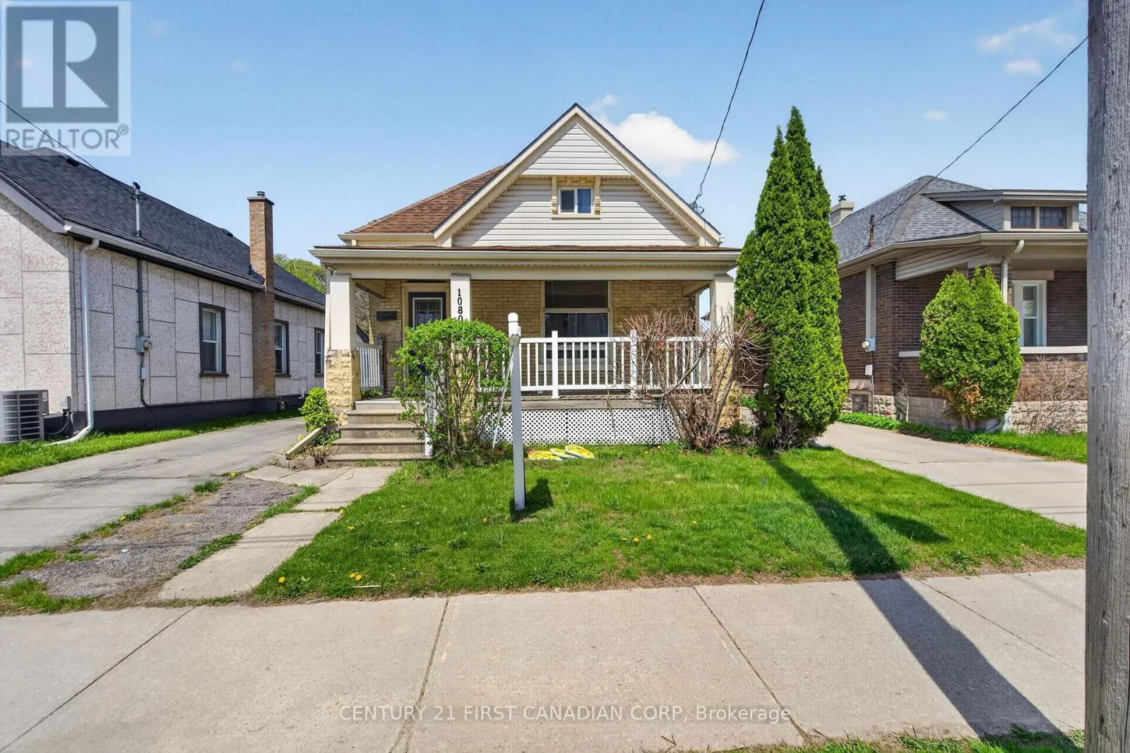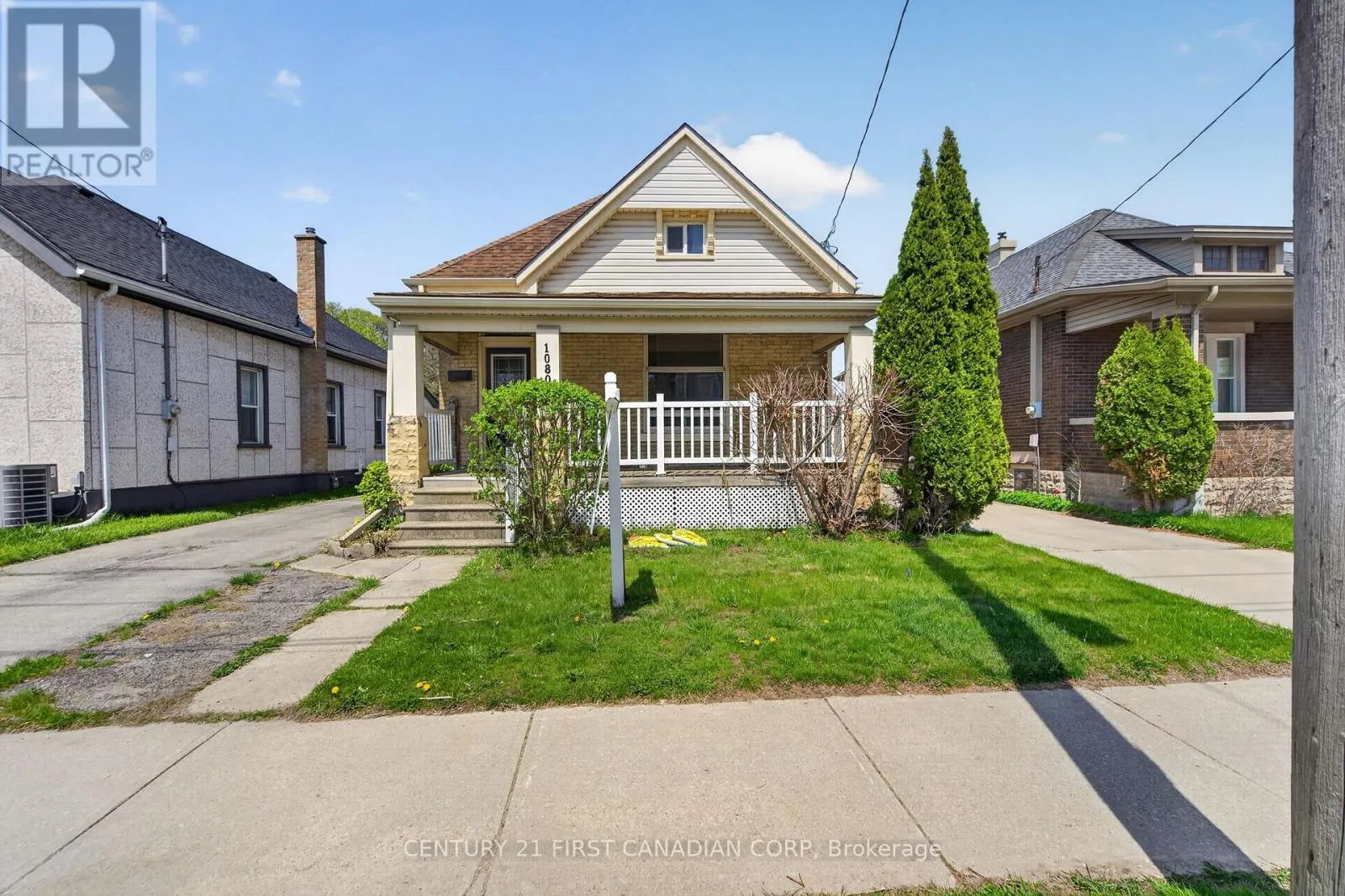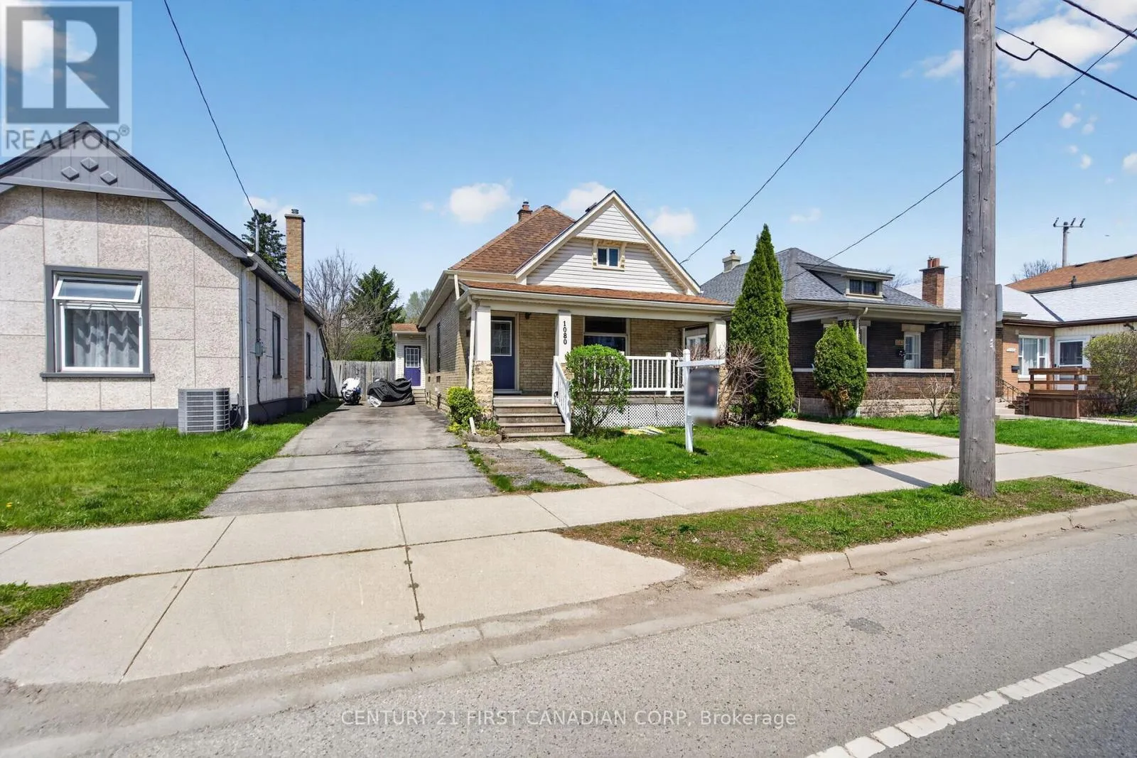 Step into timeless charm with this beautiful 1,000 sq ft yellow brick bungalow at 1080 Trafalgar Street. From the moment you arrive, the classic covered front porch sets a warm, welcoming tone – perfect for morning coffee or winding down at night. Inside, you’ll find rich hardwood flooring and soaring 10-foot ceilings that create an airy, spacious feel. Large, newer