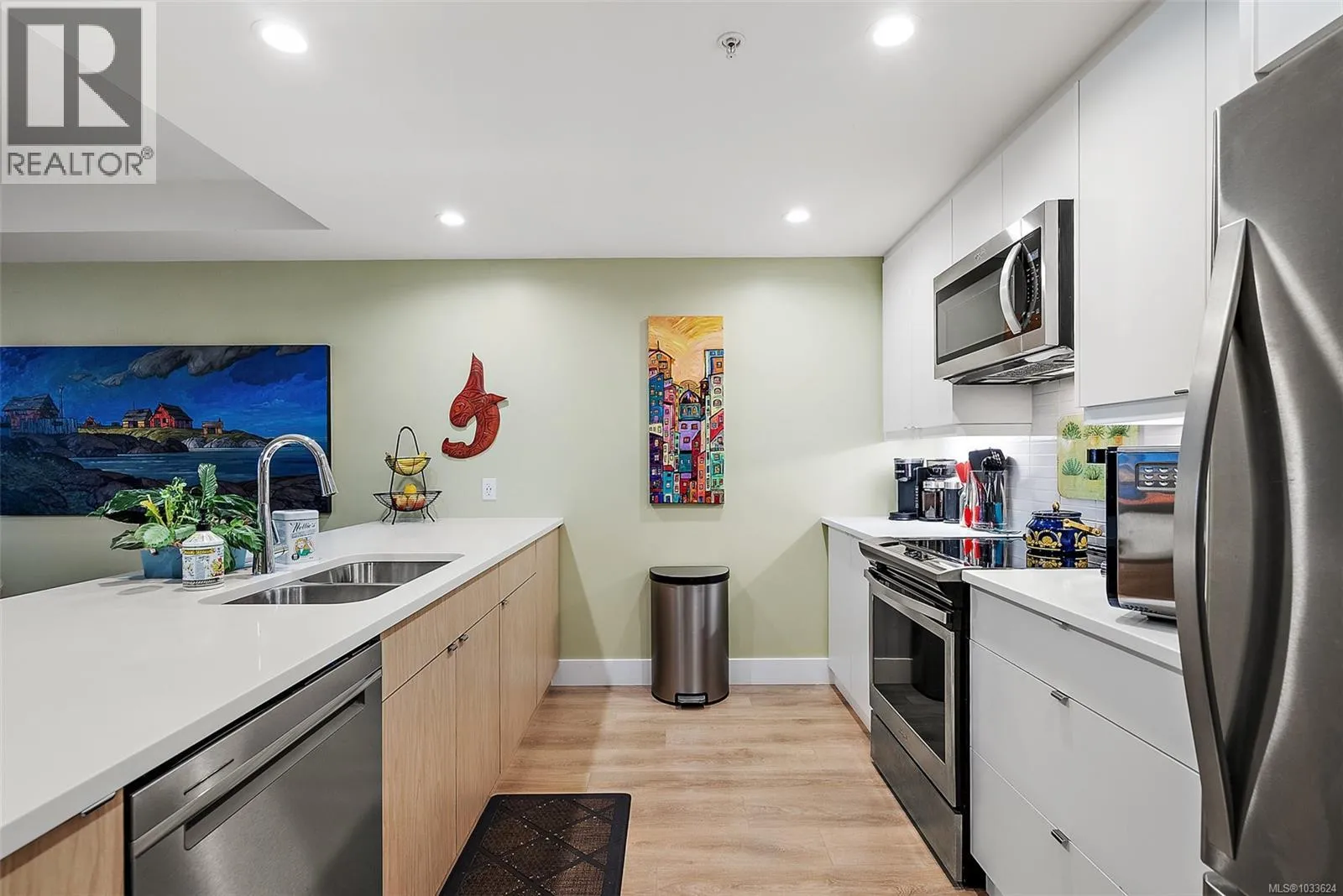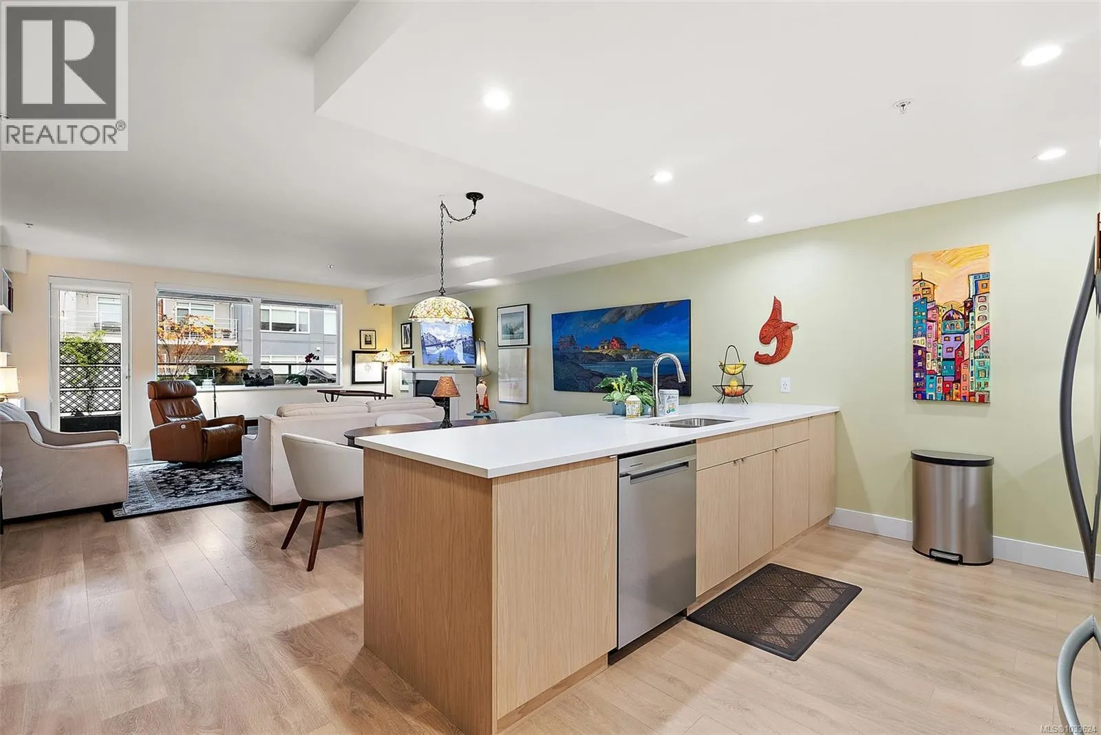 This unit has one of the best layouts in the building, is incredibly quiet and is well-shielded from outdoor temperature and weather extremes. The large entryway opens on an executive bungalow-style apartment with 1310 sq ft living space featuring three bedrooms, two bathrooms, and large open concept kitchen, dining and living area. Huge 359 sq ft covered deck provides year-round