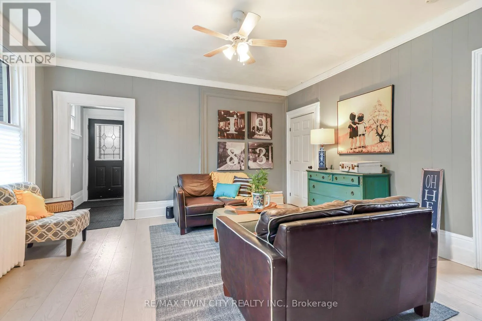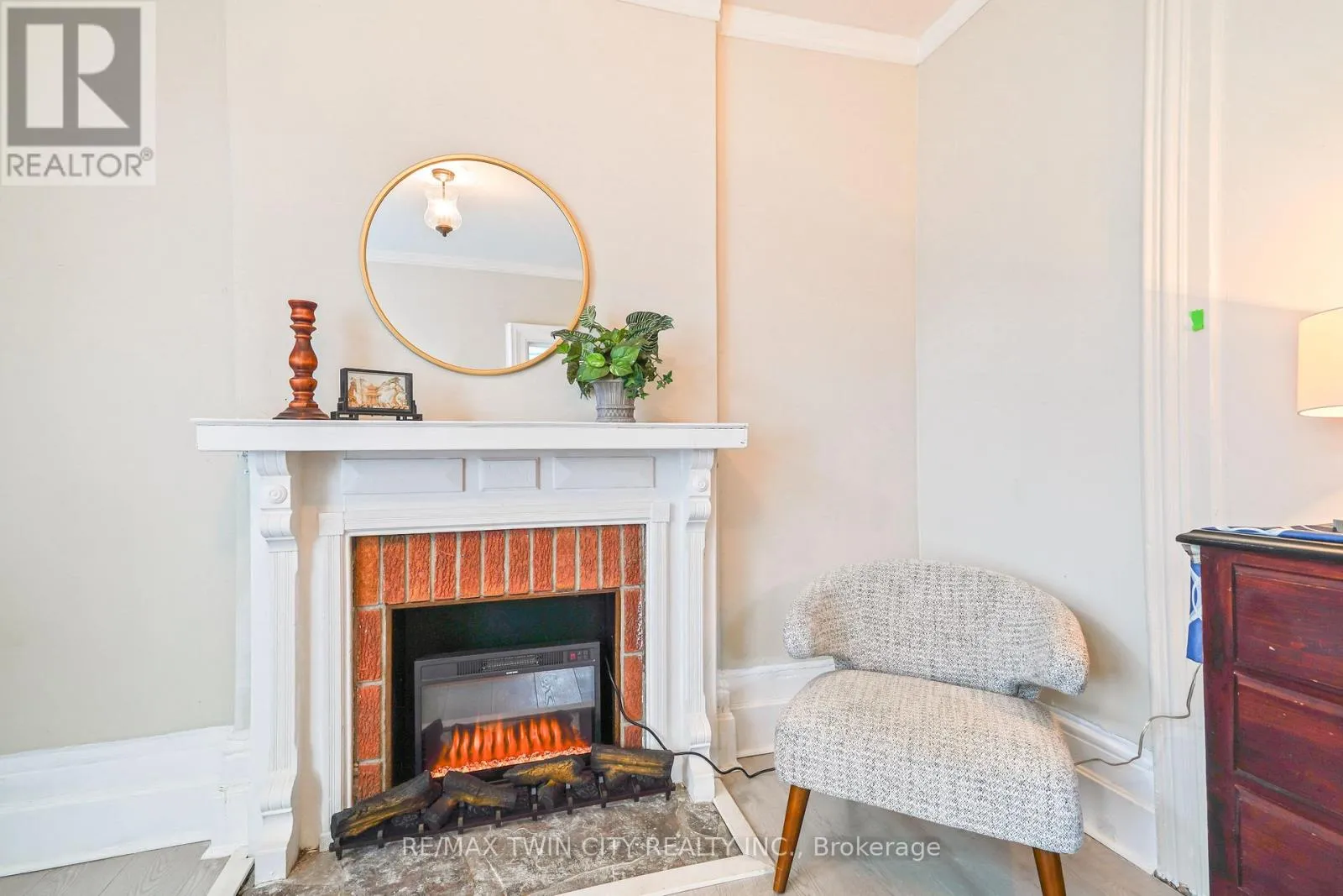 a bright and inviting living room with high ceilings and crown moulding, creating a warm and welcoming space to relax or entertain. A main floor bedroom with a decorative fireplace adds character and versatility-perfect for guests, a home office, or rental use. The eat-in kitchen provides ample space for everyday living, while the adjoining den offers additional room for entertaining or study space. Upstairs, you’ll find generously sized bedrooms filled with natural light, ideal for families or shared accommodations. Recent updates including fresh paint and easy-care laminate flooring throughout make this home move-in ready while still offering room to add your own personal touch. Step outside to enjoy a private backyard with a covered porch-perfect for morning coffee or quiet evenings. The property also includes convenient driveway parking. Situated on a transit route and just steps to parks, schools, churches, shopping, and the downtown core, this location is unbeatable for accessibility and lifestyle. Whether you’re looking to get into the market or expand your investment portfolio, this property offers incredible value, space, and potential in a prime location. Don’t miss this opportunity! Book a viewing for this lovely home! (id:62650)