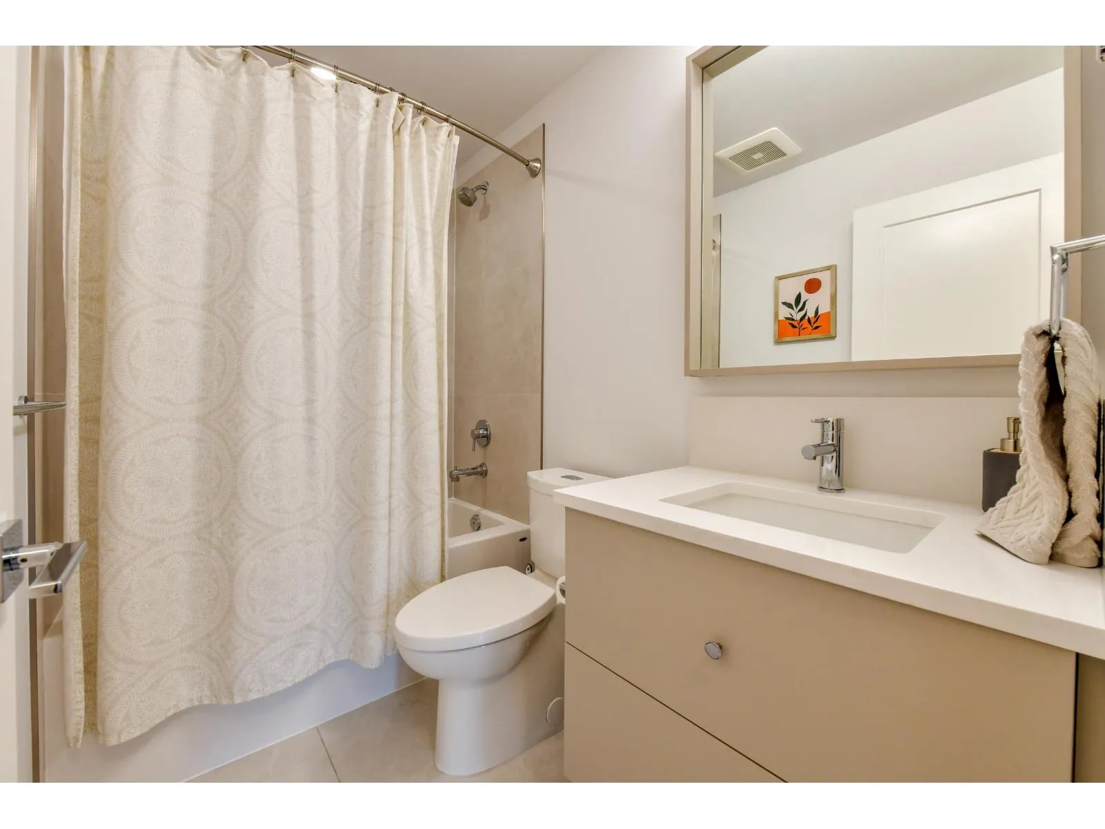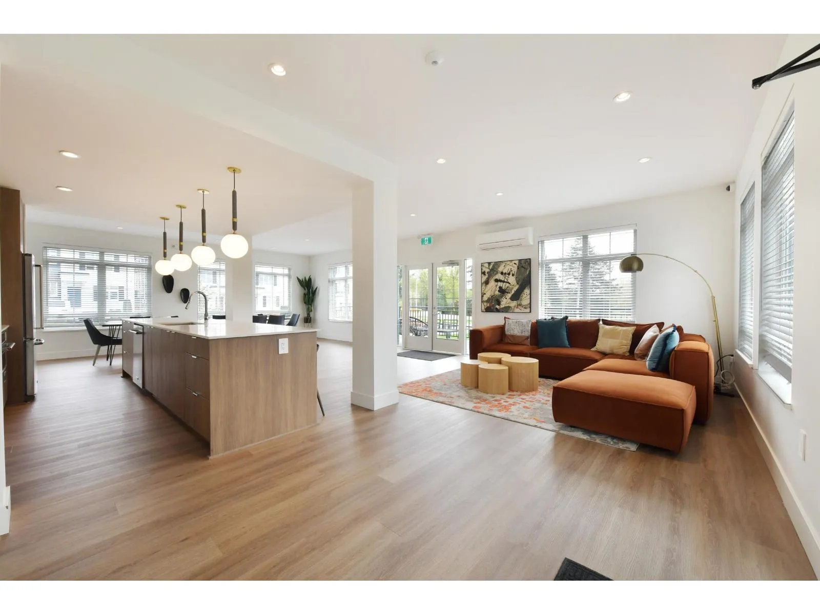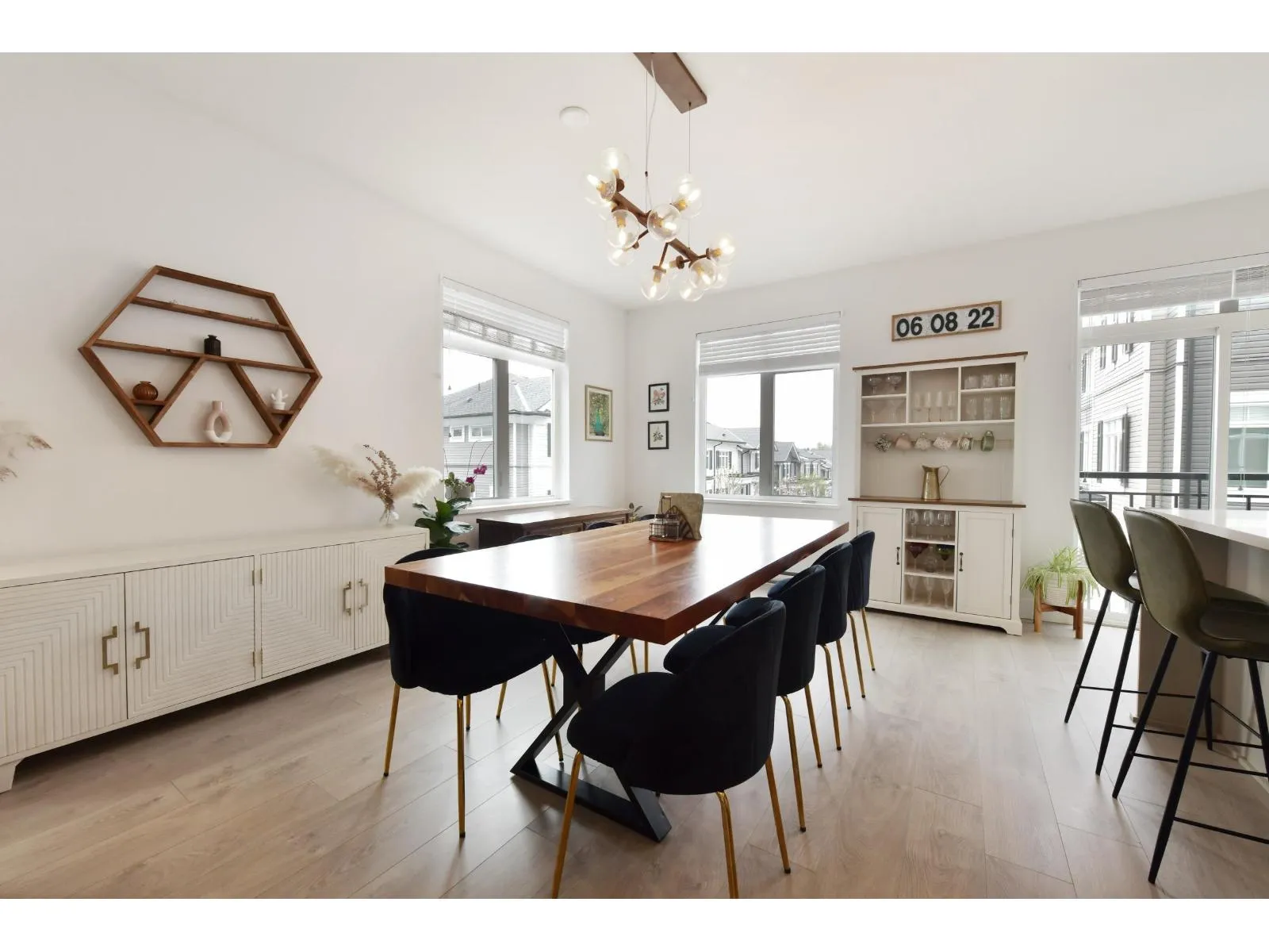 This 1,403 square foot Corner unit at The Boroughs offers an exceptional floorplan. The kitchen is situated along one side, with a large island that opens to the dining & living rooms; perfect for hosting friends & family, especially with the main floor powder-room. Off the living room is a spacious deck that overlooks a forested greenbelt & multi-use pathway,