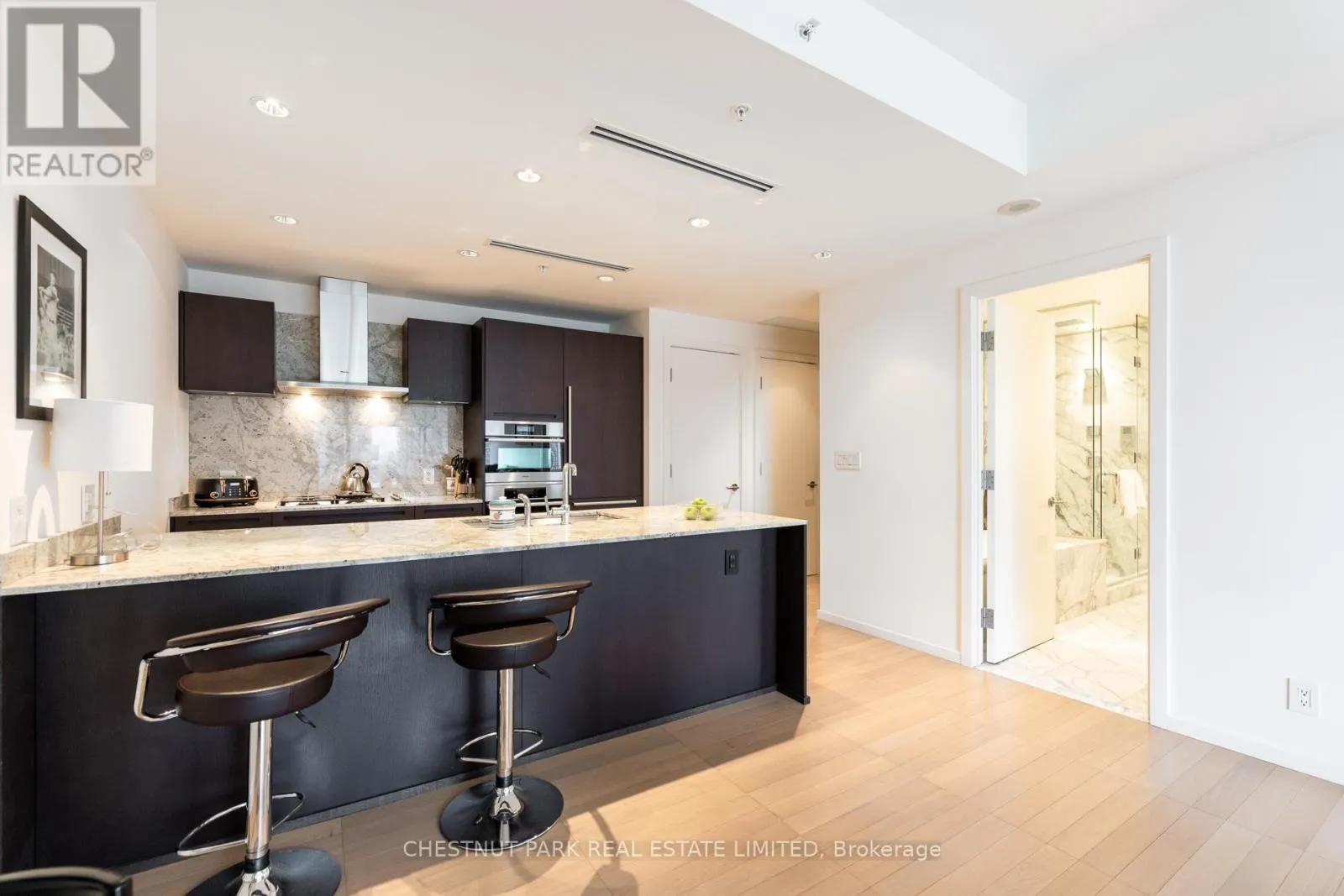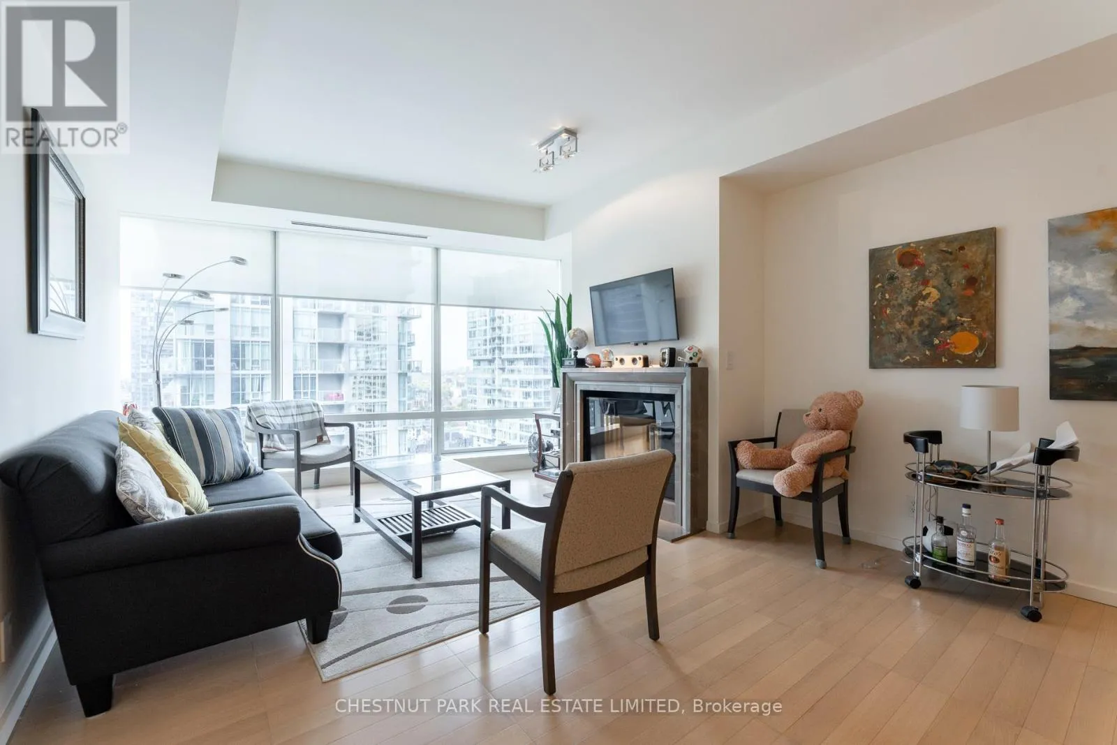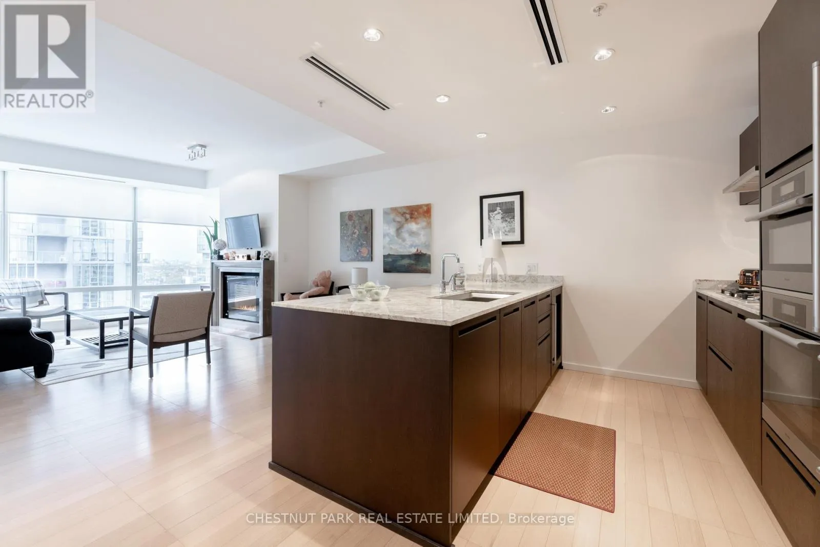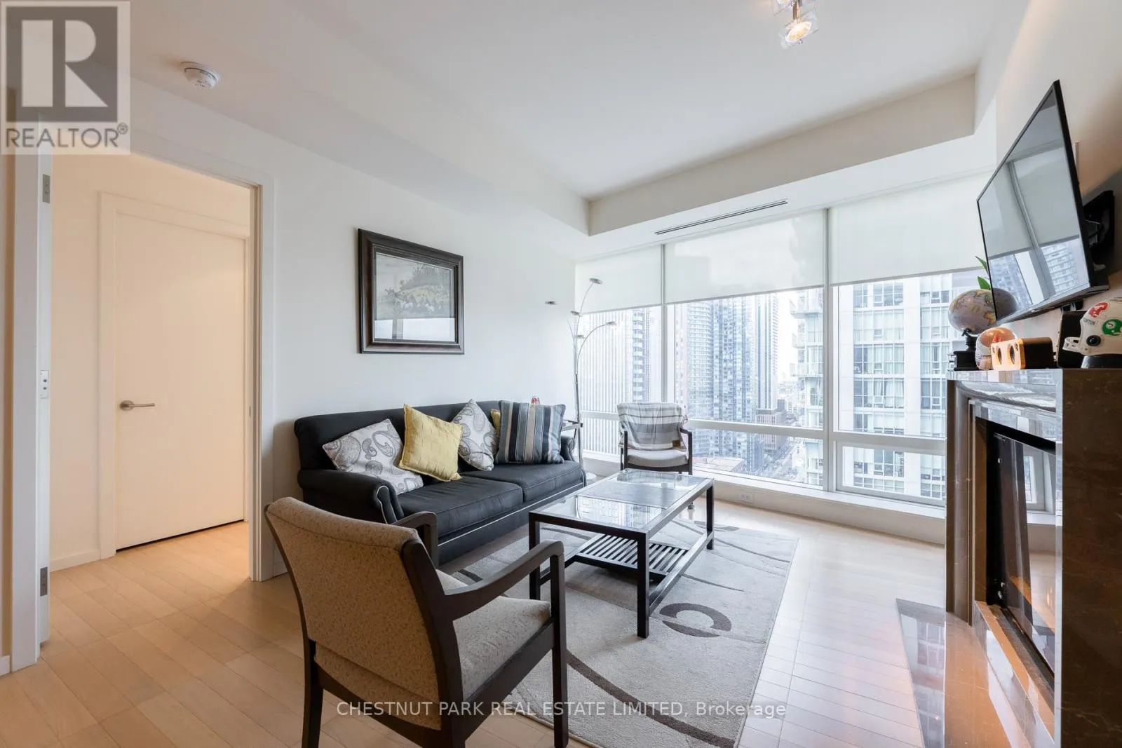 Welcome to Living Shangri-La Toronto, one of downtown Toronto’s premier luxury addresses. This well-appointed one-bedroom suite offers approximately 850+ sq. ft. of functional living space with floor-to-ceiling windows and city views. The open-concept layout features a Boffi-designed kitchen with integrated Miele and Sub-Zero appliances, new low-maintenance plank flooring, upgraded lighting, automated blinds, and in-suite laundry. The spacious bedroom includes excellent