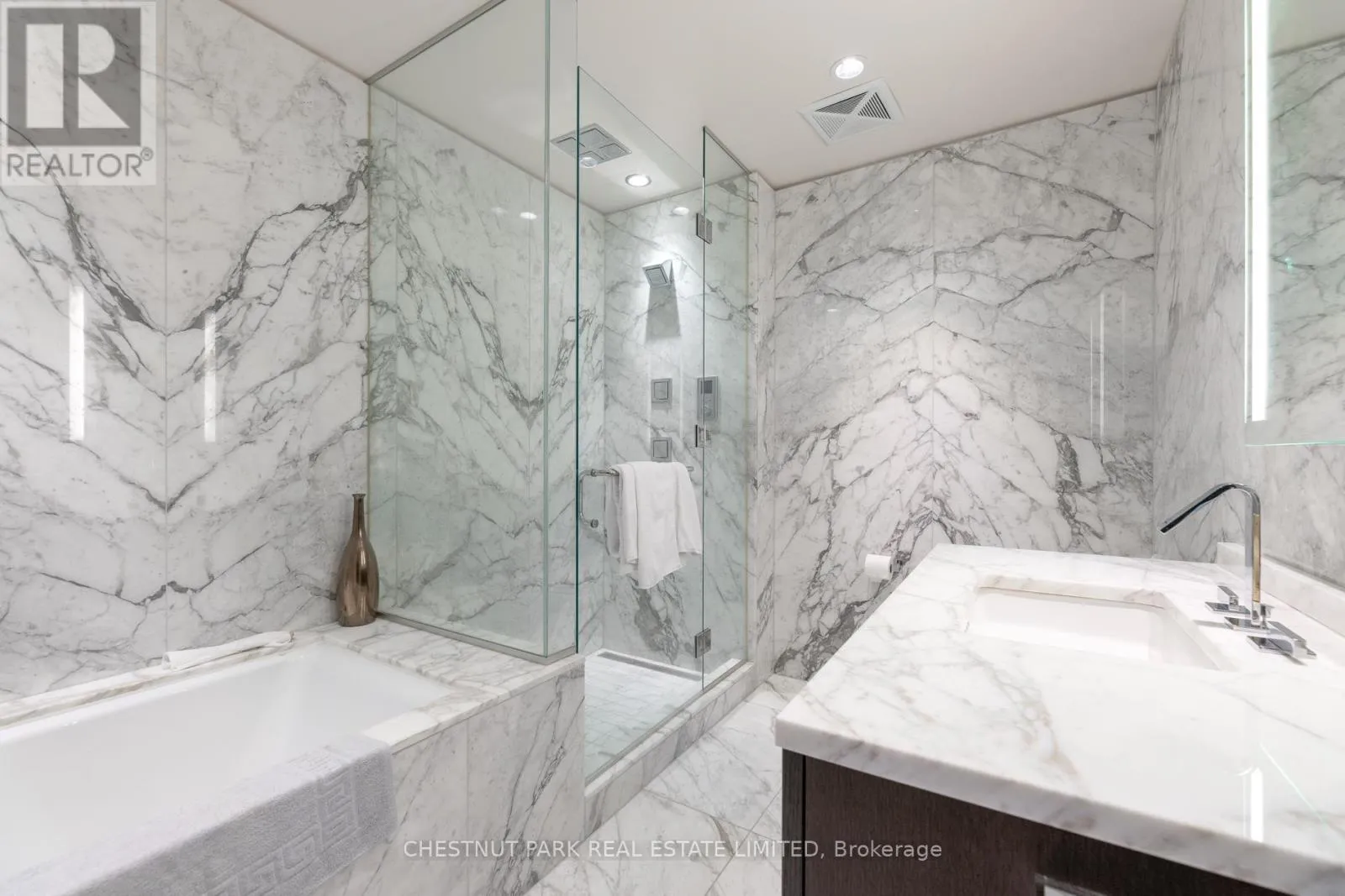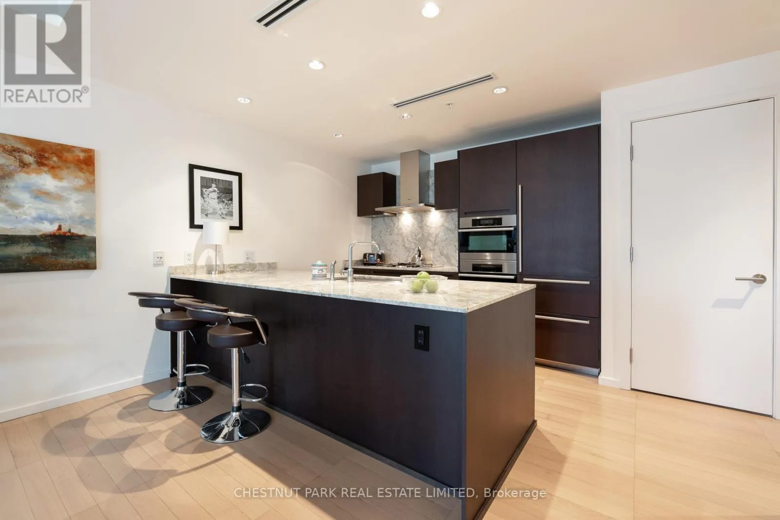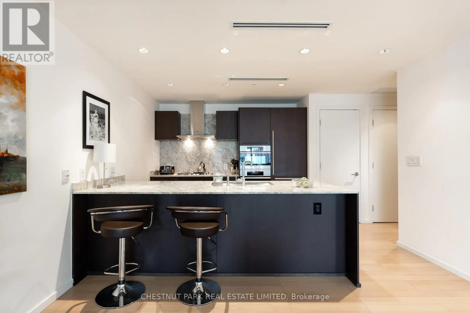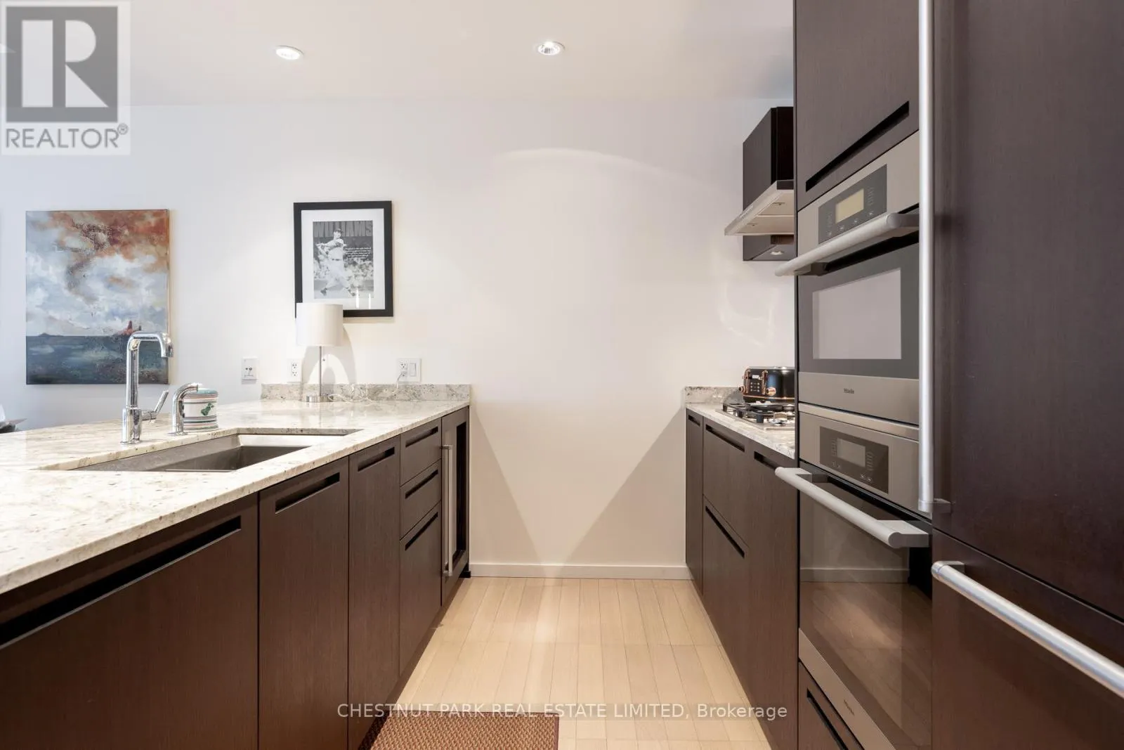 Welcome to Living Shangri-La Toronto, one of downtown Toronto’s premier luxury addresses. This well-appointed one-bedroom suite offers approximately 850+ sq. ft. of functional living space with floor-to-ceiling windows and city views. The open-concept layout features a Boffi-designed kitchen with integrated Miele and Sub-Zero appliances, new low-maintenance plank flooring, upgraded lighting, automated blinds, and in-suite laundry. The spacious bedroom includes excellent