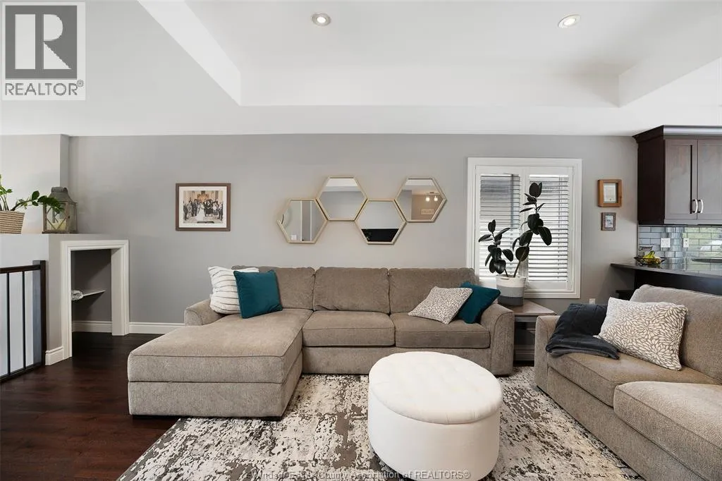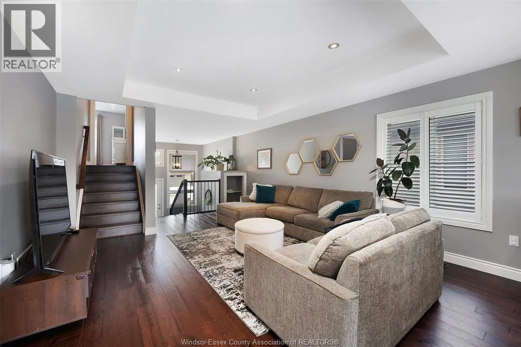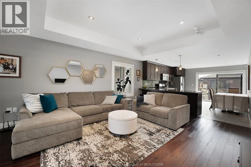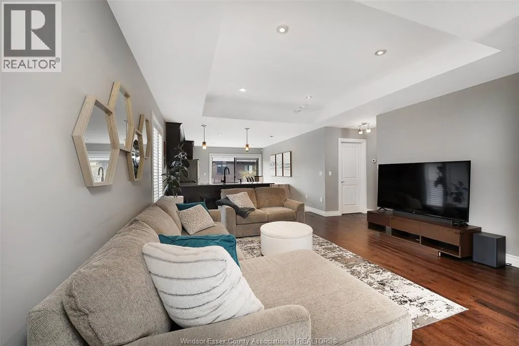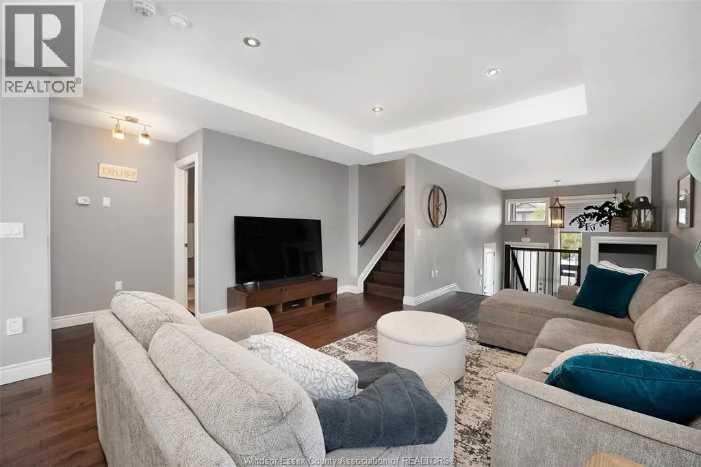 Luxury end-unit townhome elegantly finished with brick and James Hardie siding. This beautifully appointed 1,260 sq ft home offers upscale finishes throughout, starting with a spacious porcelain-tiled foyer featuring large windows and a glass front door. The main level showcases rich engineered hardwood, tray ceilings, crown moulding, and a stylish kitchen with quartz countertops, under-cabinet lighting, and patio doors leading