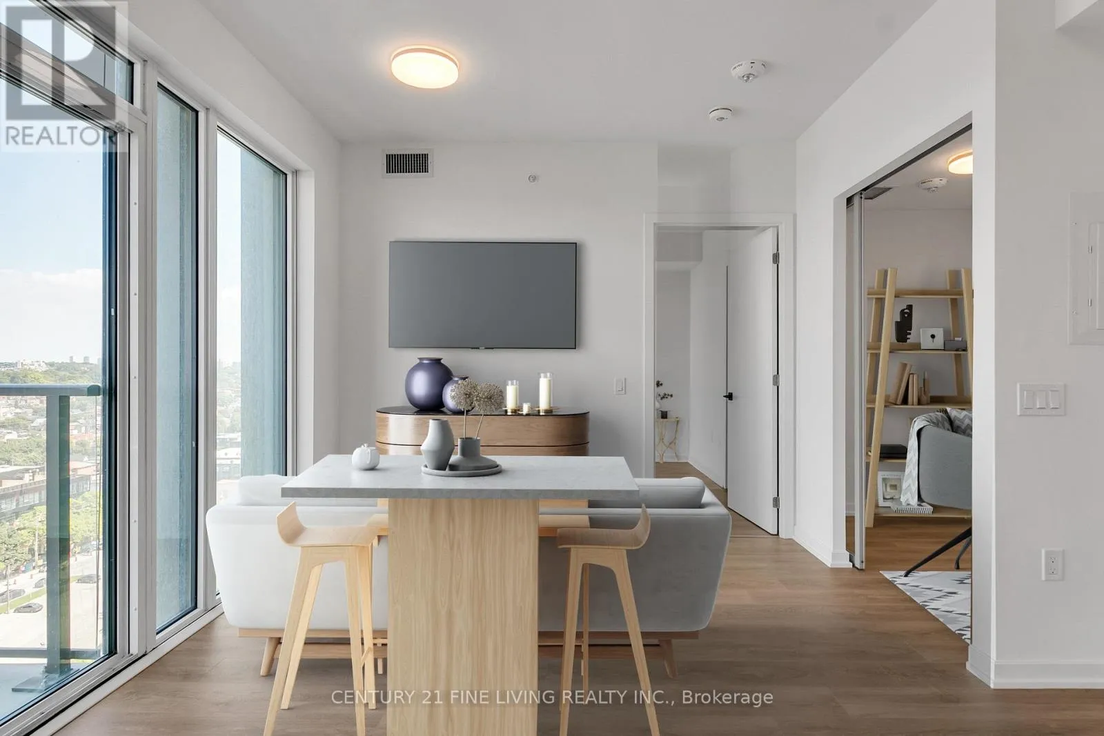 Welcome to premium urban living at Galleria I Condos. This thoughtfully designed unit features a smart, functional layout with soaring 10-foot ceilings, offering a spacious one-bedroom plus den and two full bathrooms. The suite includes a large balcony with breathtaking views. Enjoy a modern designer kitchen with paneled appliances, wide plank flooring, and a bright, open-concept living space highlighted by