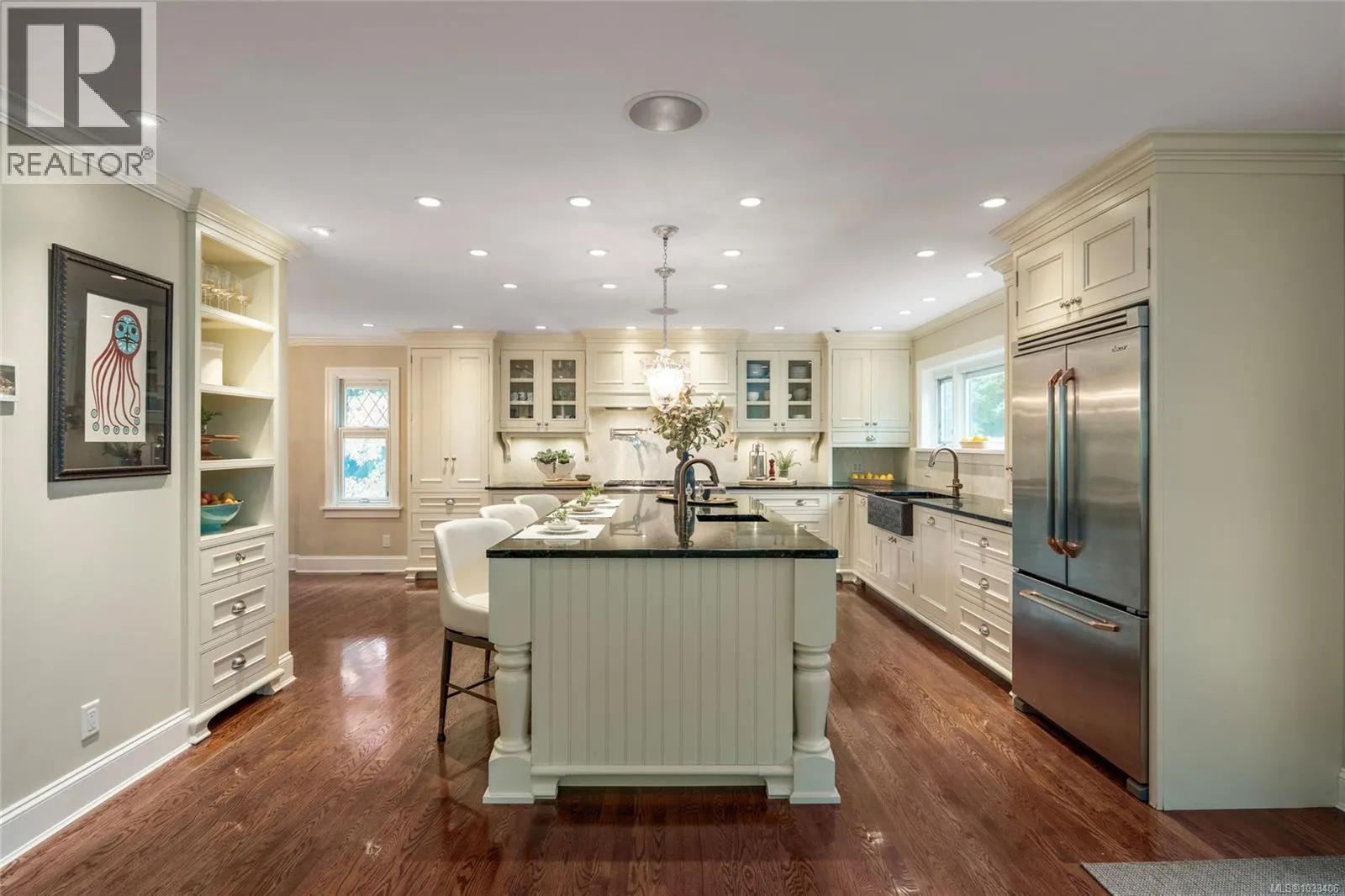 Prepare to be impressed by this exquisitely renovated 5-bedroom, 4-bath executive residence on a sprawling 17,460-square-foot lot just steps from Mt. Doug Park. The chef’s kitchen is a true showpiece, featuring high-end Dacor appliances, granite countertops, fine cabinetry, and an oversized island perfect for family and friends to gather around. French doors open to a vast, sun-drenched deck overlooking a